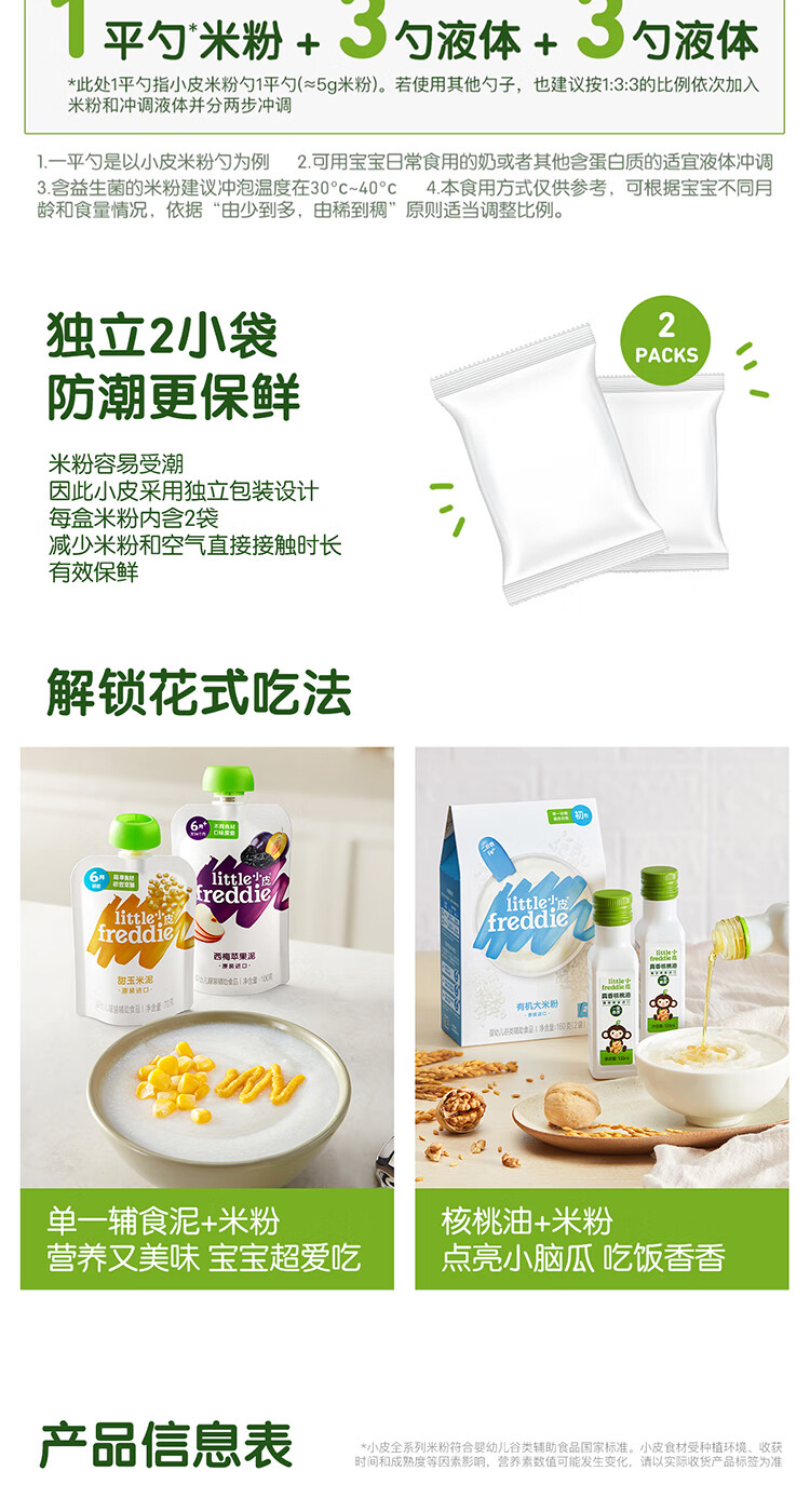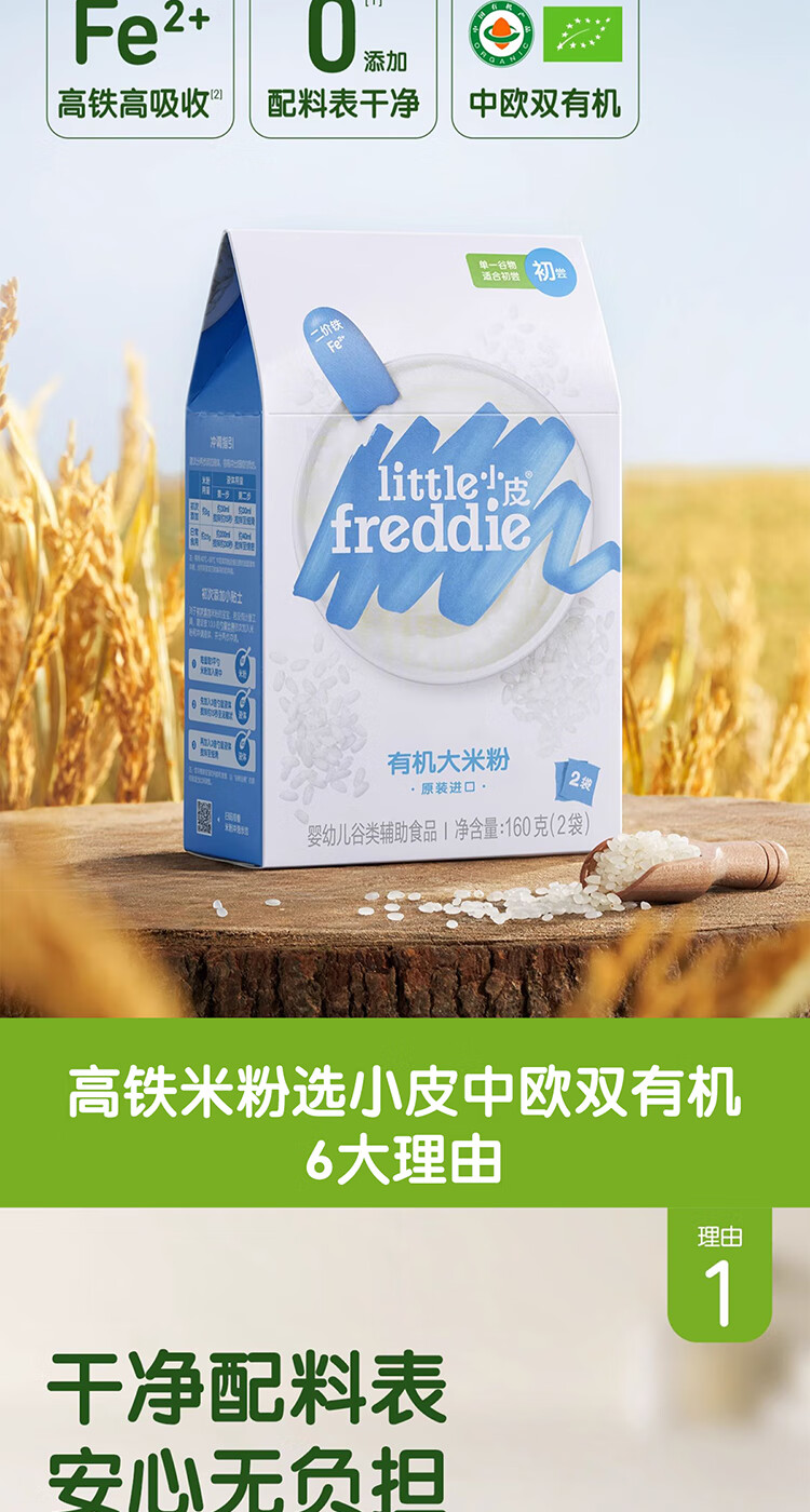 小皮(Little Freddie)【0元试喝】小皮尝鲜试用装有机高铁大米粉蓝莓米糊宝宝辅食25g 【0元试喝】原味米粉尝鲜 25g*1袋 选择口味