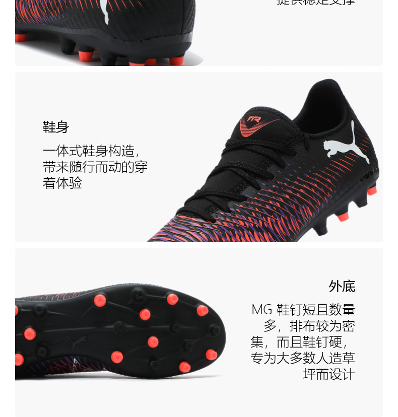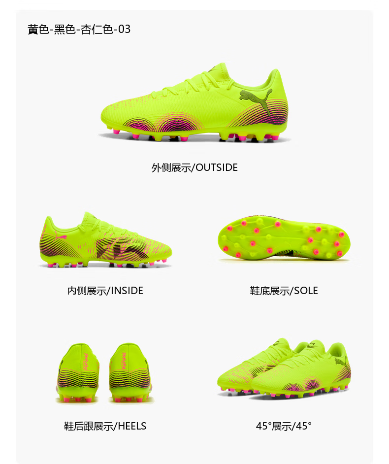 彪马(PUMA)MG短钉轻量贴合飞盘足球鞋男女人造草坪钉鞋FUTURE108376 黄色-黑色-杏仁色-03 42