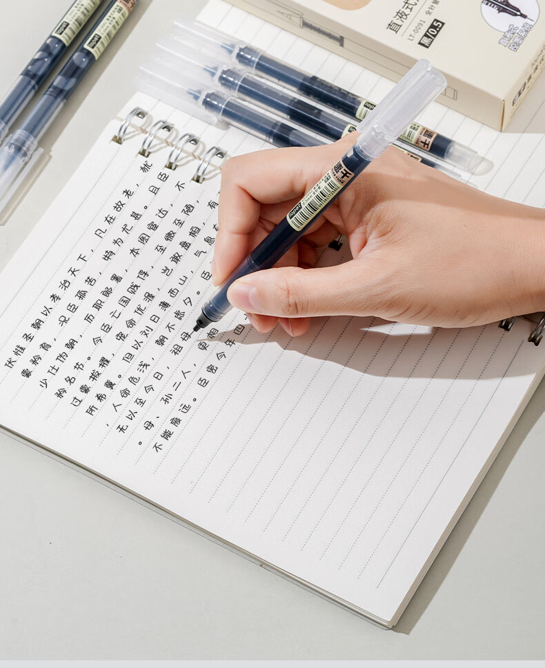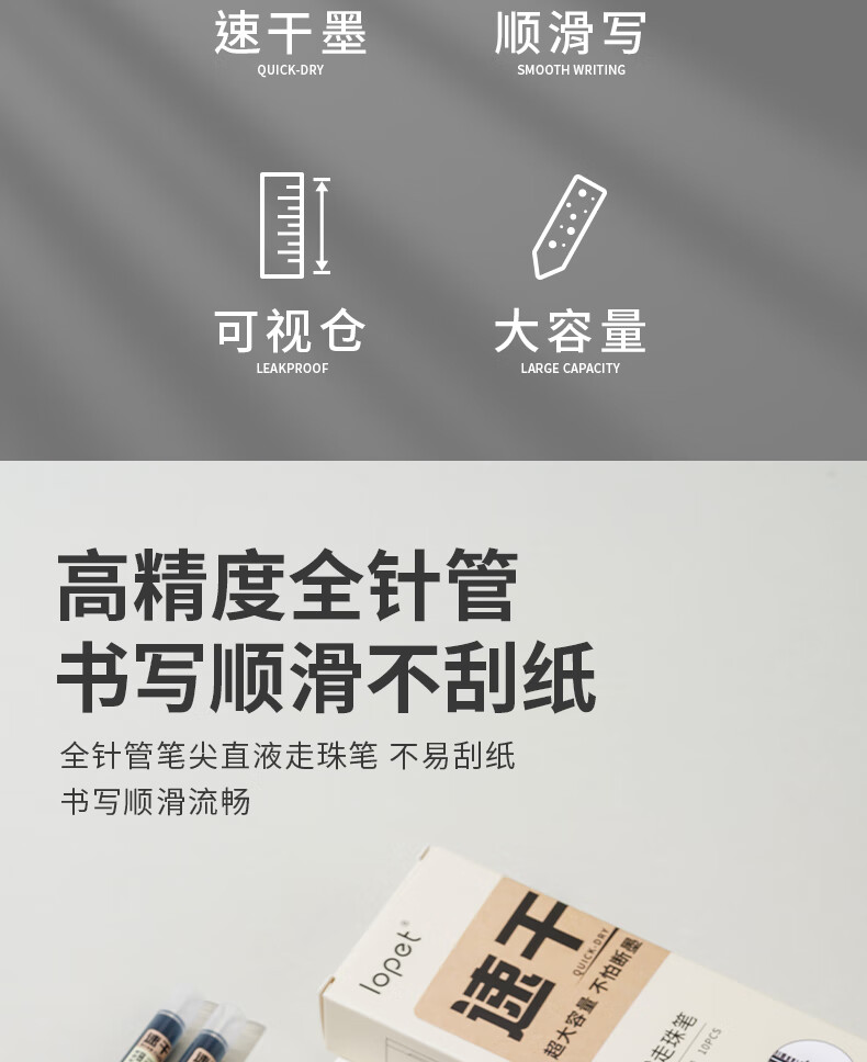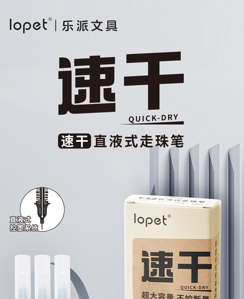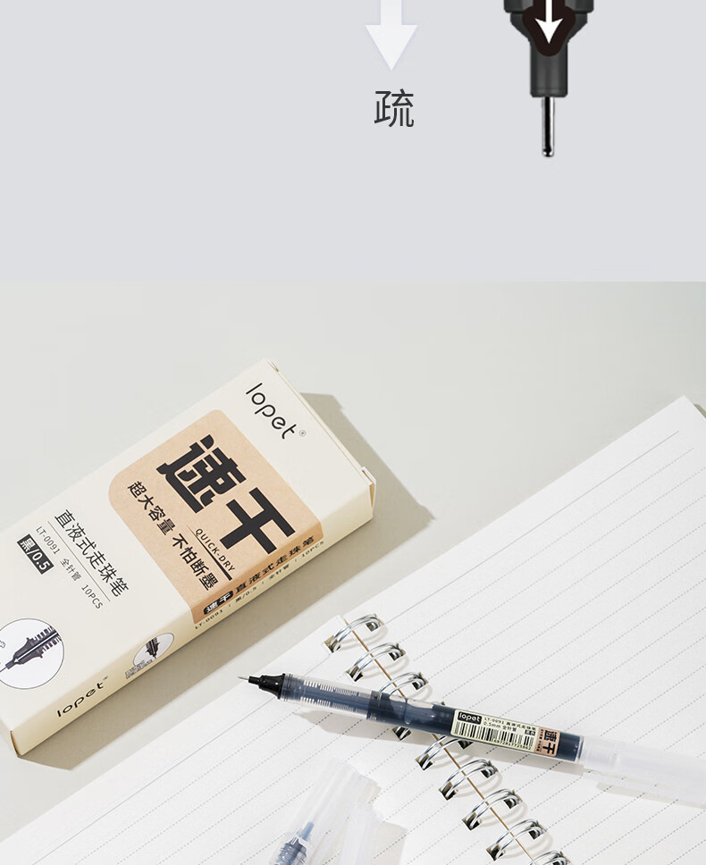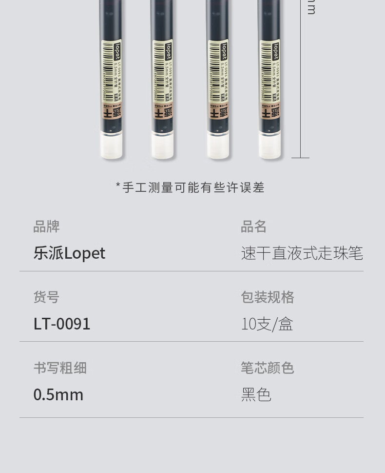 LOPET黑色中性笔直液式走珠笔0.5mm全针管签字笔商务会议办公学生刷题考试水笔碳素笔圆珠笔10支LT-0091