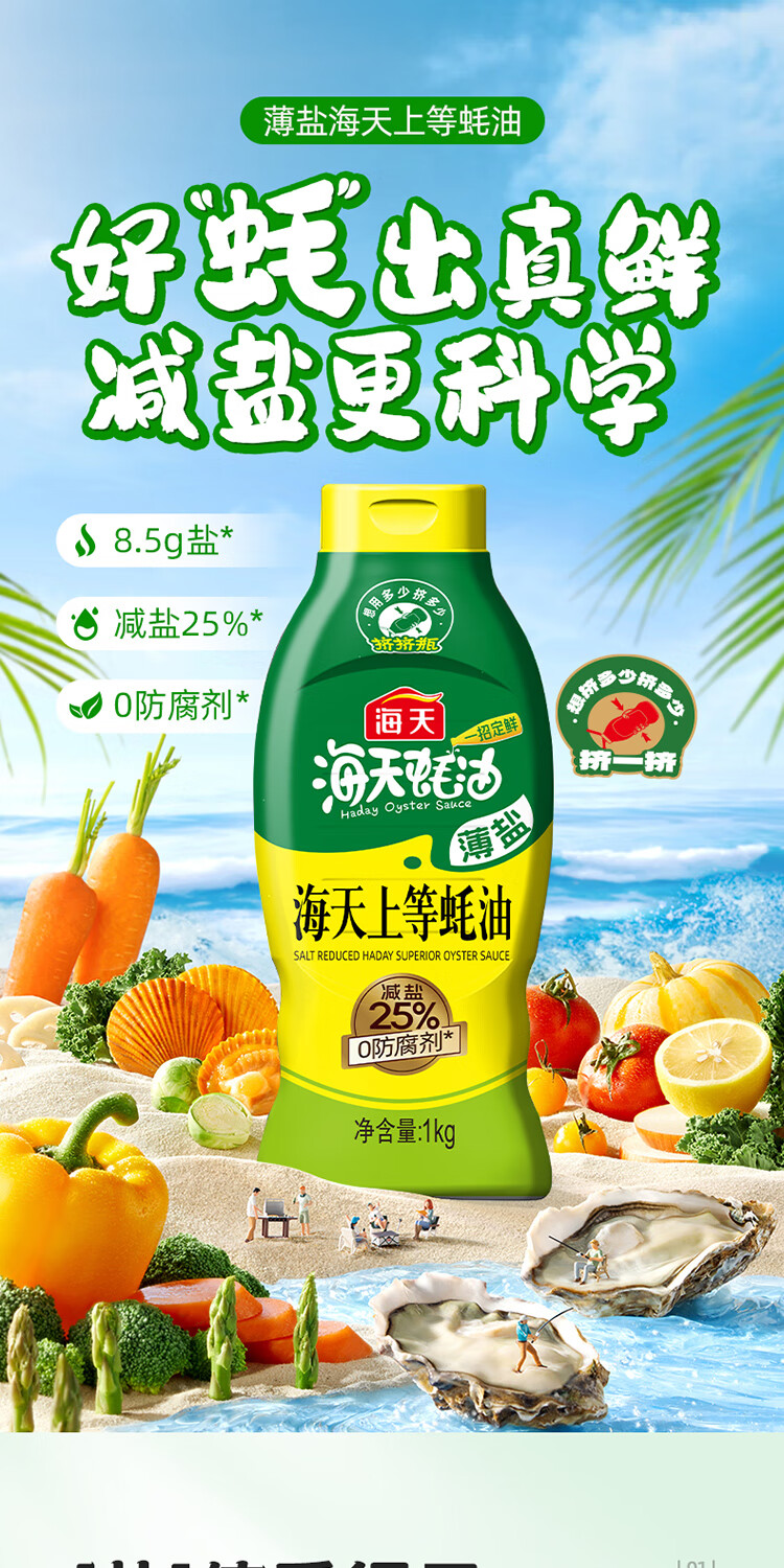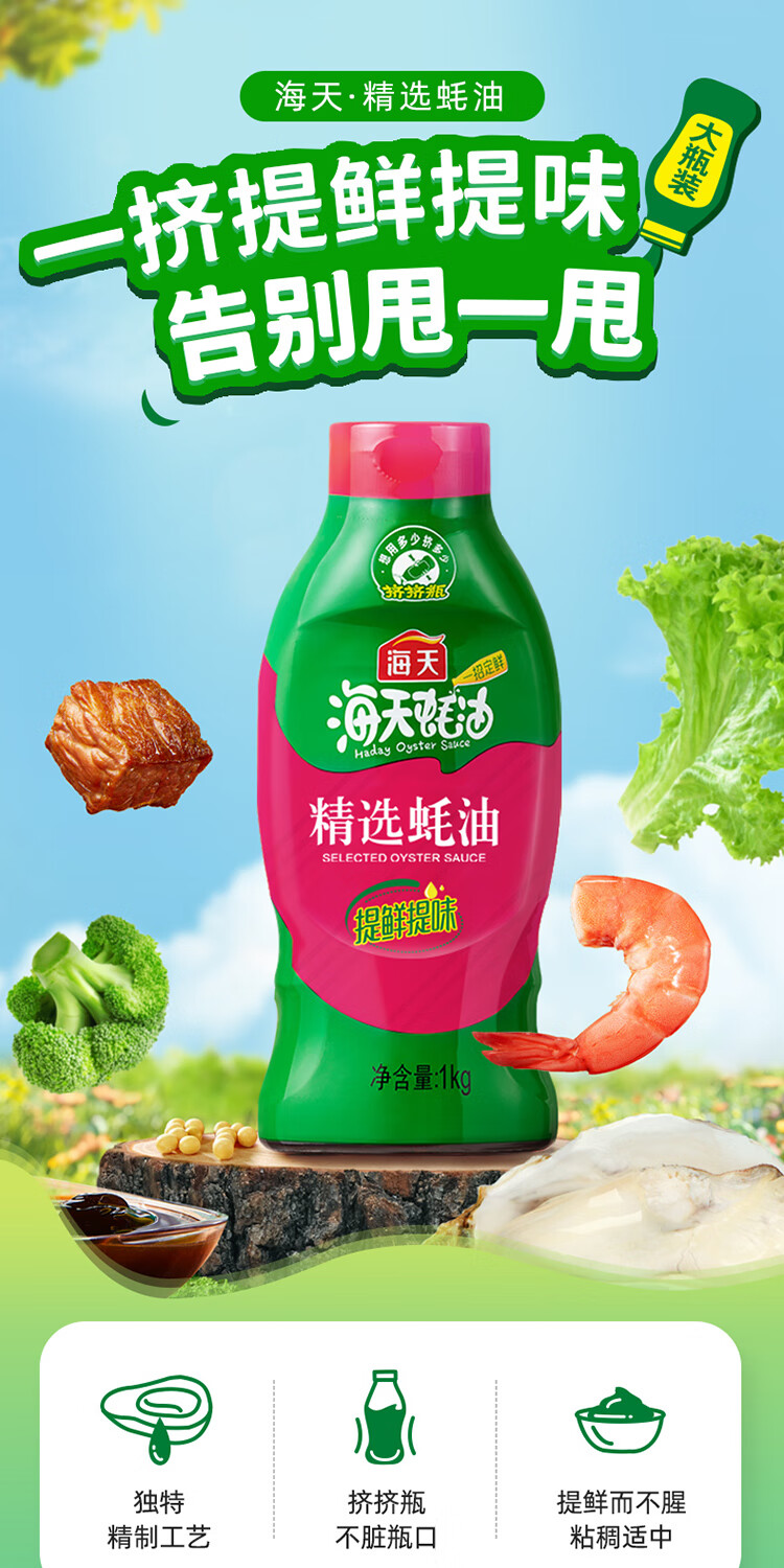 海天蚝油 上等蚝油520g 挤挤装烧烤火锅蘸料勾芡拌面腌肉炒菜调味品 【薄盐】海天上等蚝油1kg*2