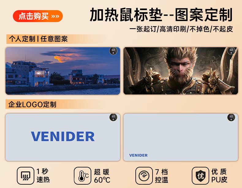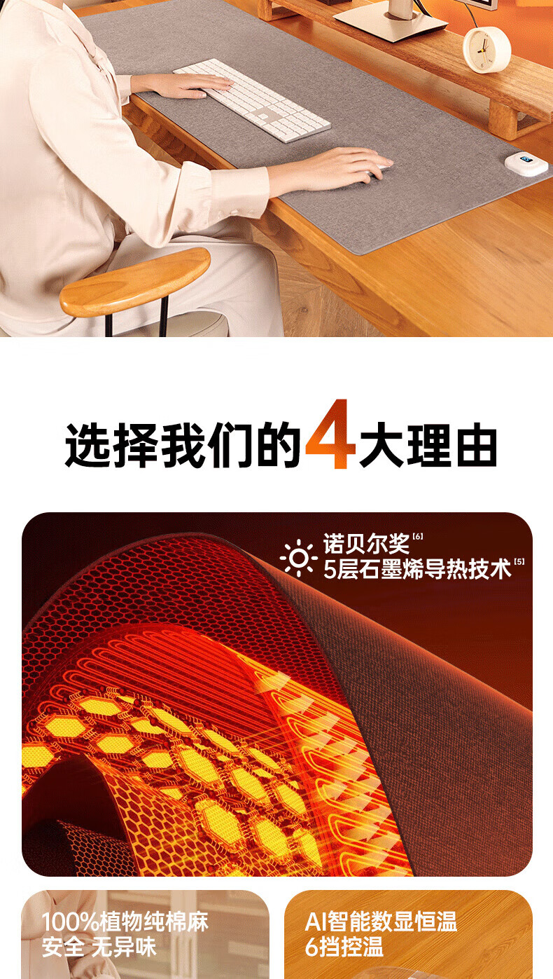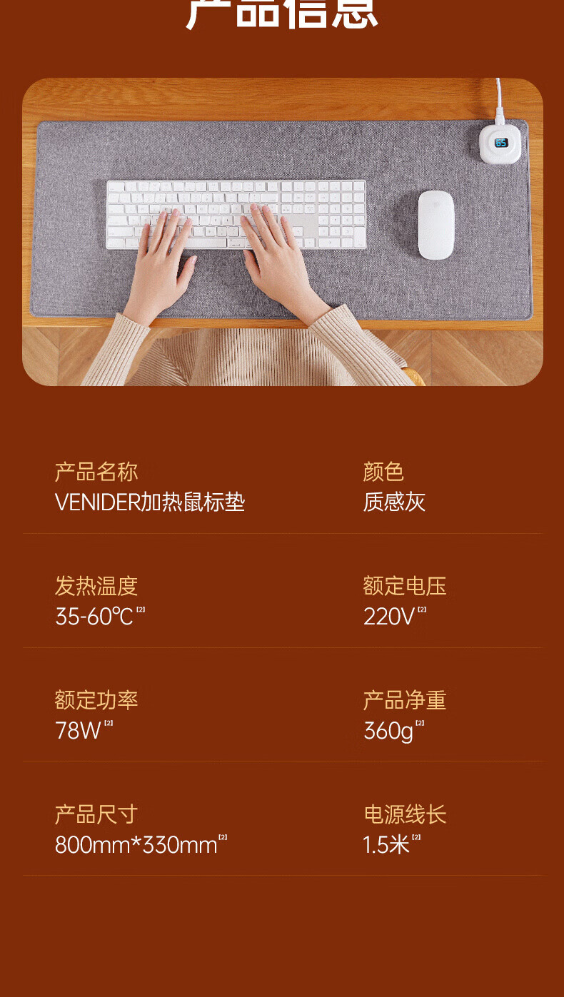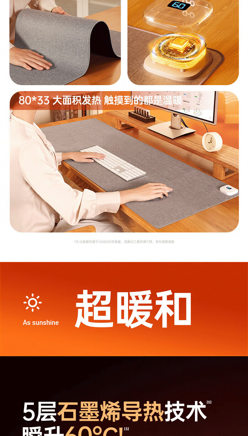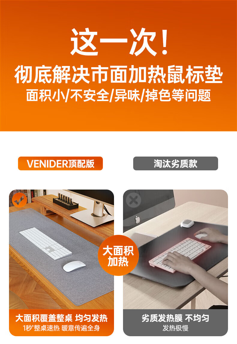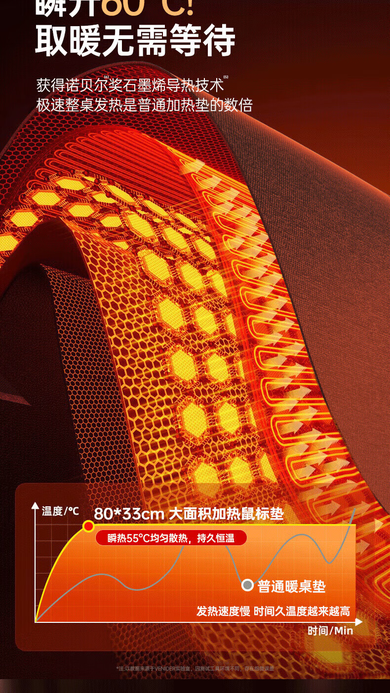 VENIDER60℃暖全身】加热鼠标垫加热桌垫暖桌垫超大加长发热桌垫学生写字台办公室电脑桌面电热加热垫