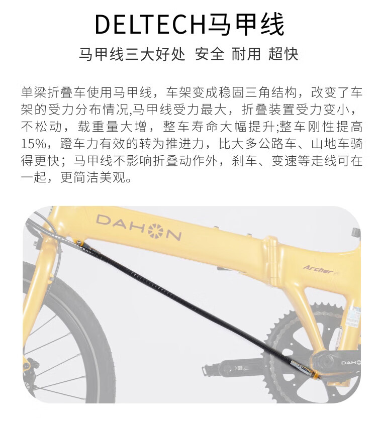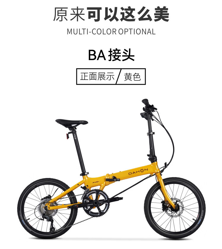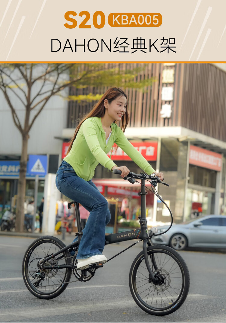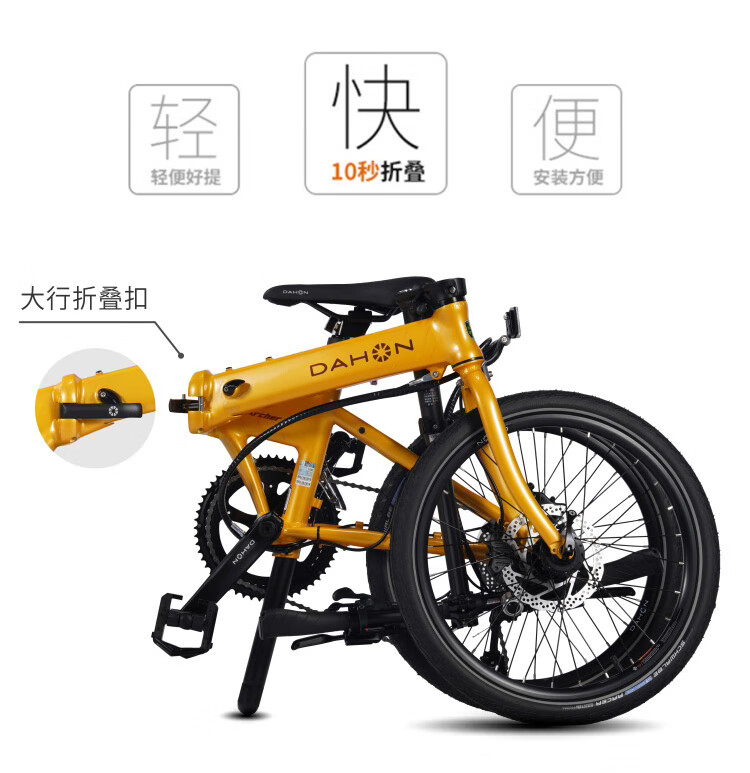 大行(DAHON)S20折叠自行车20英寸20速成人铝合金碟刹运动竞技自行车KBA005 黄色【BA接头+油碟刹】