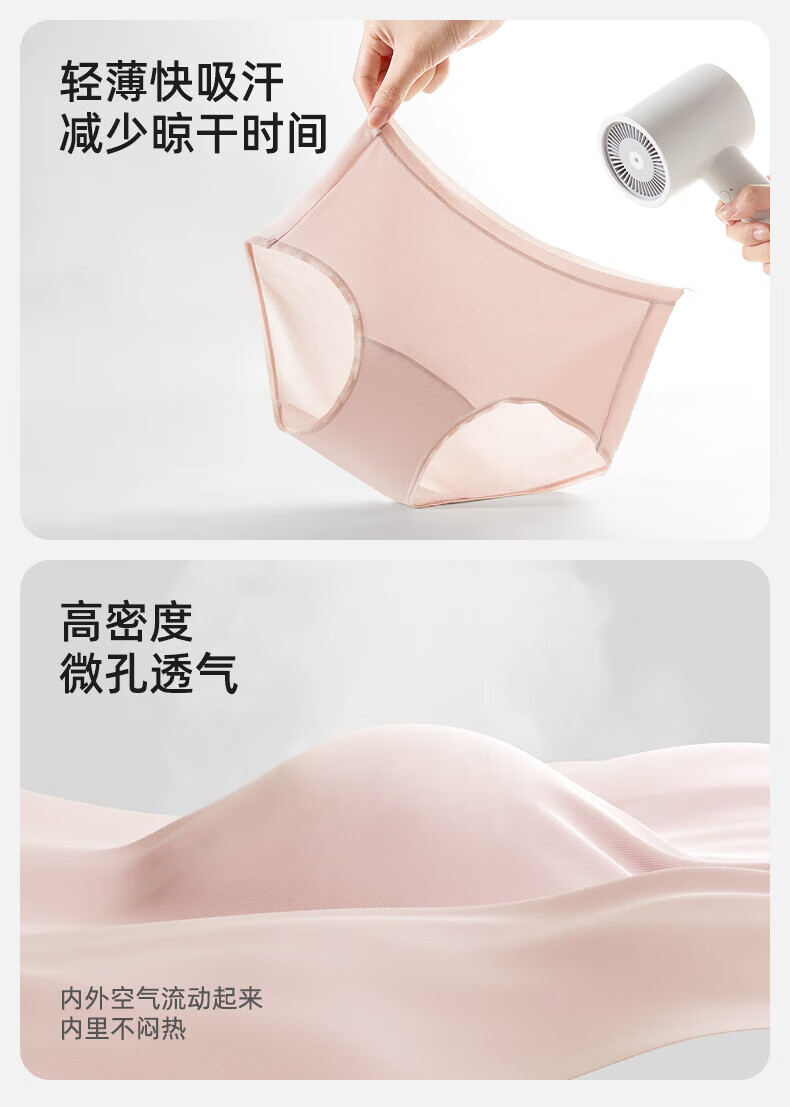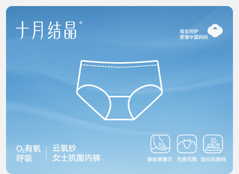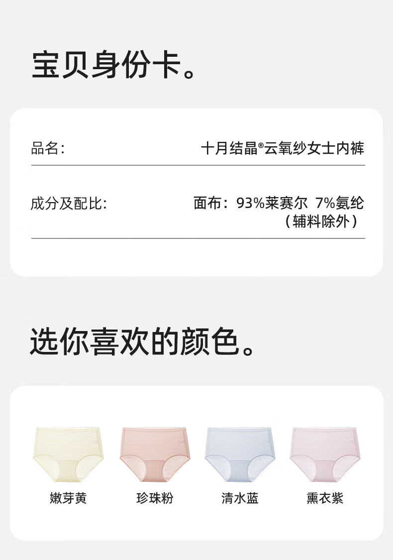 十月结晶女士内裤纯棉加长底档10A抗菌云感柔透气无痕不夹臀 云柔透气莱赛尔 4条装 XXL (建议140-160斤)