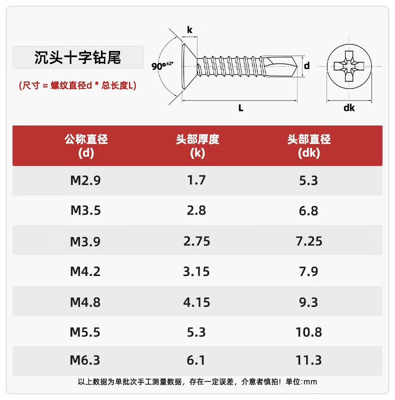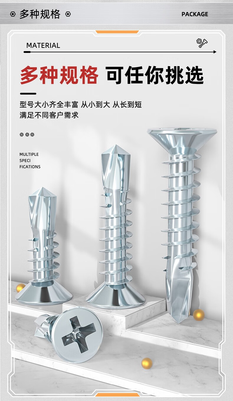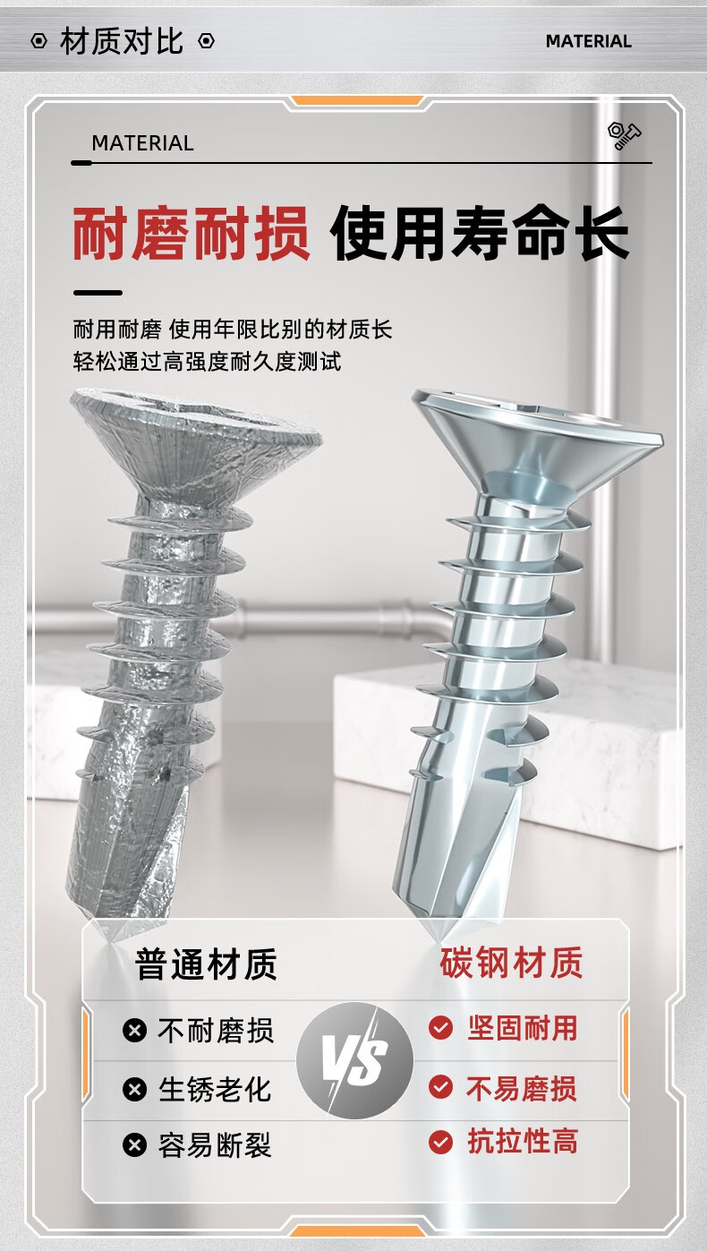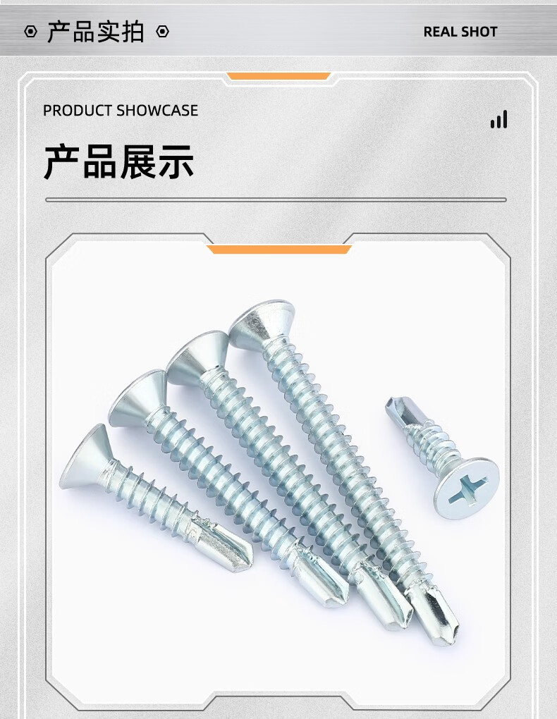 天卓五金国标加硬镀锌沉头十字钻尾螺丝螺钉自攻自钻平头燕尾丝彩钢瓦专用 M4.2*13(300个) 碳钢
