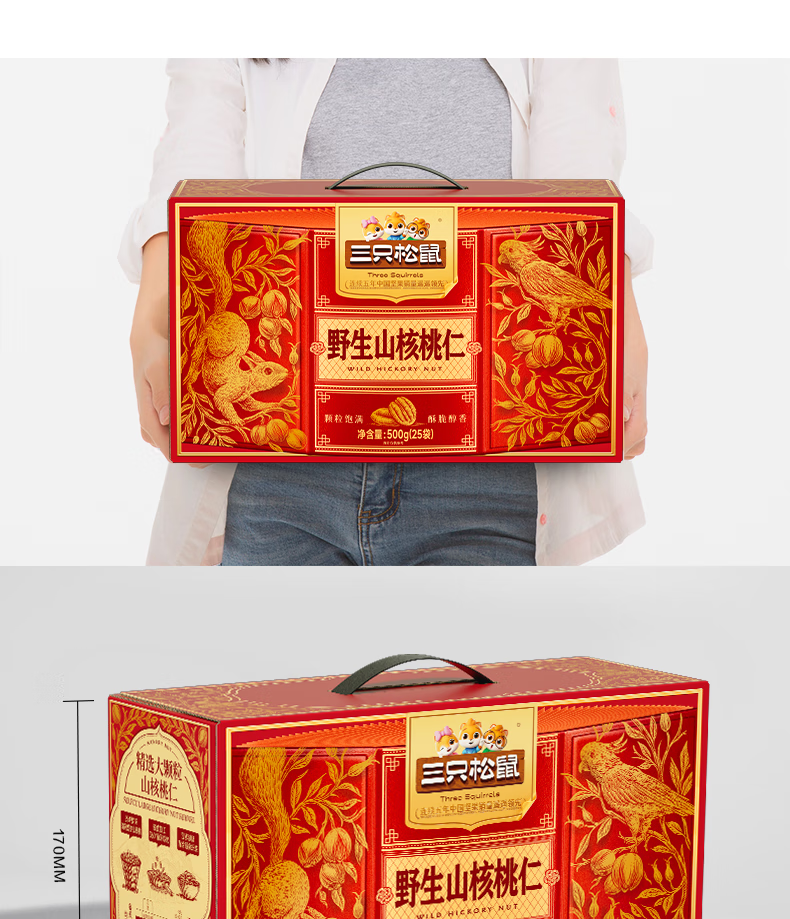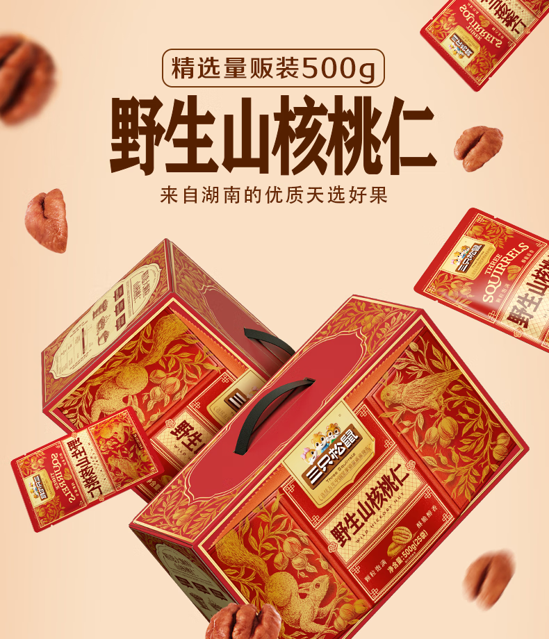 三只松鼠野生山核桃仁500g/盒 每日坚果礼盒炒货零食品 团购送礼