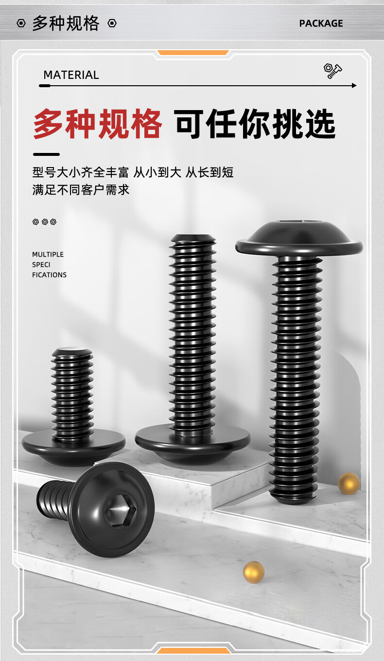 天卓五金黑色304不锈钢圆头内六角带垫螺丝螺钉机螺钉M2M2.5M3M4M5M6M8M10 黑304-M2*3【300个】