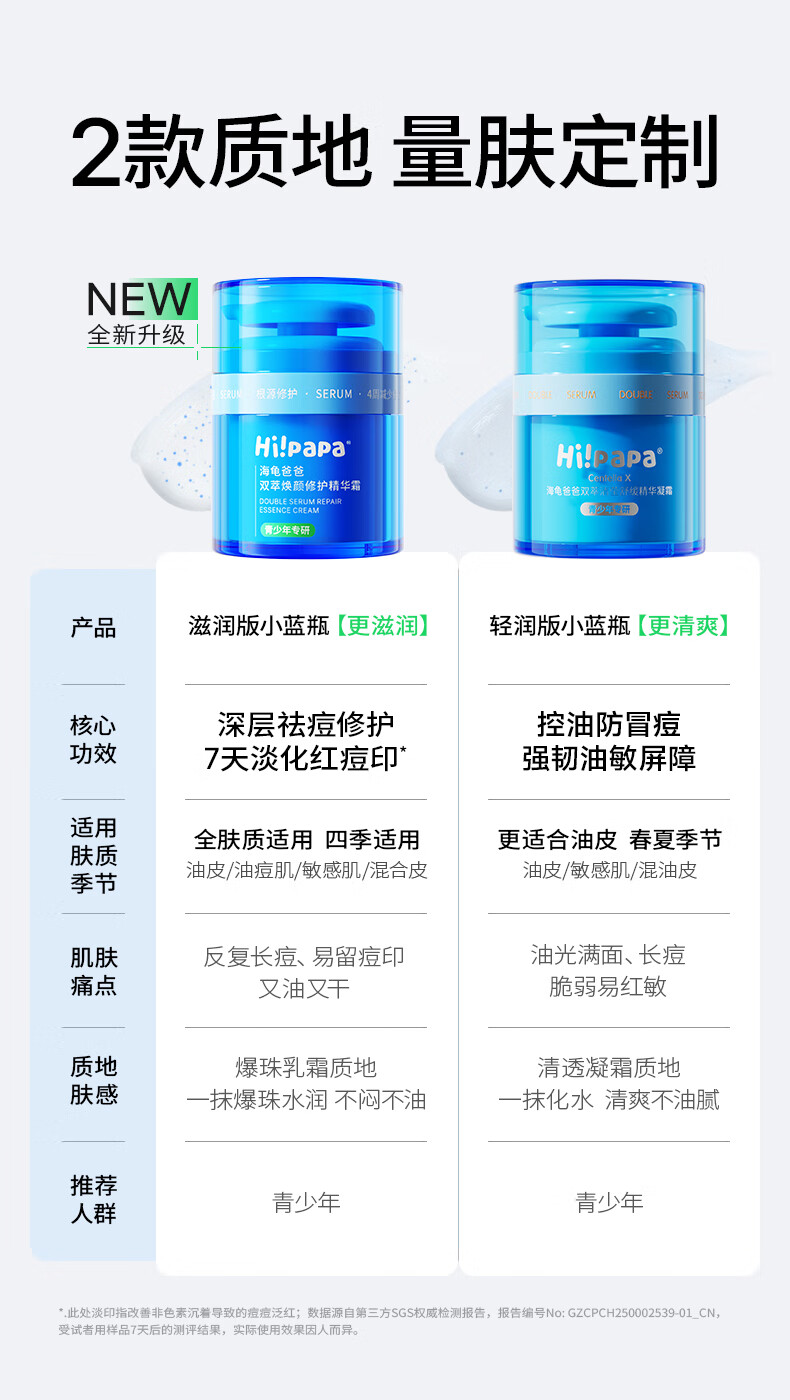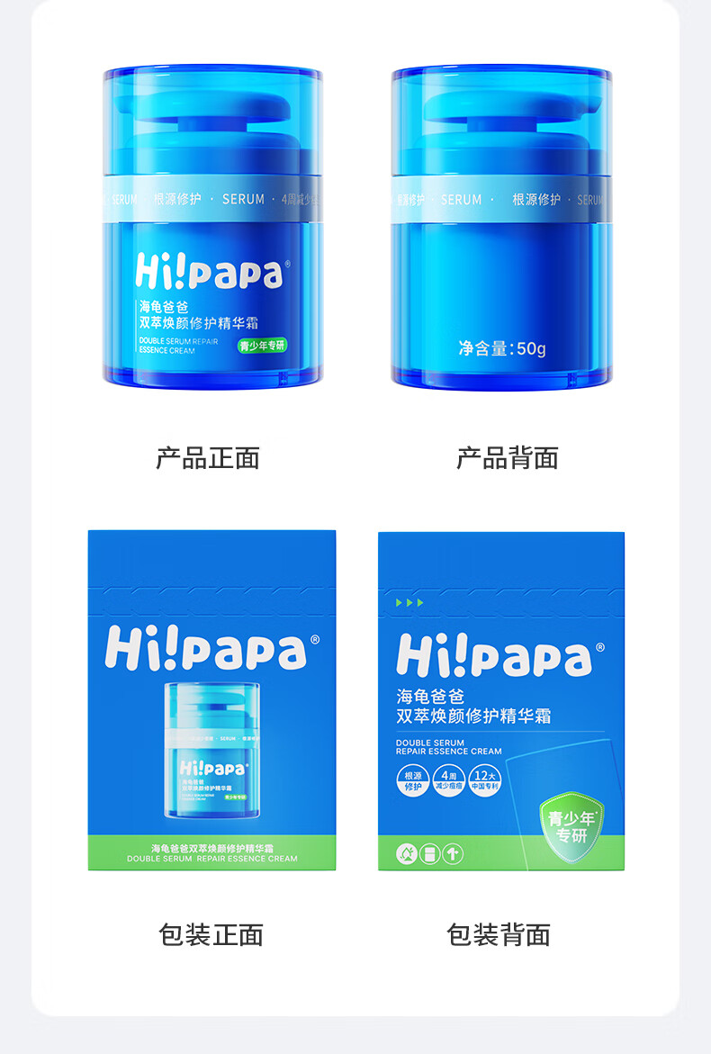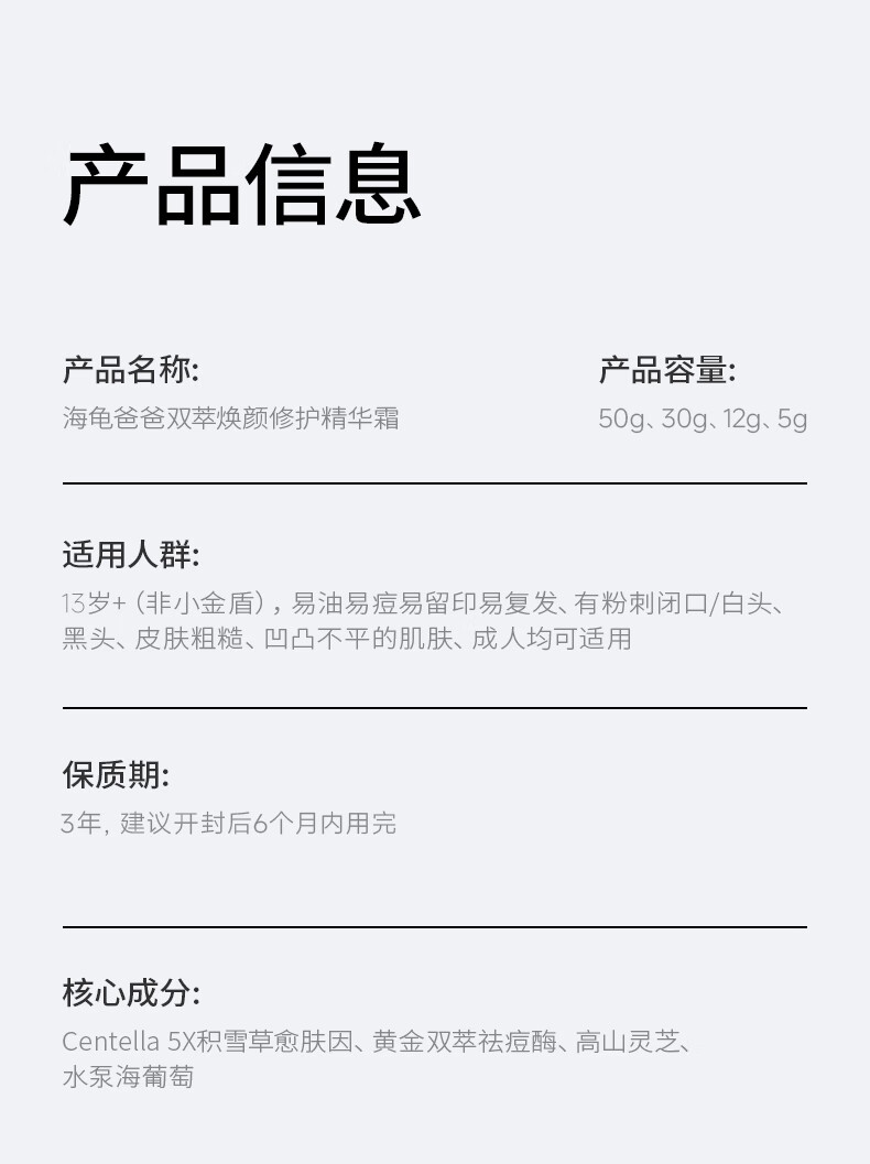 海龟爸爸海龟爸爸祛痘精华双萃焕颜清莹舒缓精华凝霜小蓝瓶三合一 50g/瓶 50g*2瓶