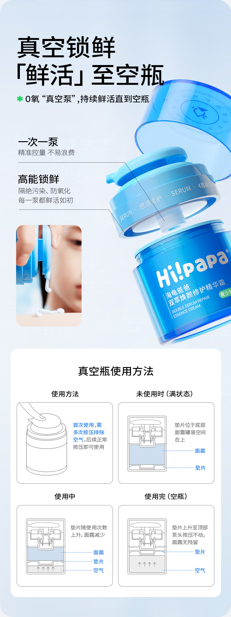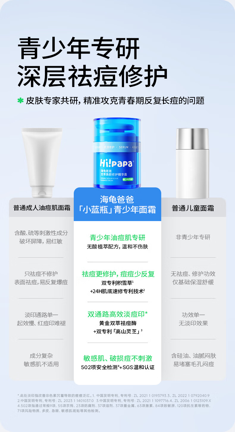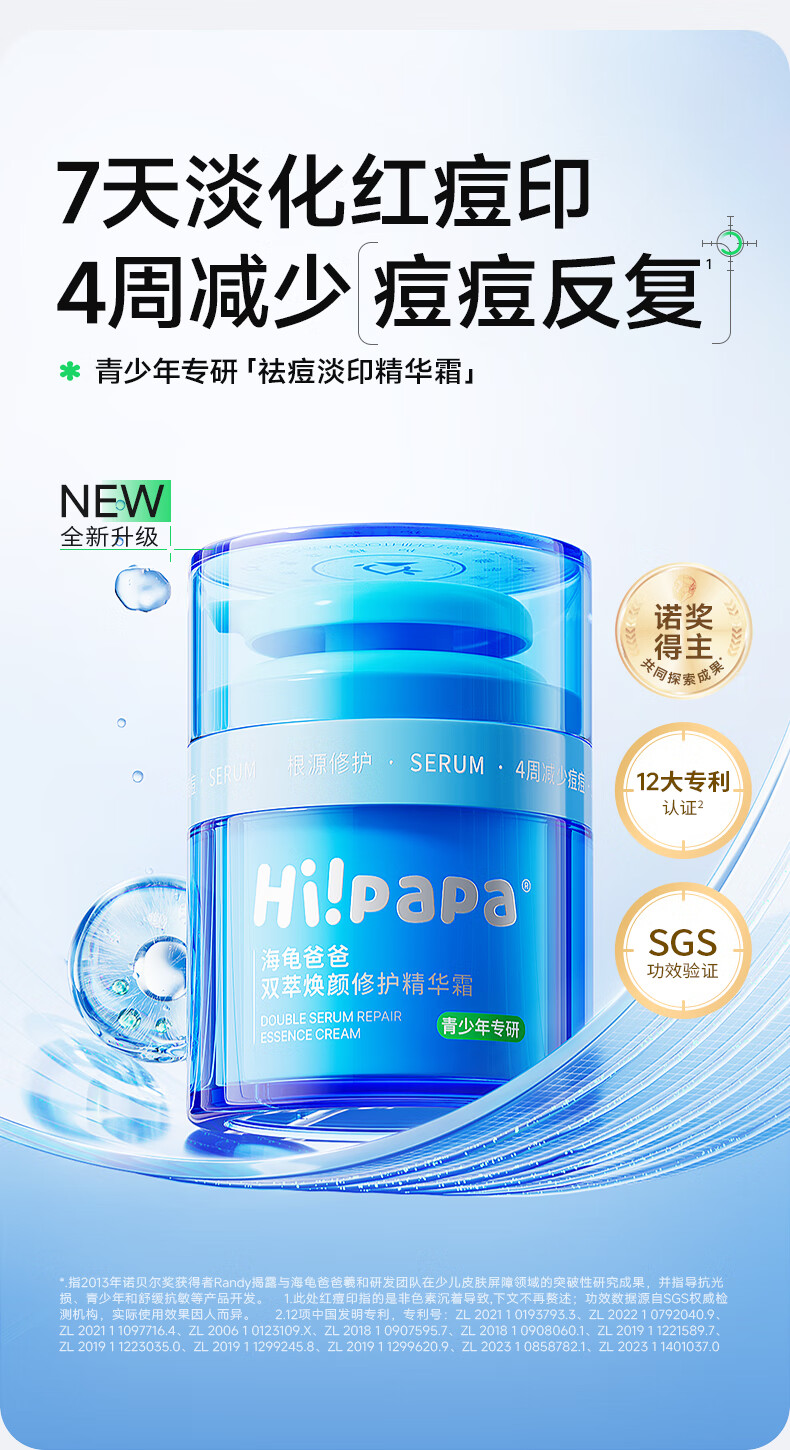 海龟爸爸海龟爸爸祛痘精华双萃焕颜清莹舒缓精华凝霜小蓝瓶三合一 50g/瓶 50g*2瓶
