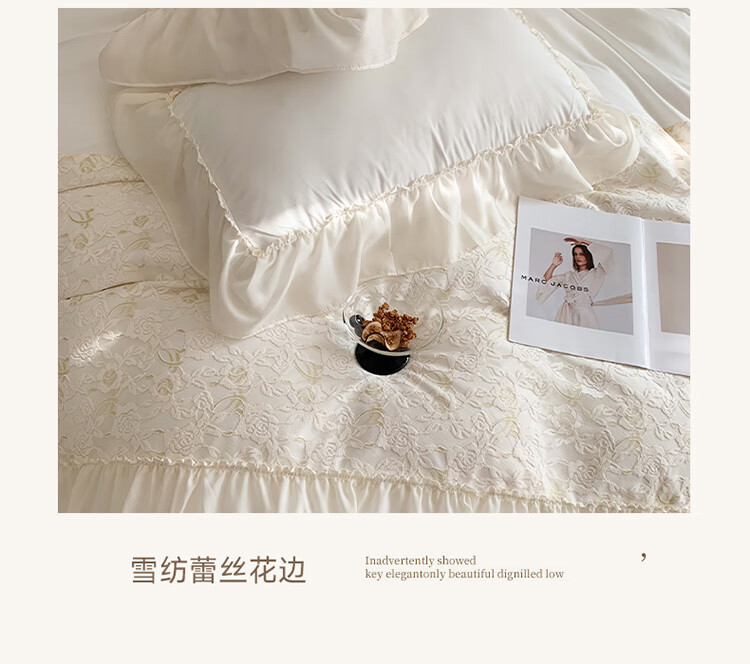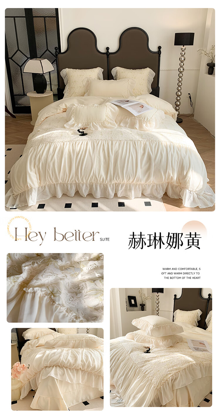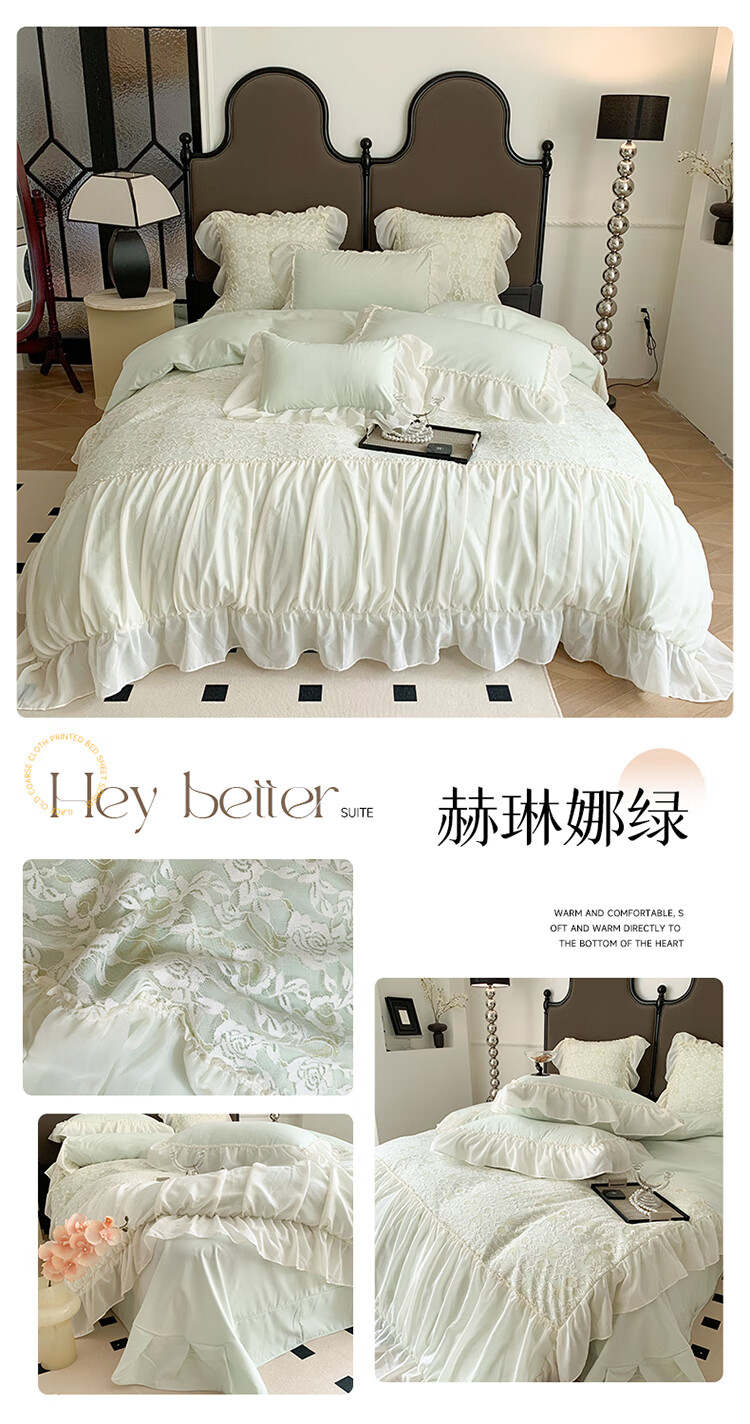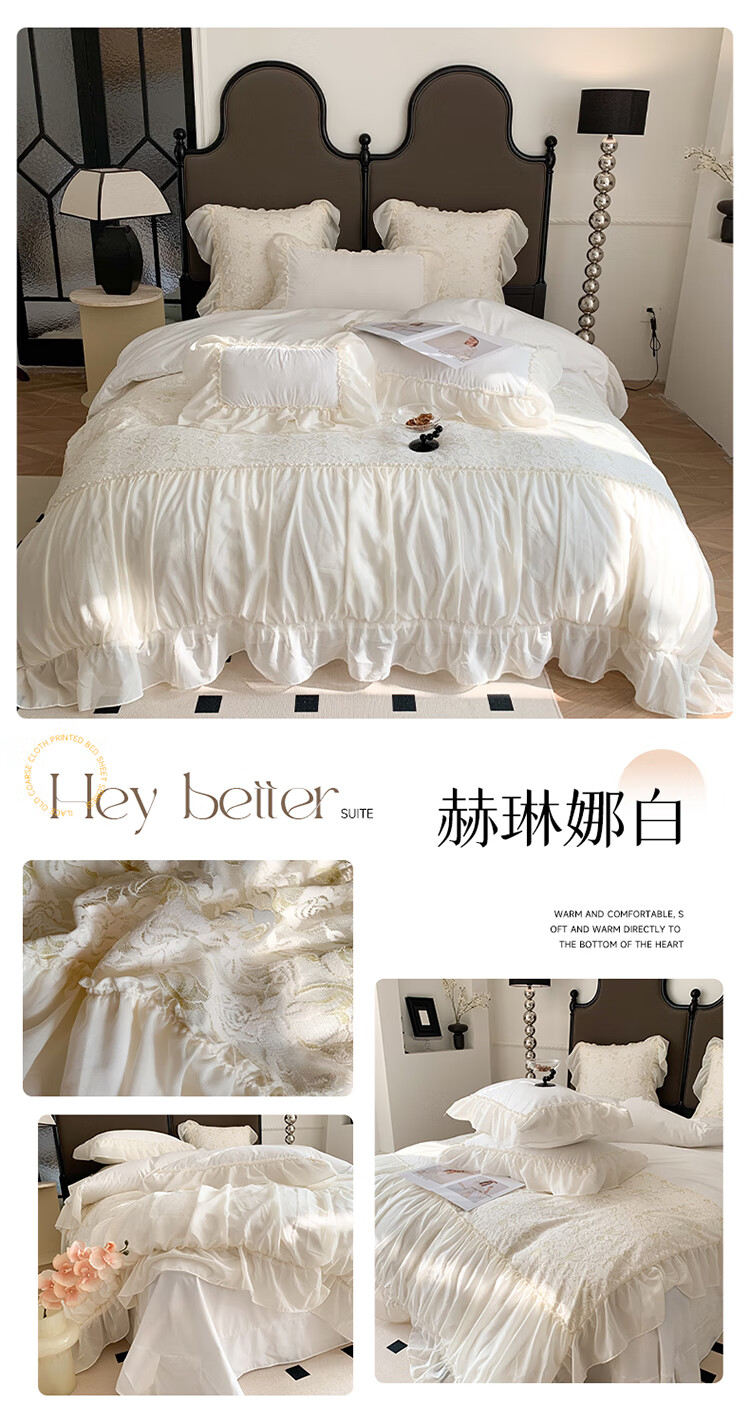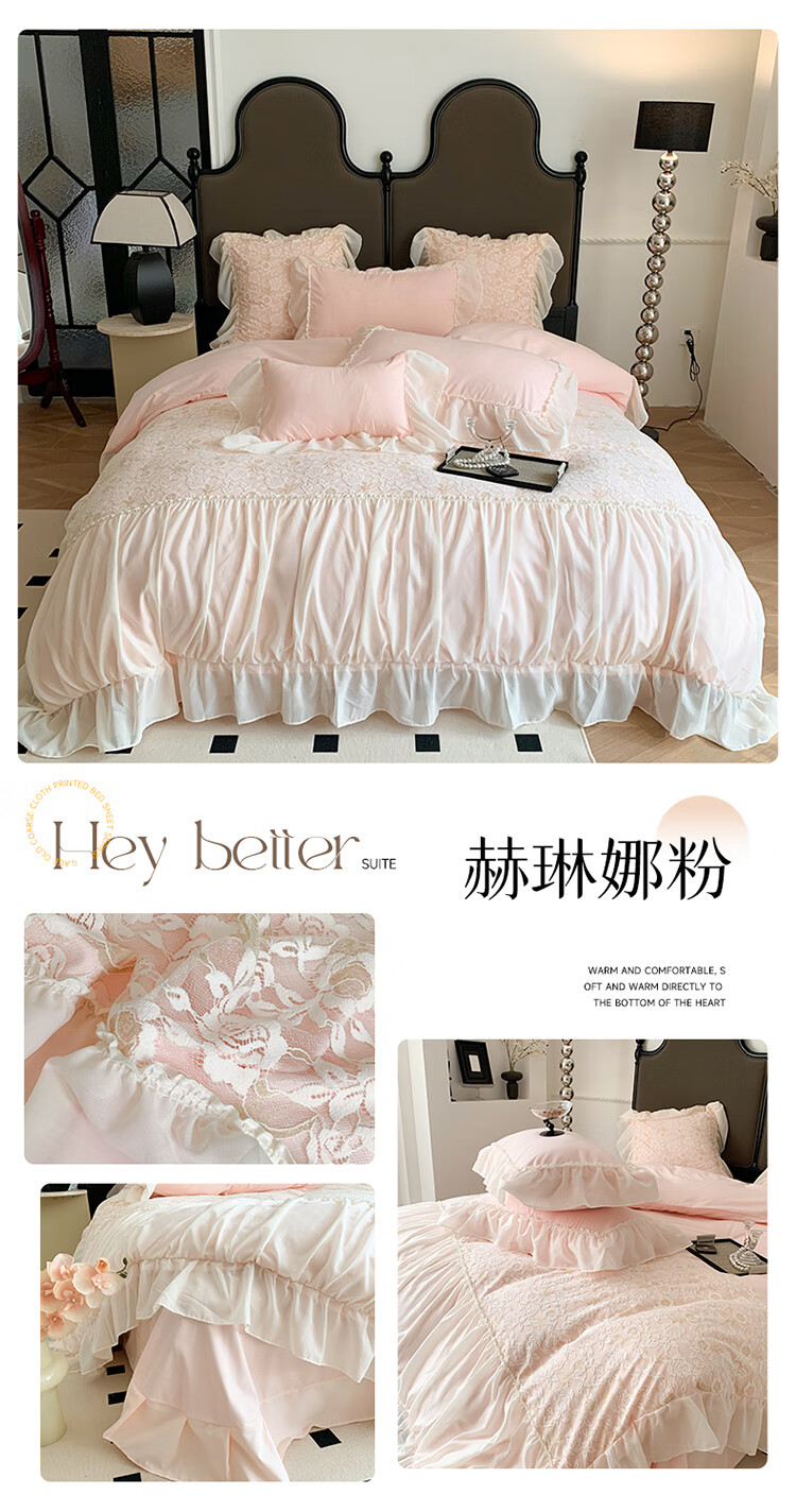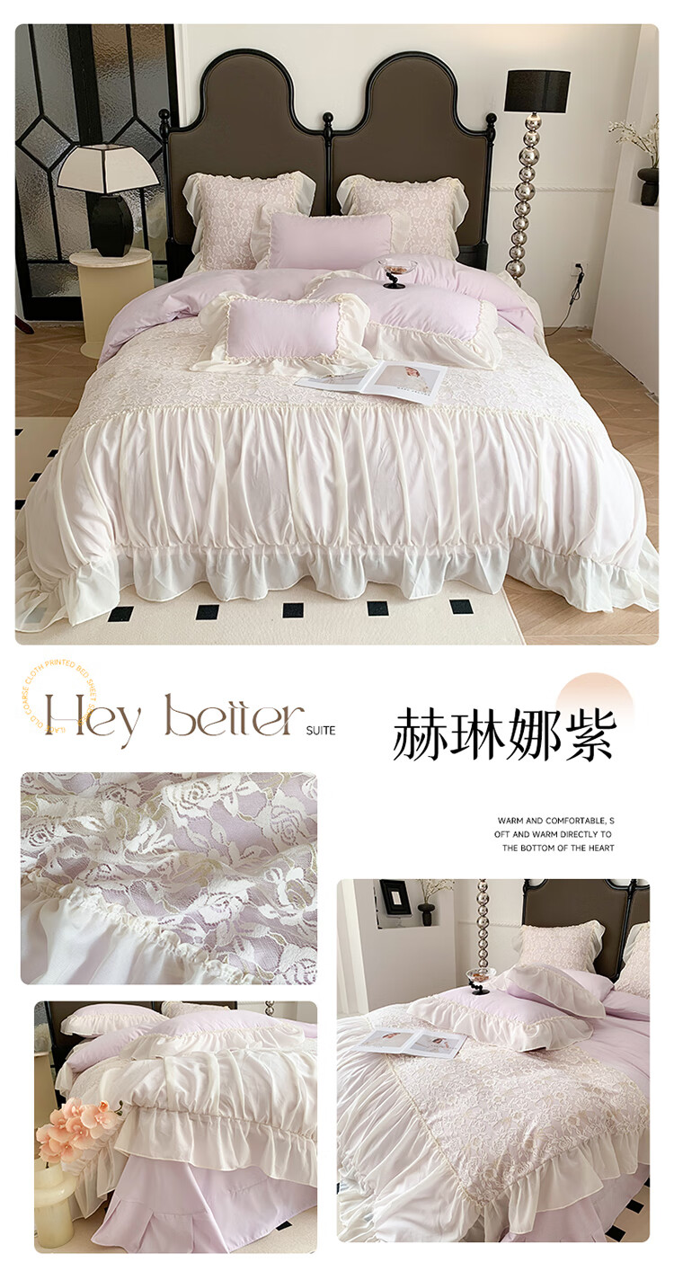 水星系列家纺轻奢100支高端镂空少女床裙款四件套公主风蕾丝花边亲肤被套床单 赫琳娜紫-蕾丝花边不掉色 2.0m床单四件套(被套2.2*2.4)