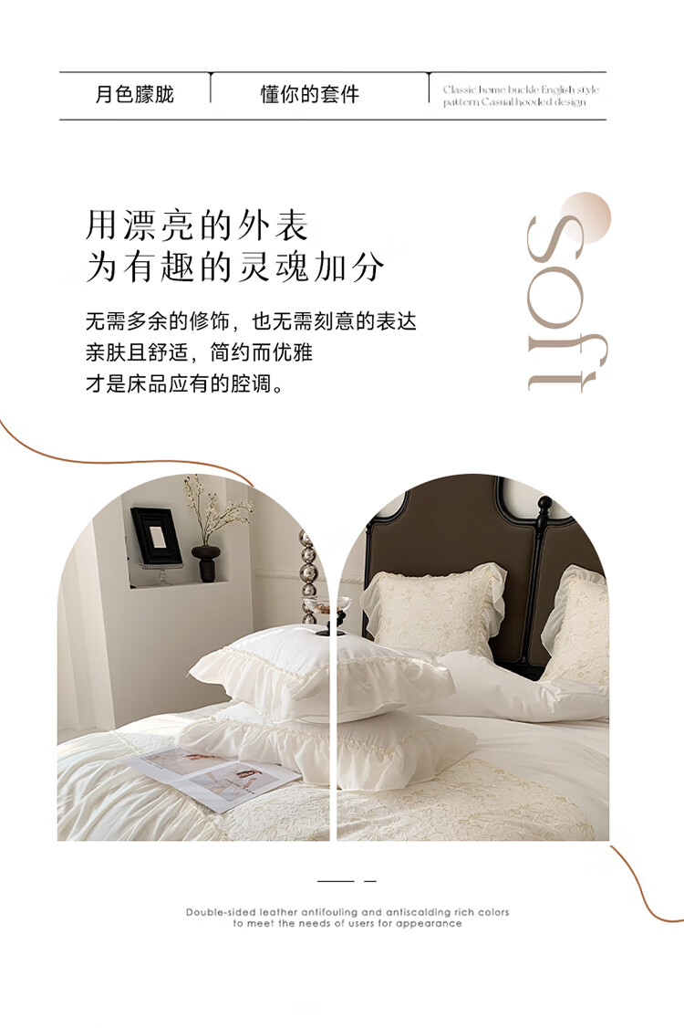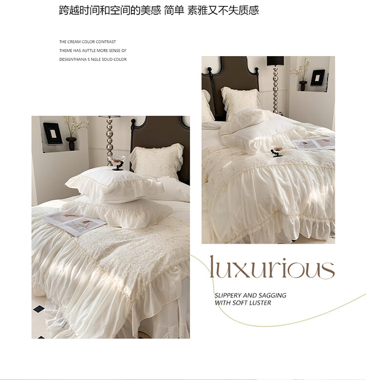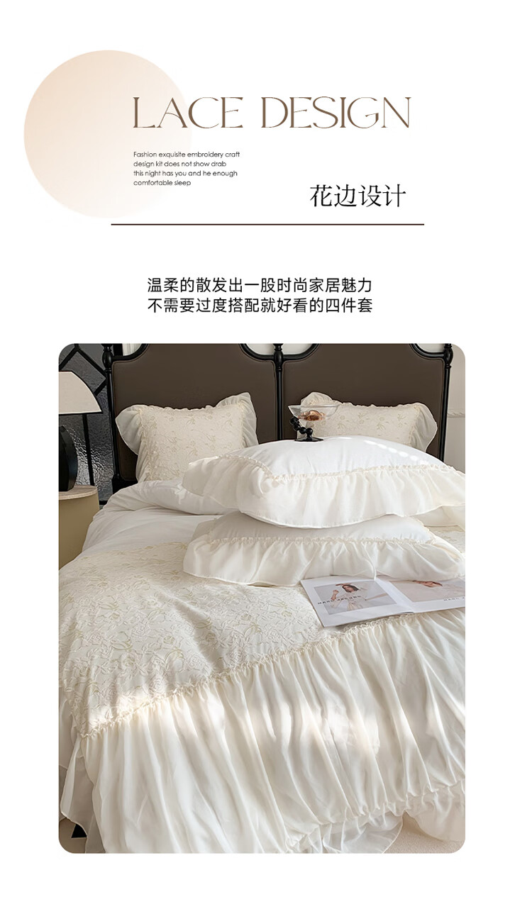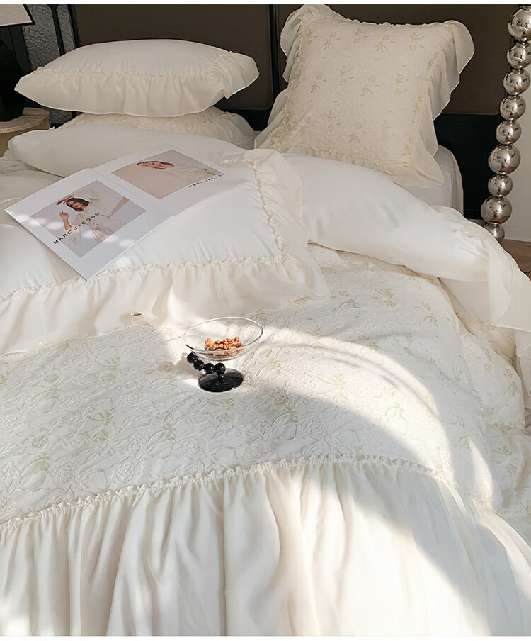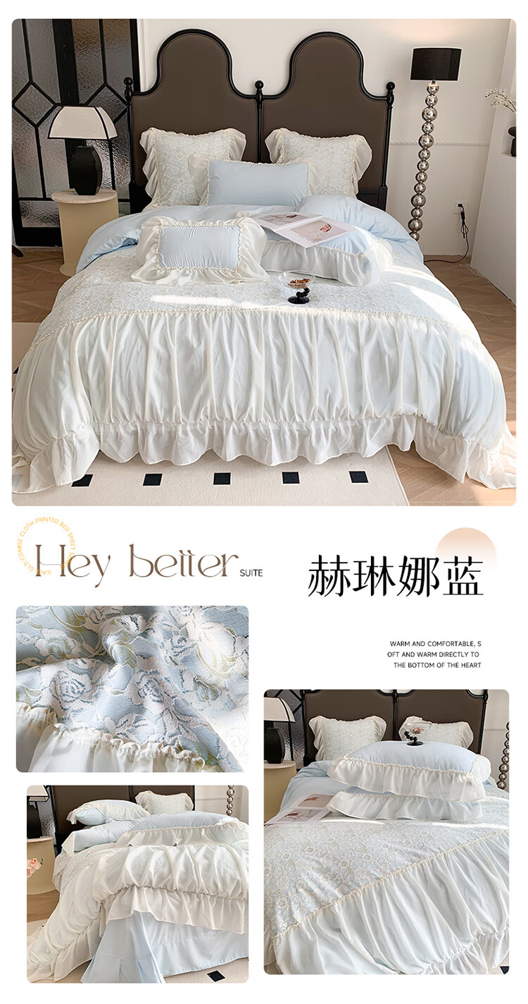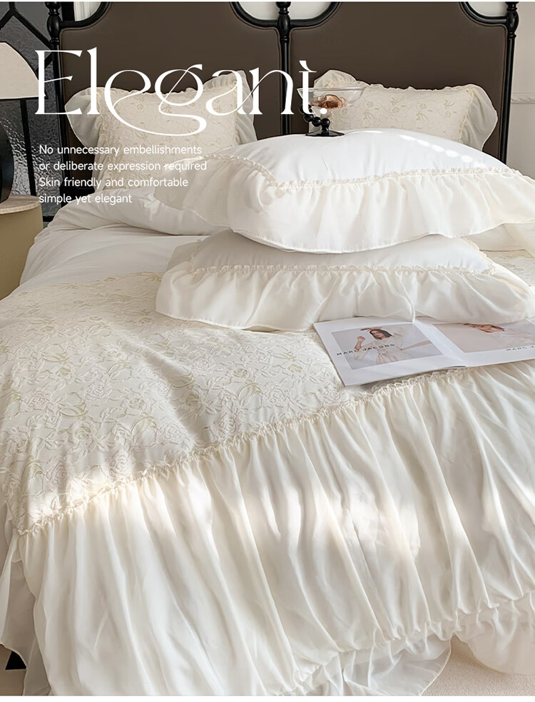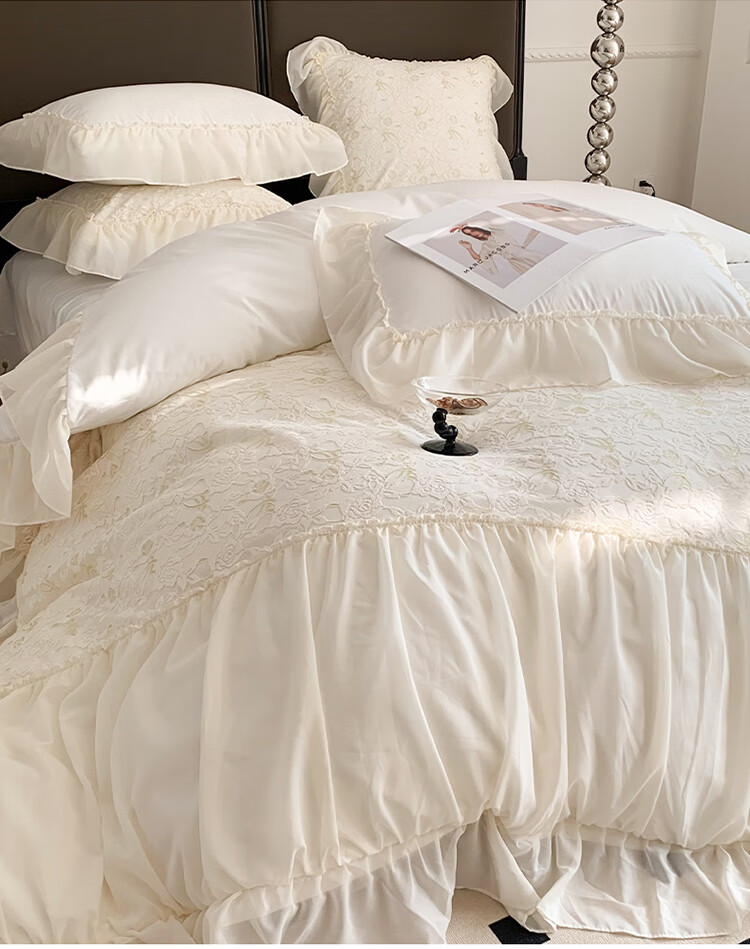 RIK SMITS法国进口纯棉四件套法式公主风被罩牛奶绒被套床裙家用轻奢高级感 丝绒晚夜 1.5m 床裙款 (被套200*230cm)