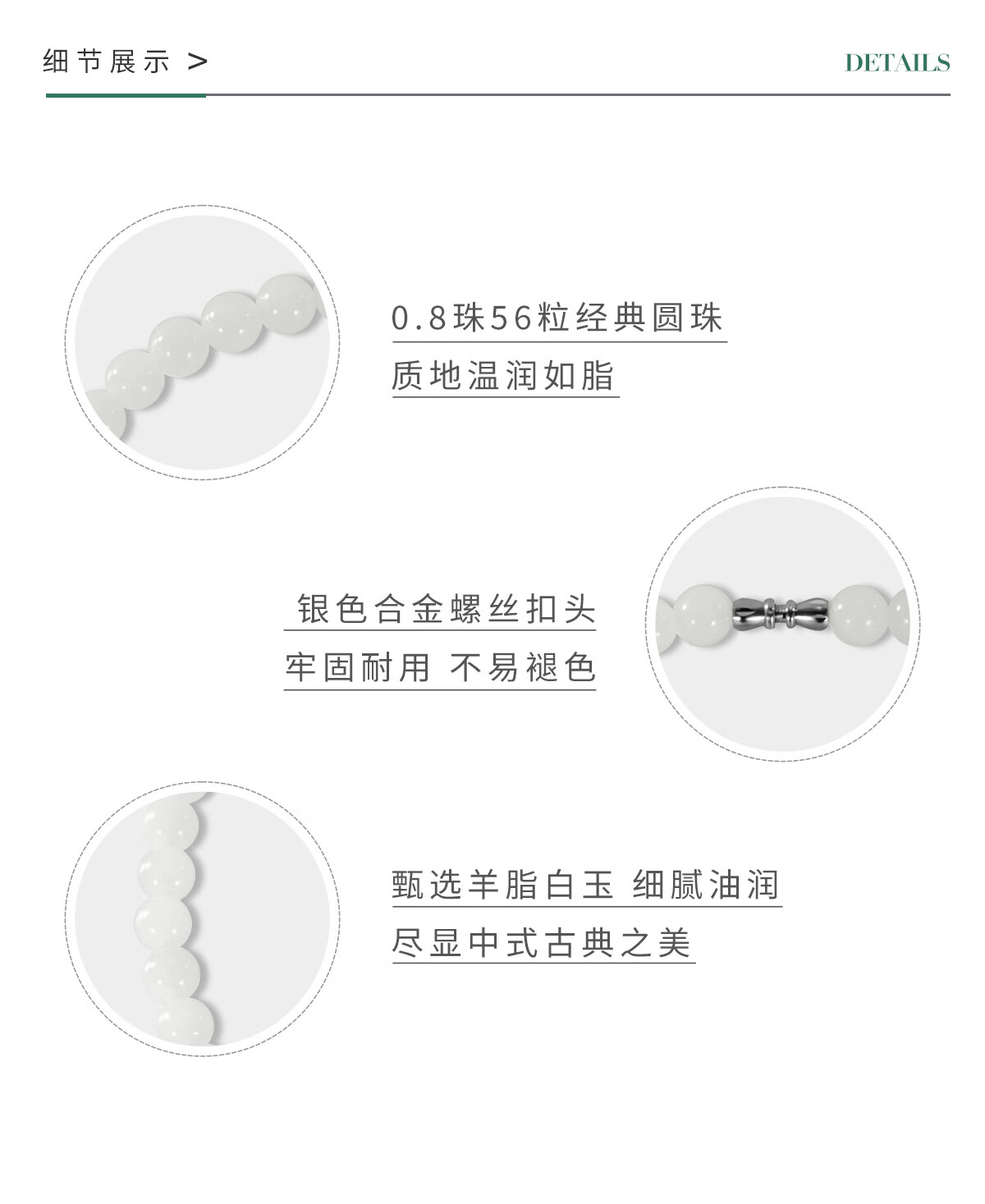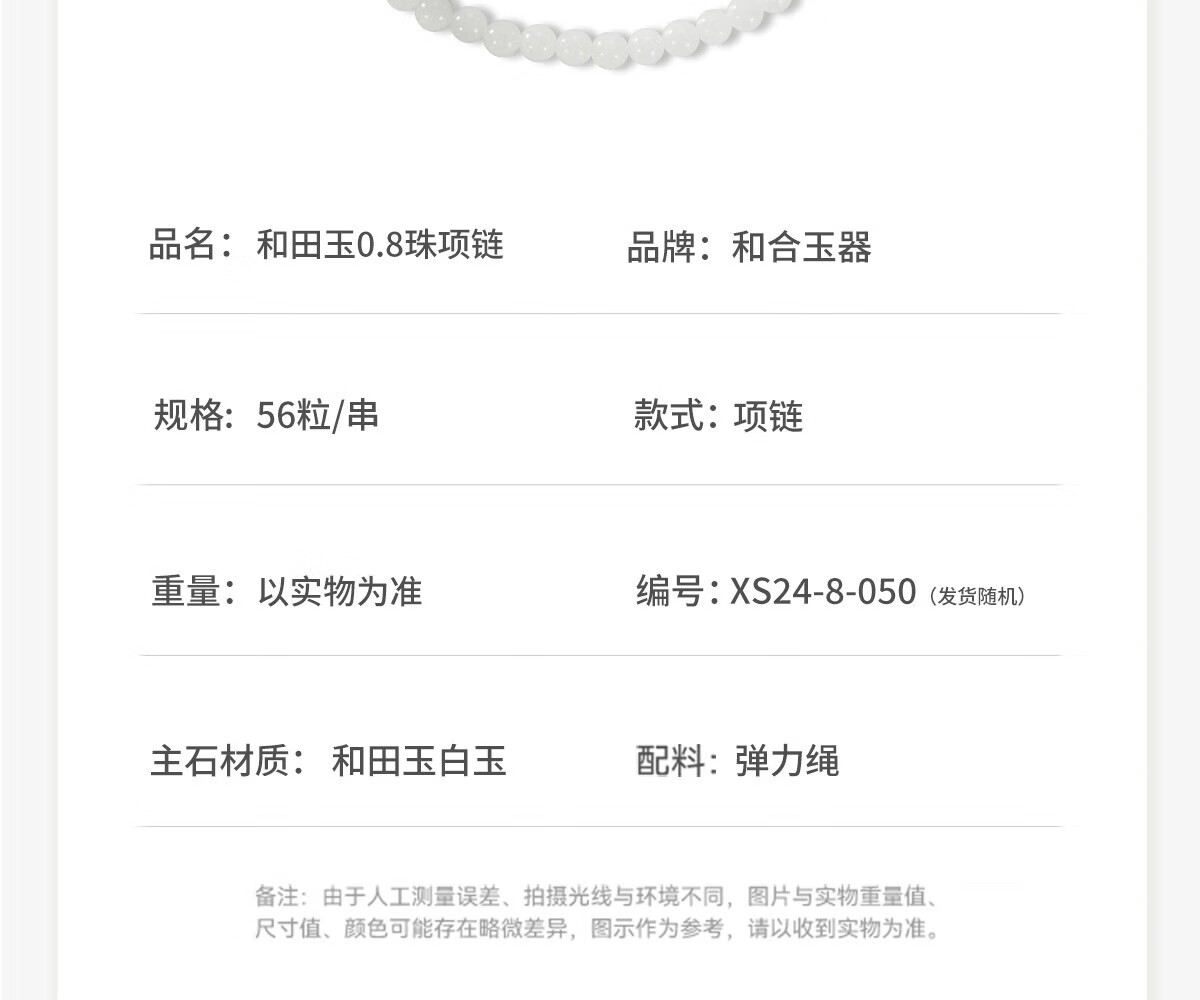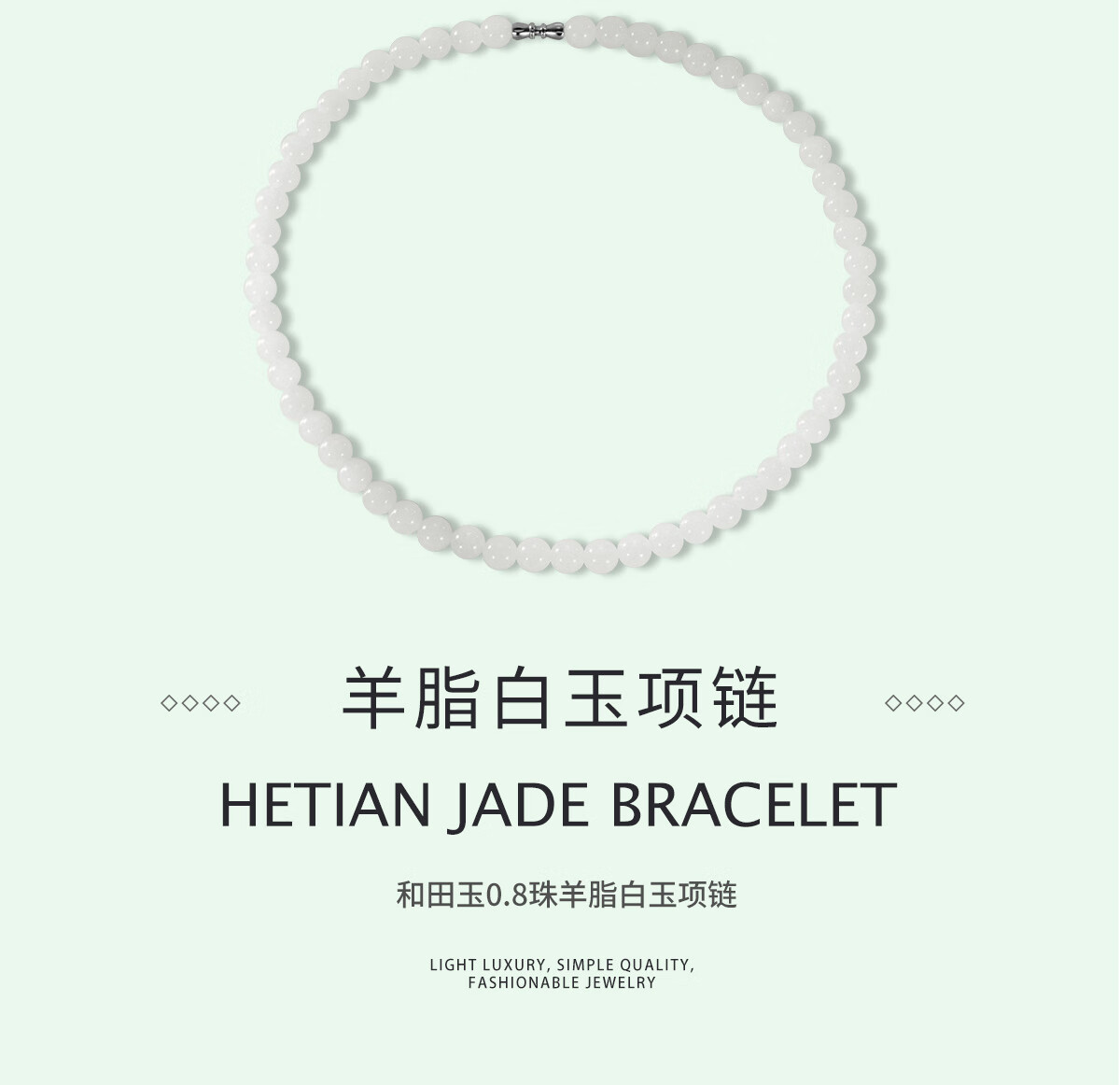 和合玉器和合玉器和田玉羊脂白玉0.8珠项链羊脂玉山料玉珠颈饰品送友妈妈