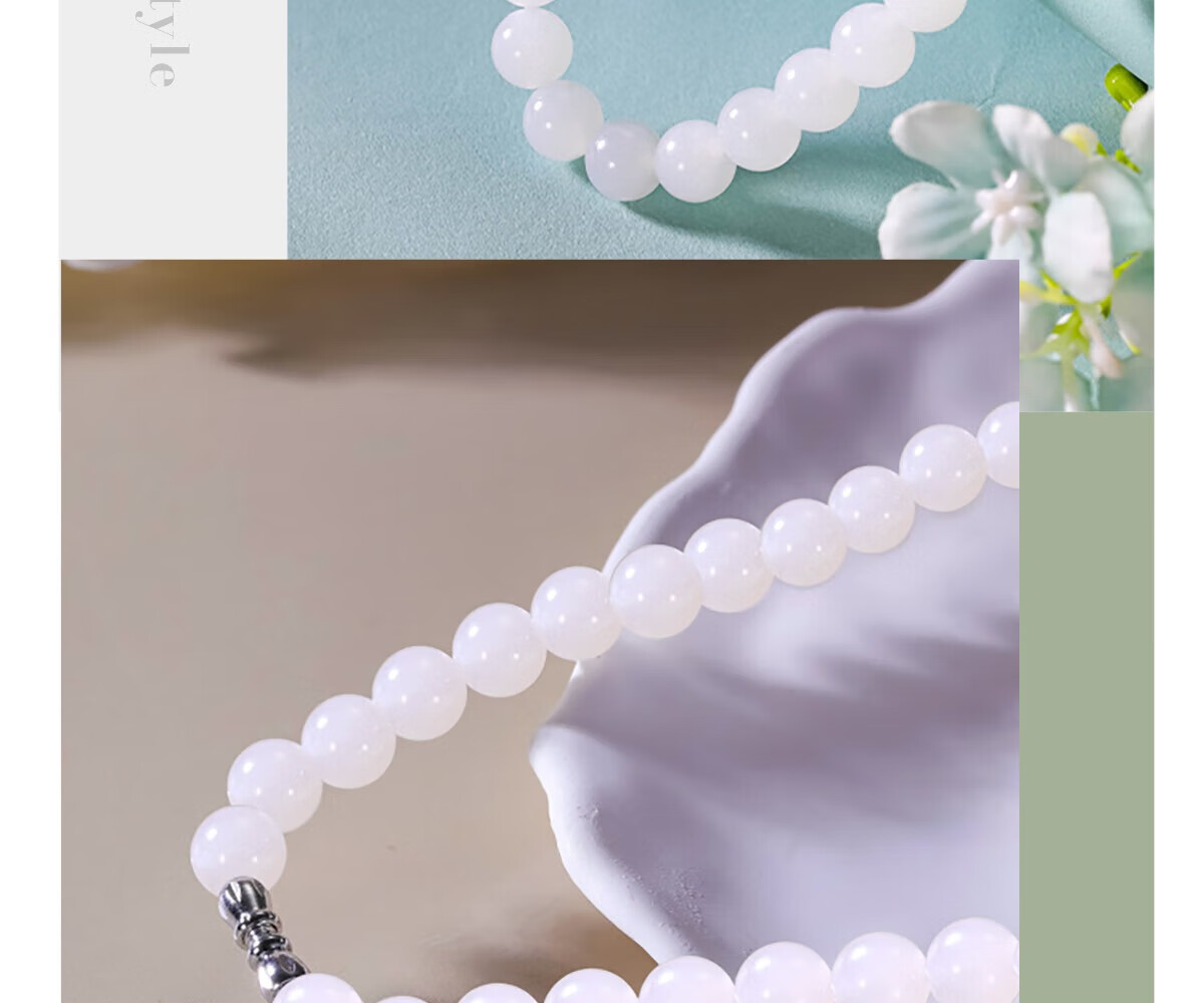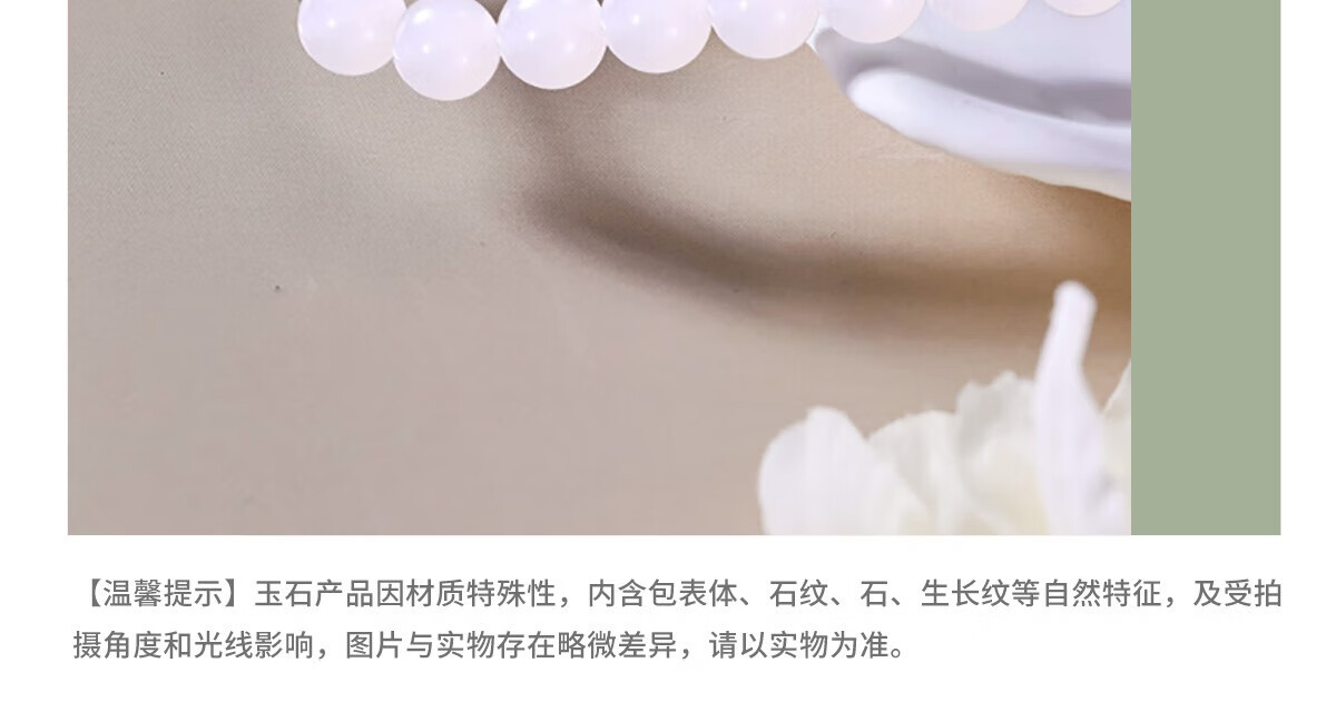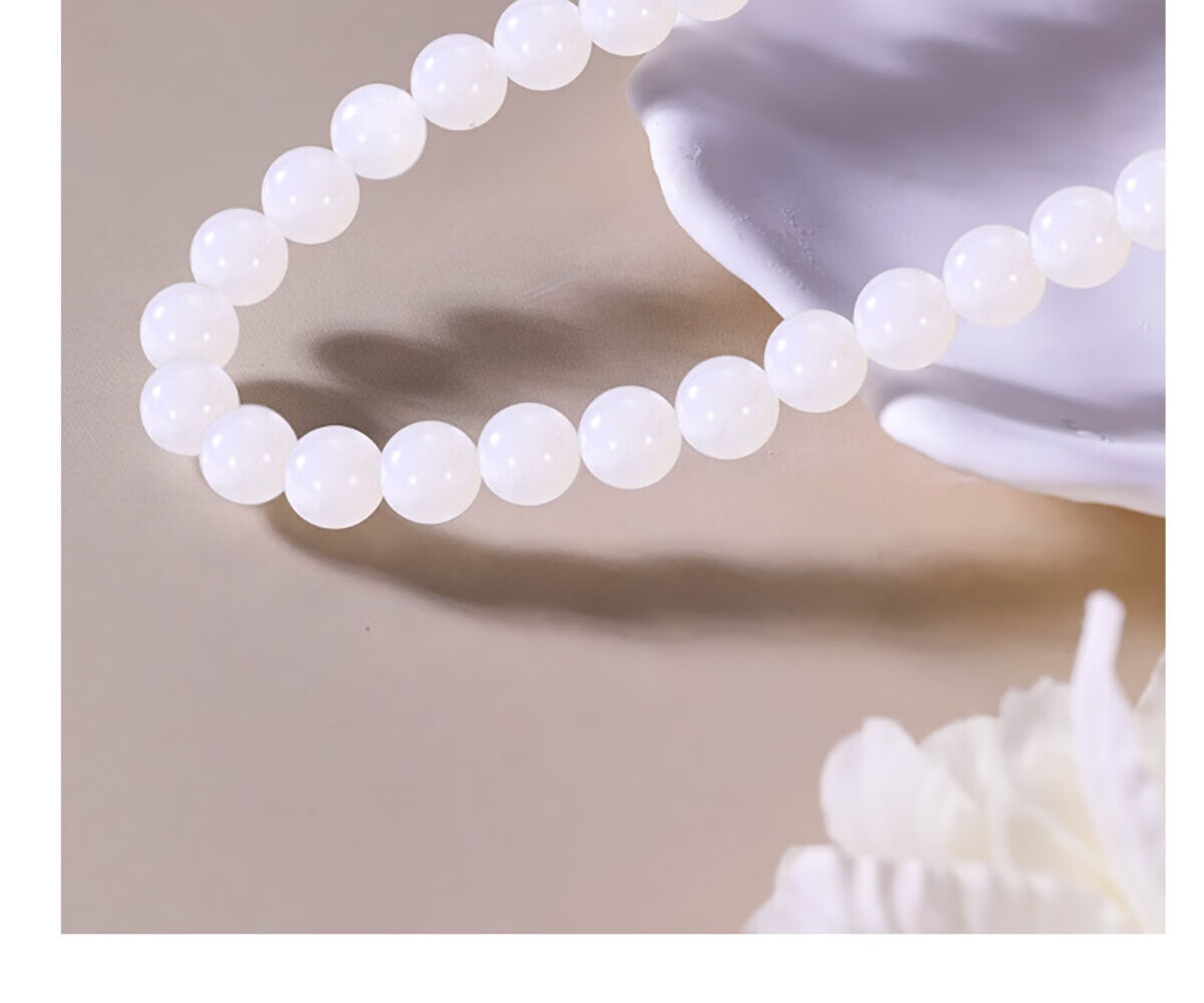 和合玉器和合玉器和田玉羊脂白玉0.8珠项链羊脂玉山料玉珠颈饰品送友妈妈