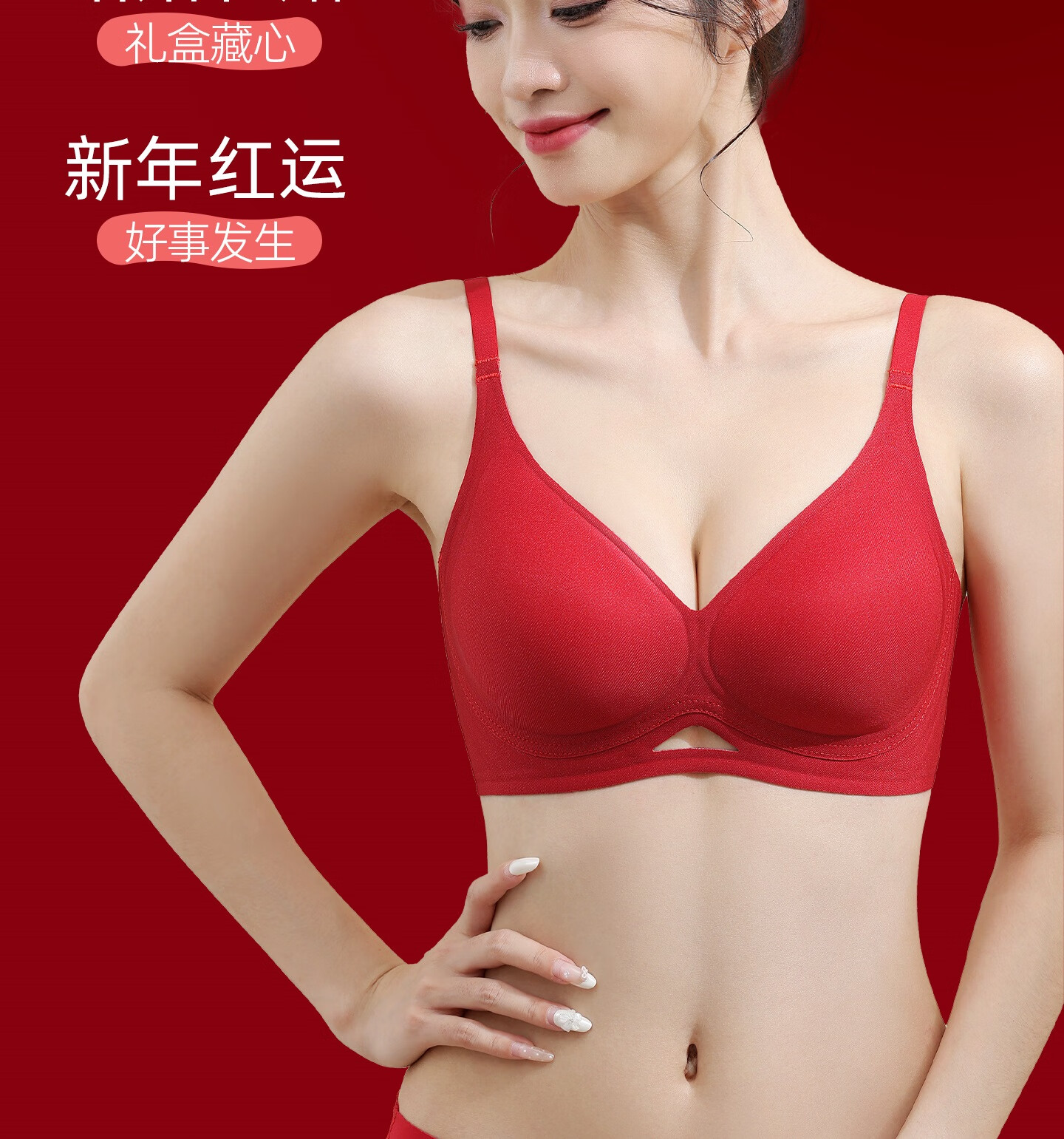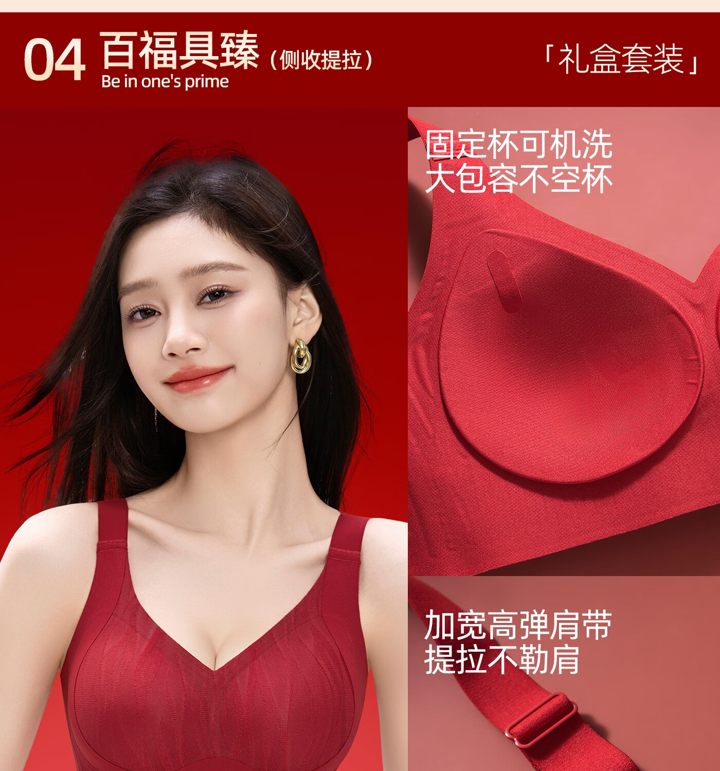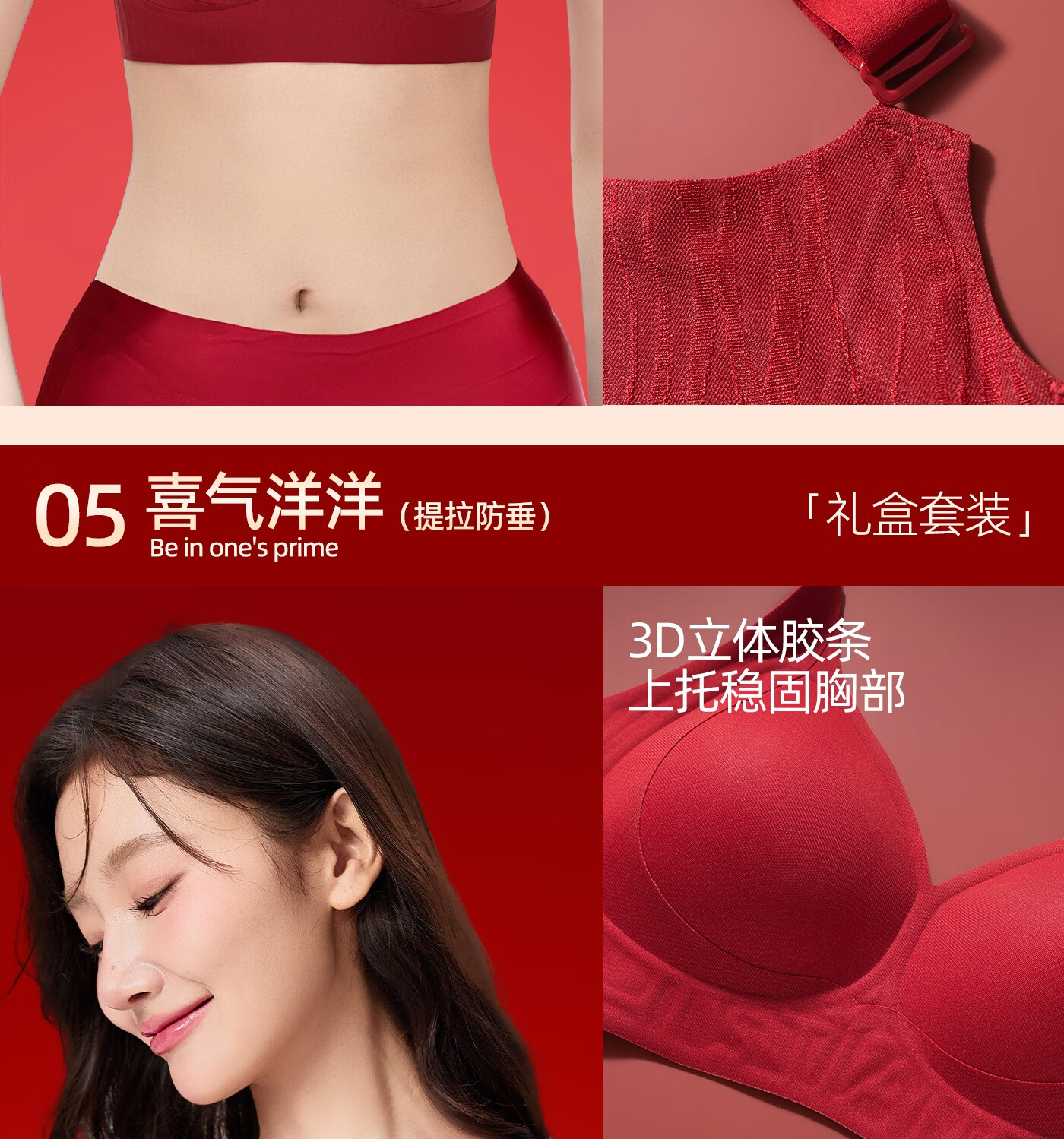 欧迪芬本命年红色女士内衣女聚拢侧收防下垂胸罩新年红运文胸套装礼盒 【幸福美满礼盒装】 XL 【建议体重120-135斤】