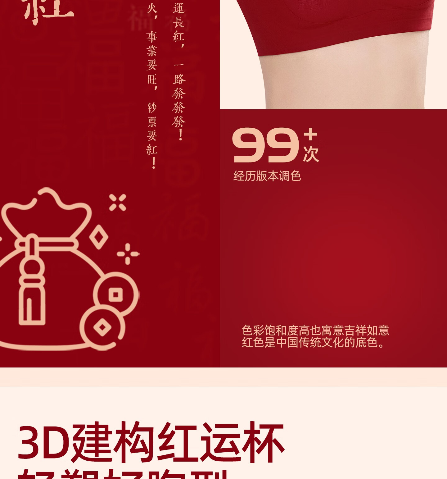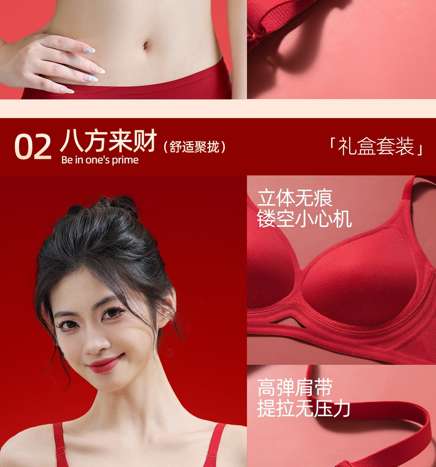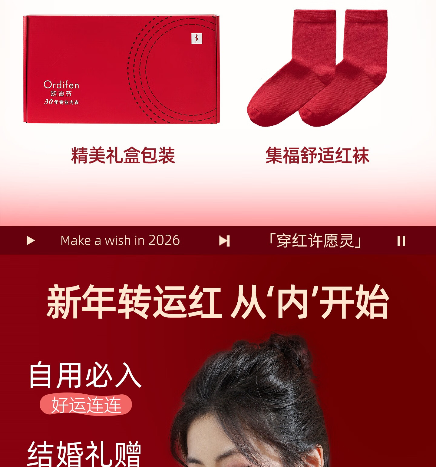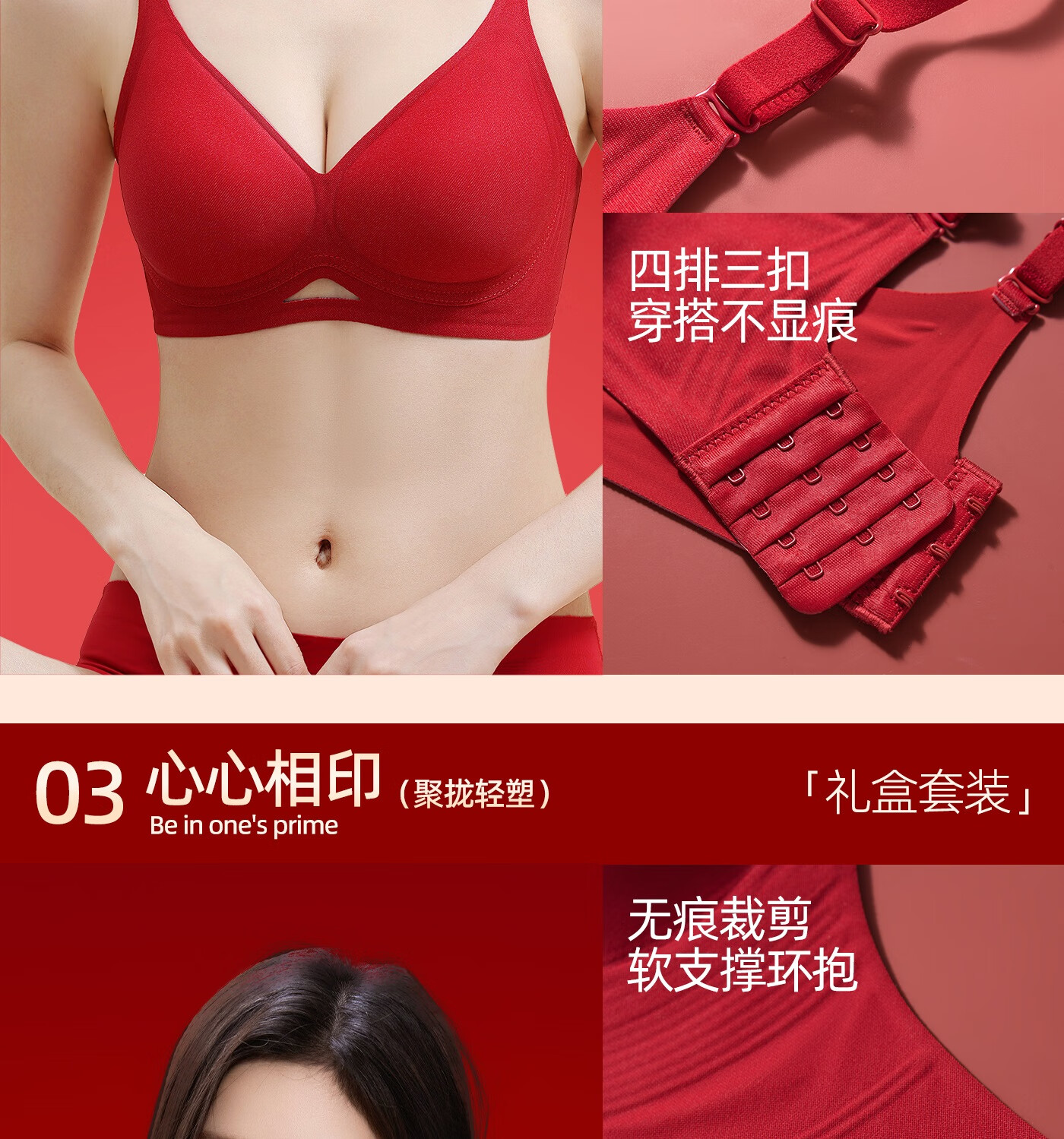 欧迪芬本命年红色女士内衣女聚拢侧收防下垂胸罩新年红运文胸套装礼盒 【幸福美满礼盒装】 XL 【建议体重120-135斤】