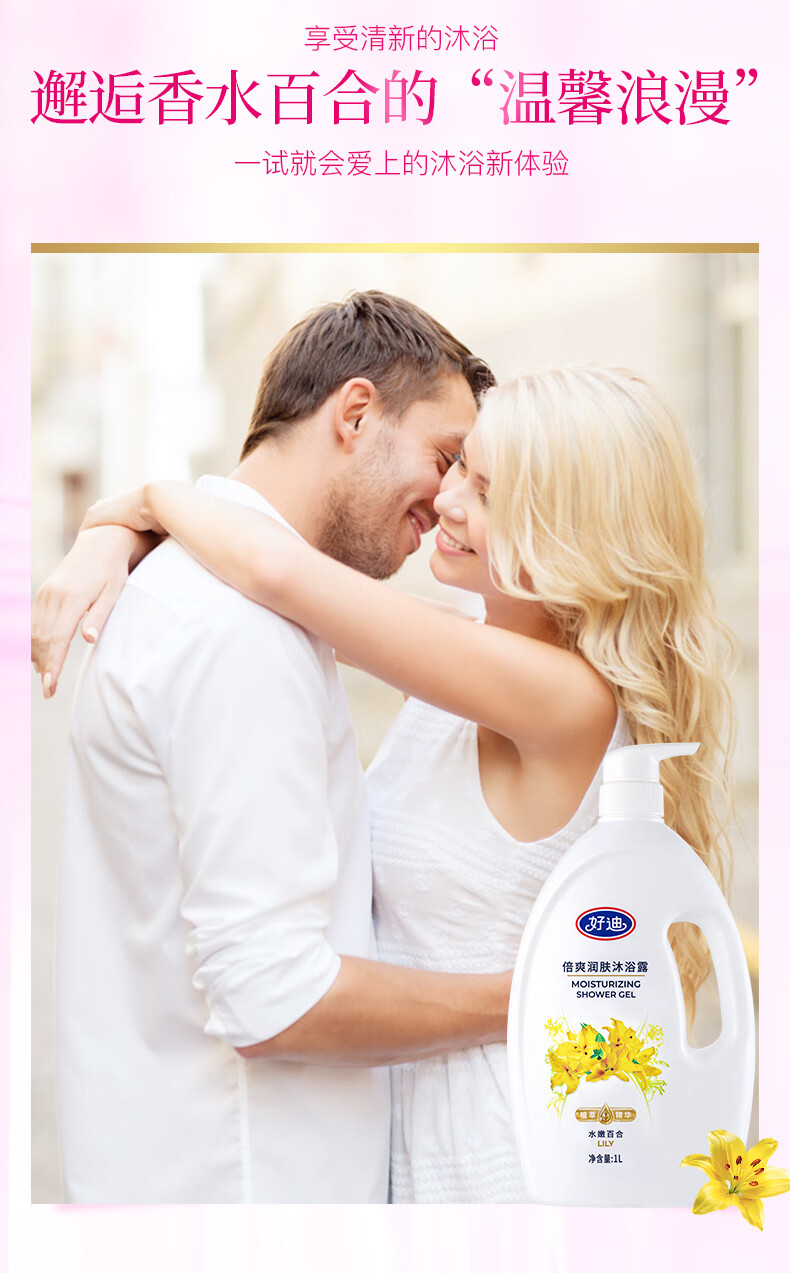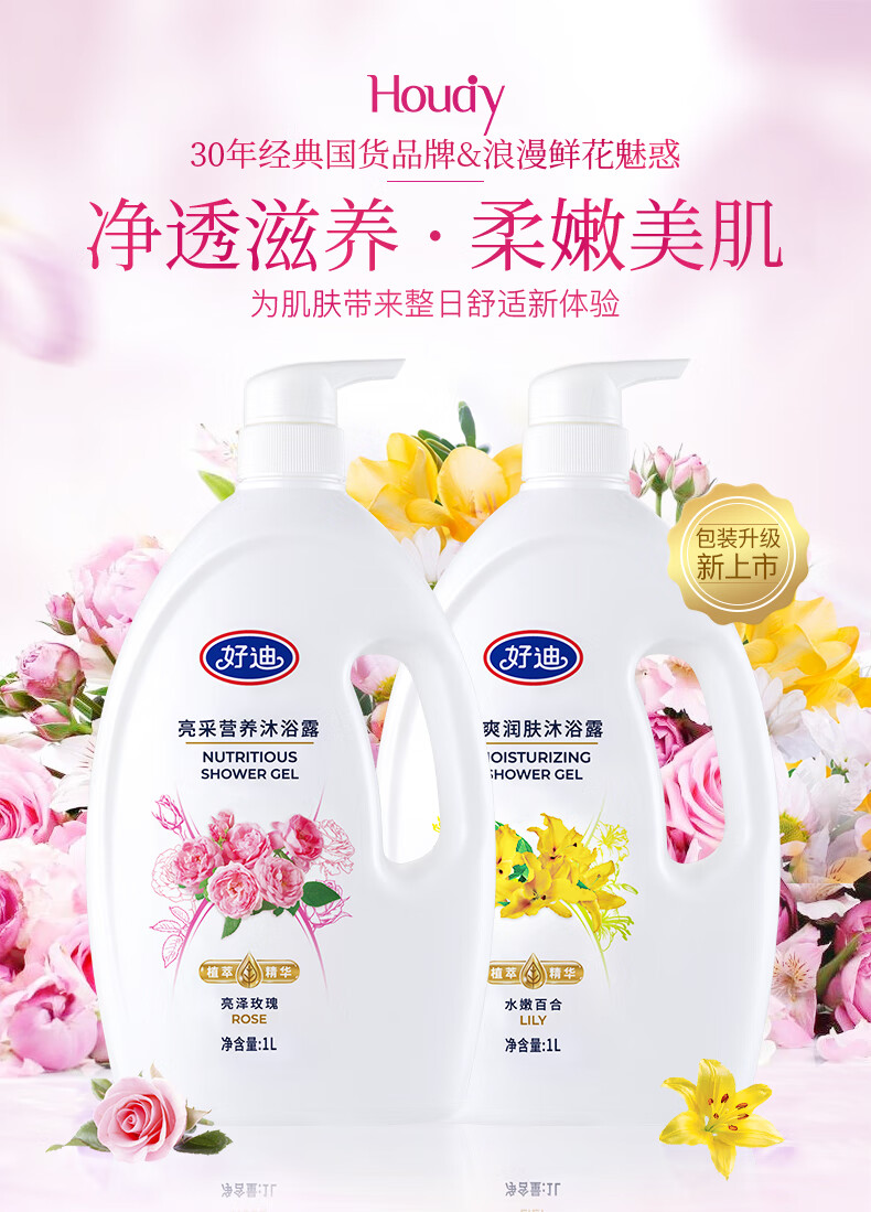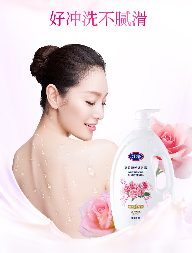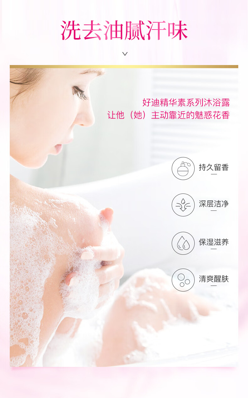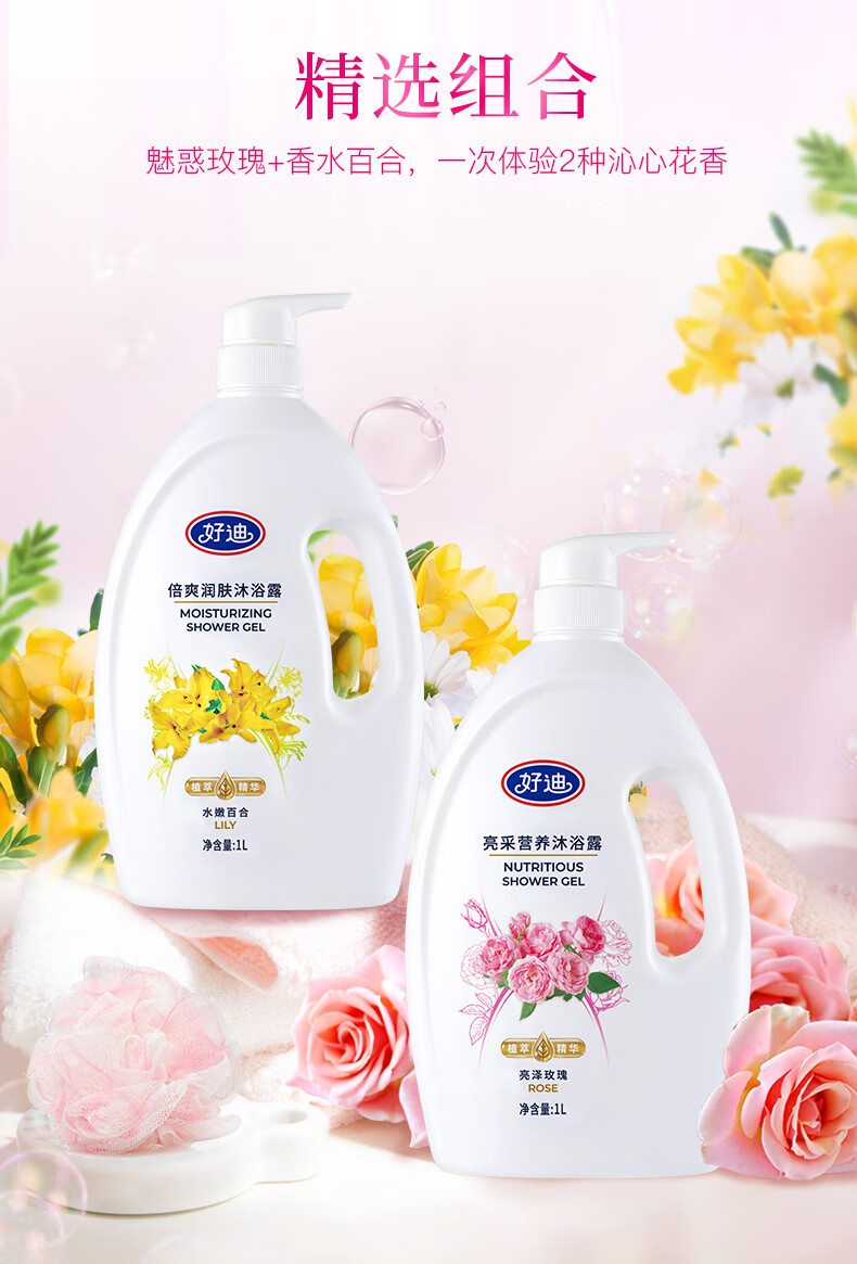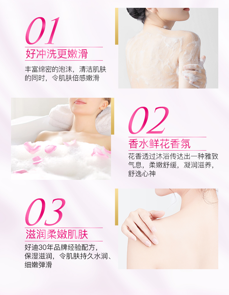 好迪花香沐浴露 持久留香净透毛孔柔嫩肌肤男女通用排浊大容量家庭装 魅惑玫瑰1000ml