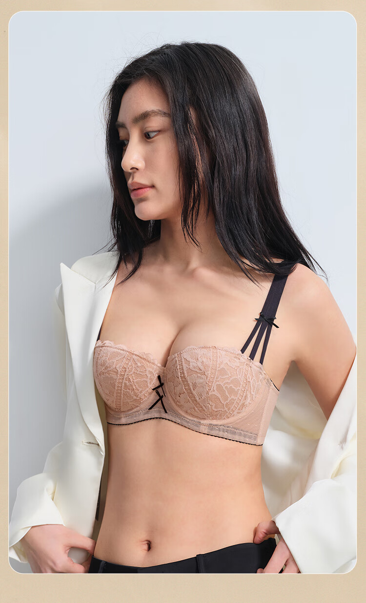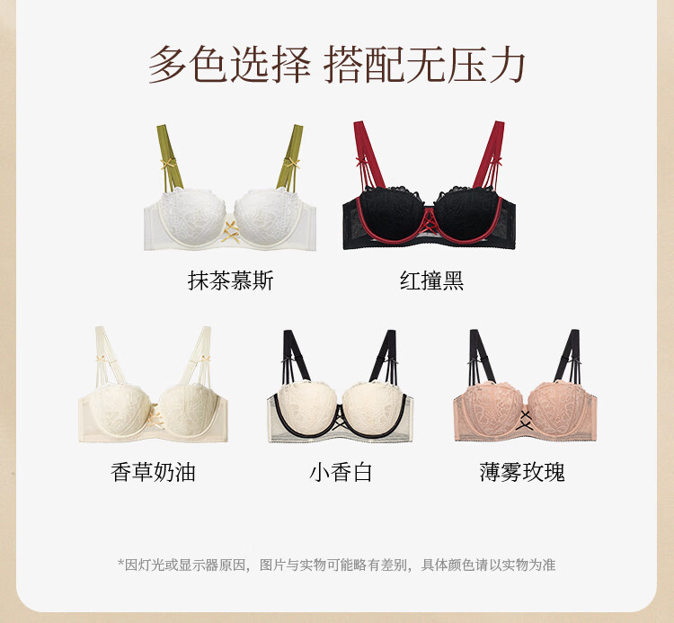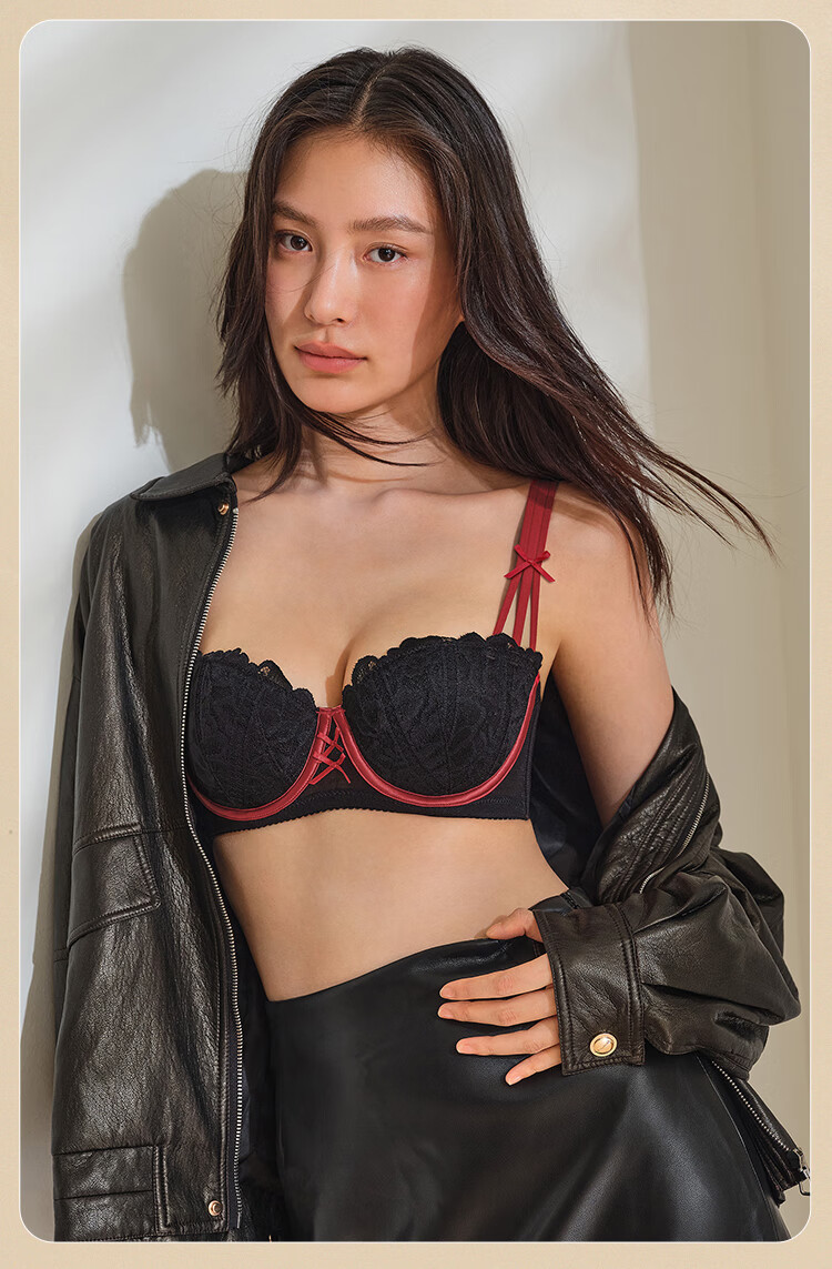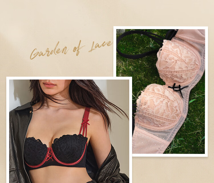 奶糖派贝壳杯2.0蕾丝大胸挺拔饱满胸型轻盈透气文胸内衣女送女友 红撞黑2.0 【秋冬新色】 70C