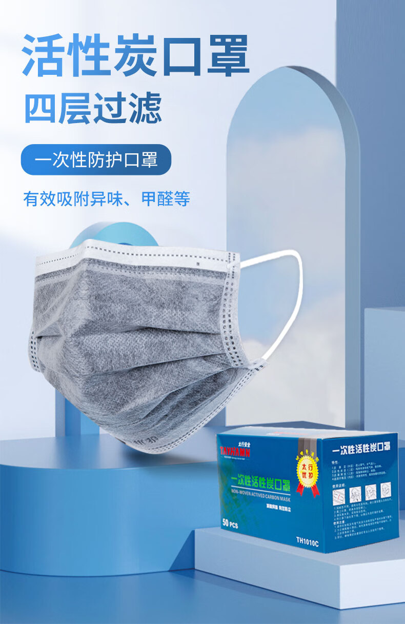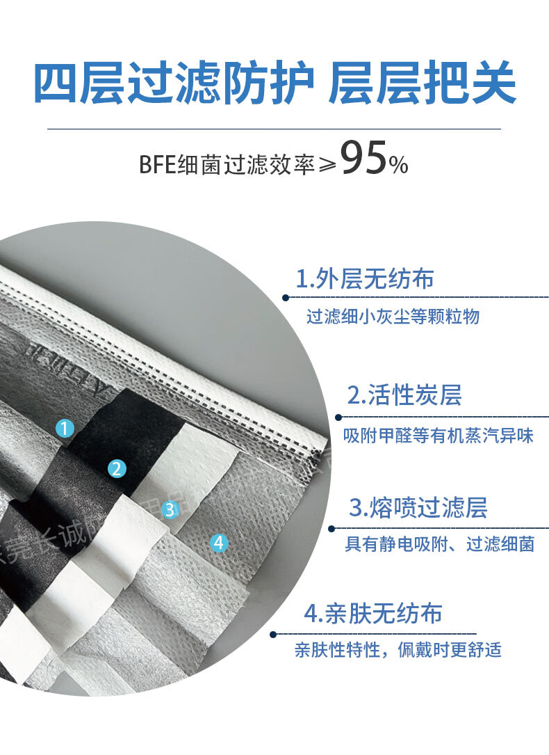 长诚防护 活性炭口罩一次性四层加厚实验室吸附异味工业防尘防甲醛二手烟 TH1010C四层活性炭口罩500只-独立装