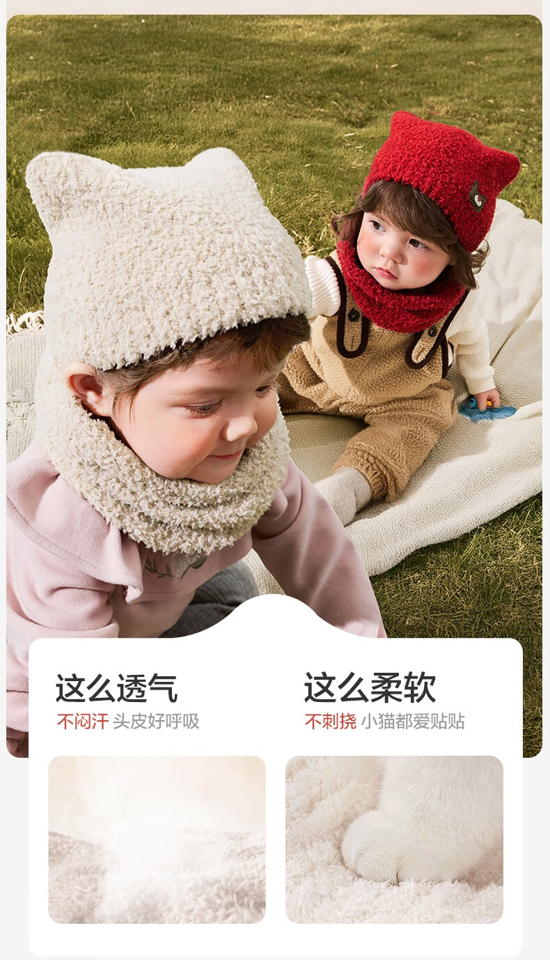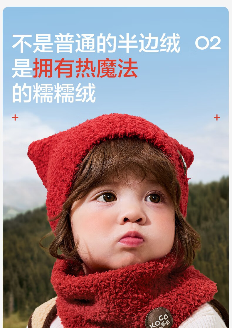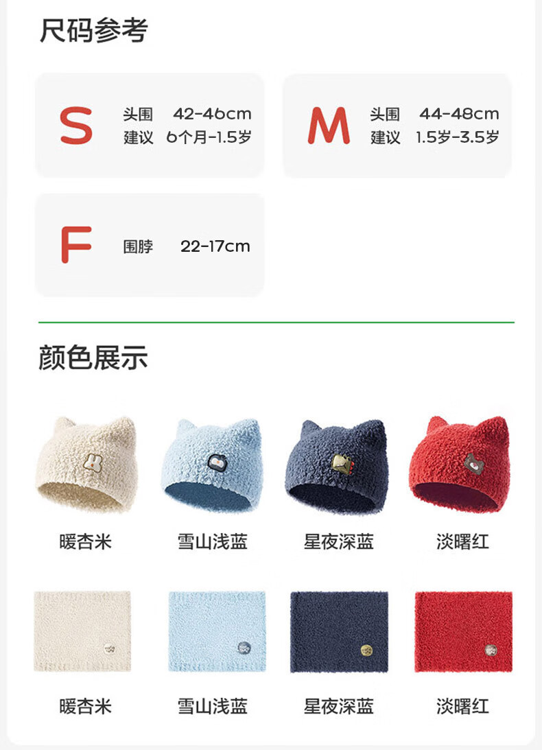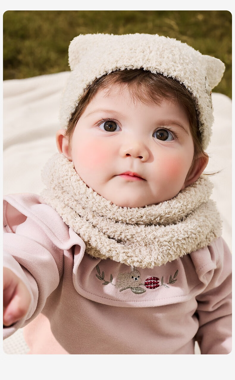 KocotreeKK树宝宝帽子秋冬款婴儿毛绒帽男童女孩保暖围脖A类小月龄护耳帽 【两件套】淡曙红 M:头围44-48CM 建议1.5岁-3.5岁
