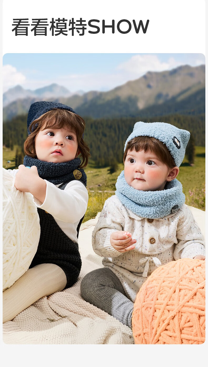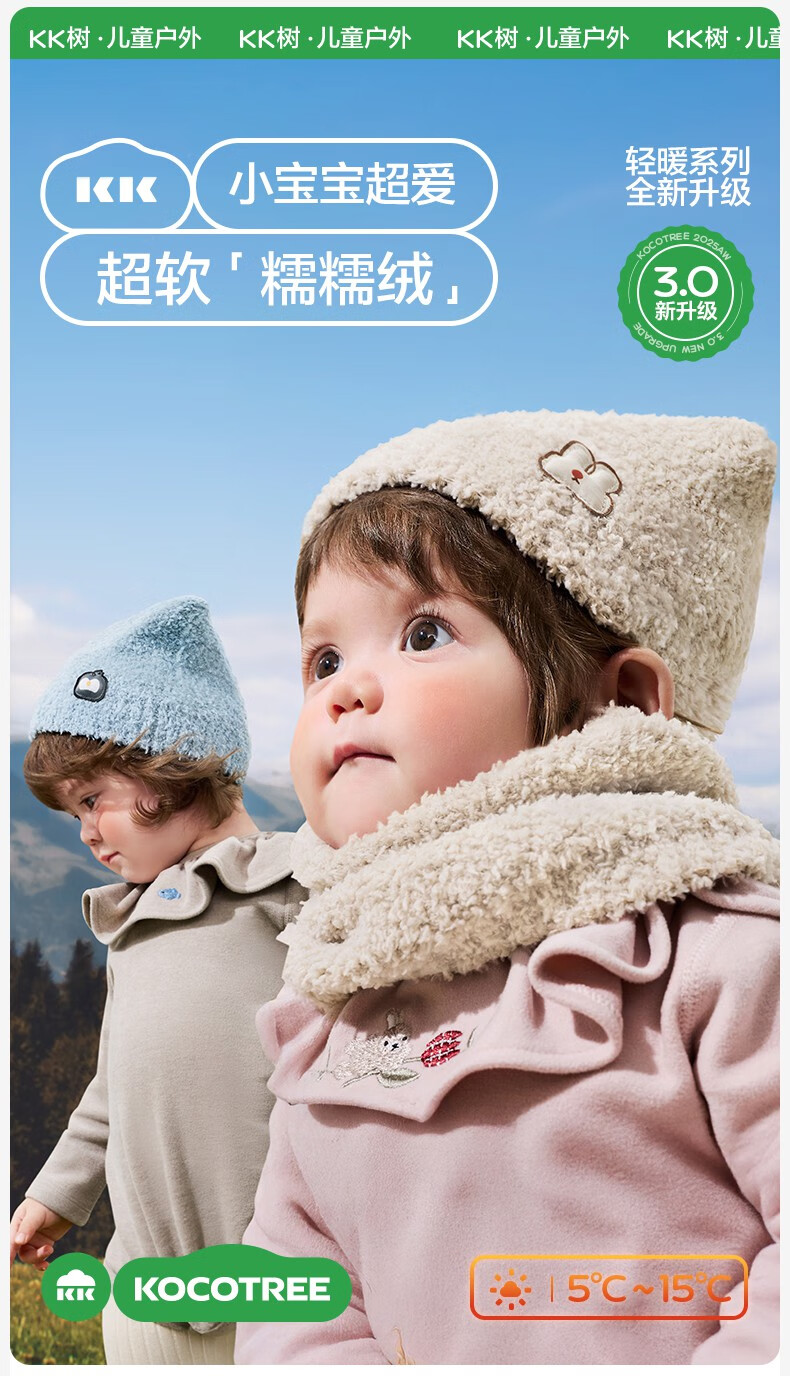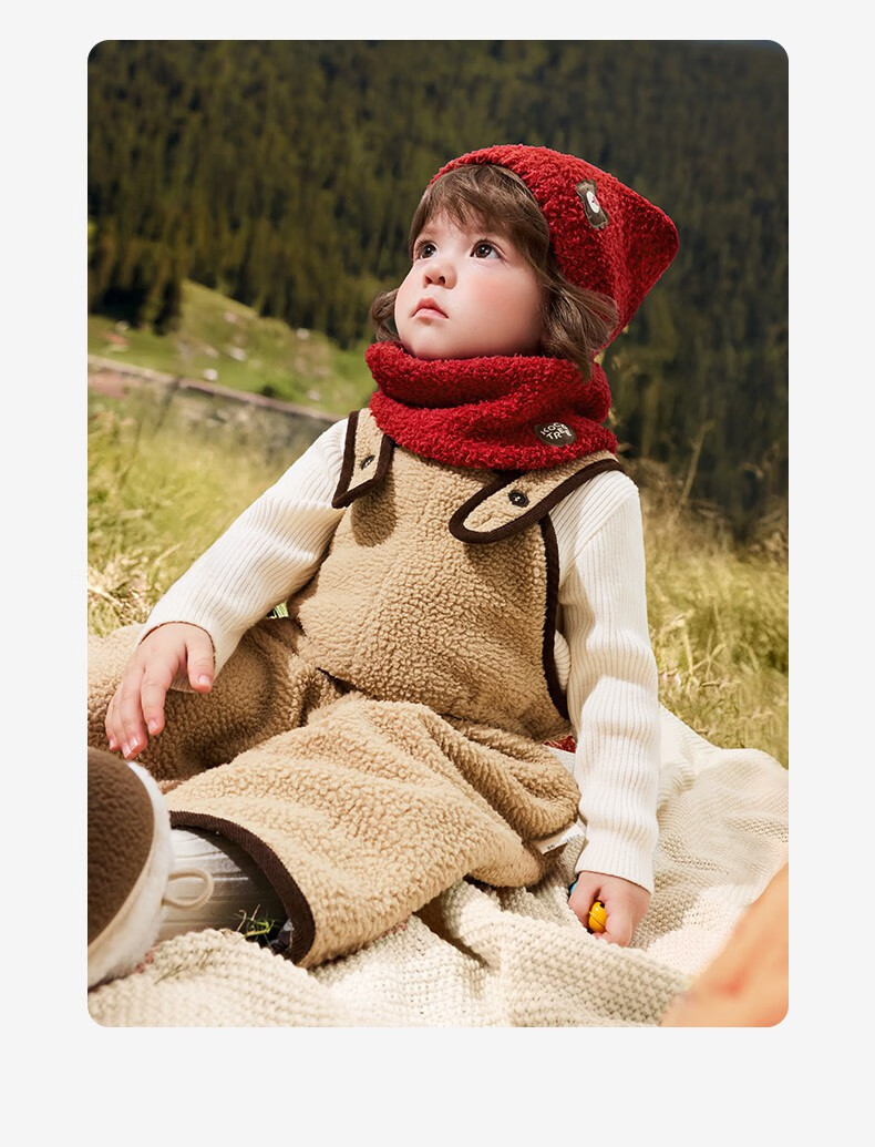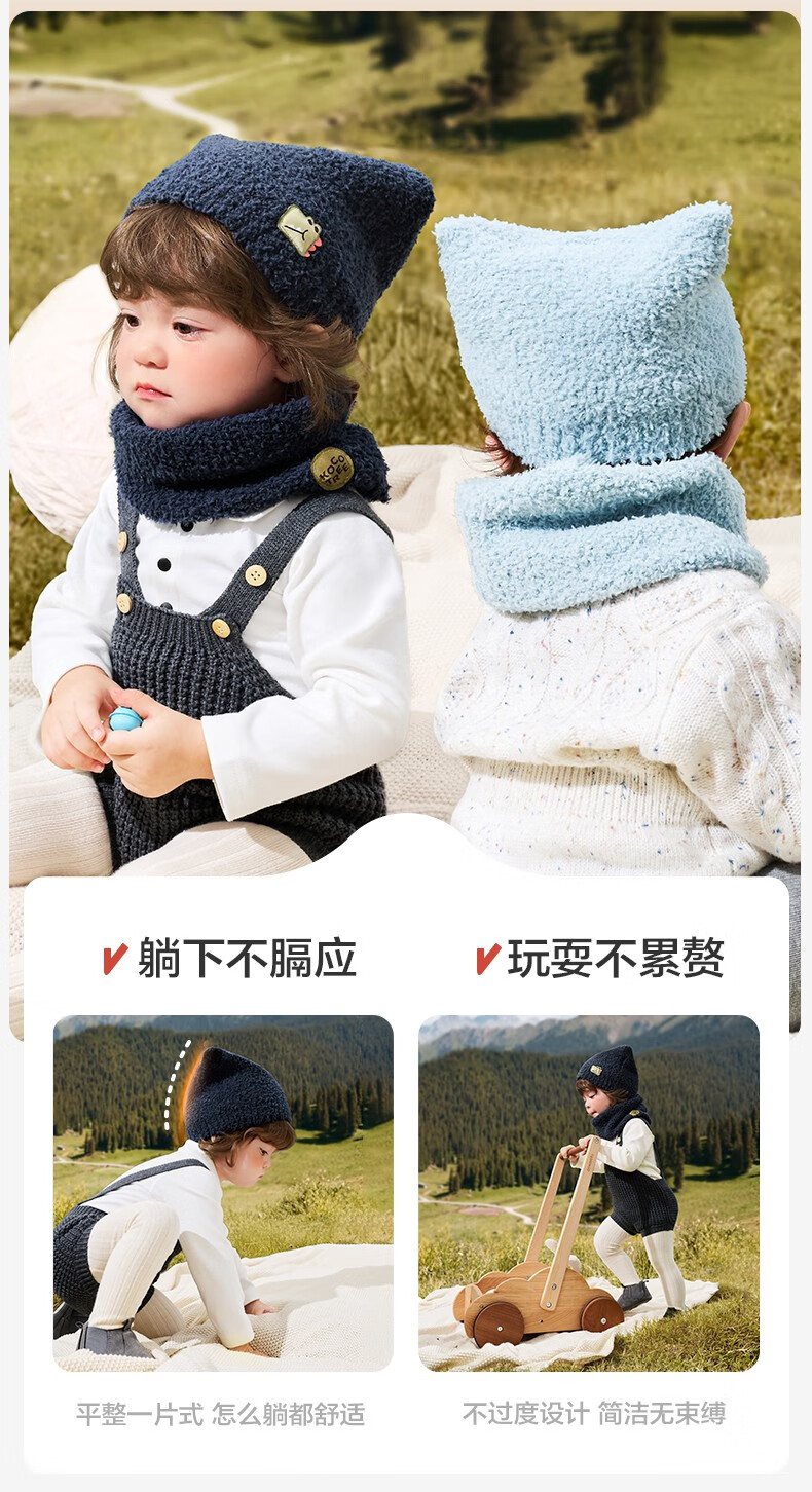 KocotreeKK树宝宝帽子秋冬款婴儿毛绒帽男童女孩保暖围脖A类小月龄护耳帽 【两件套】淡曙红 M:头围44-48CM 建议1.5岁-3.5岁