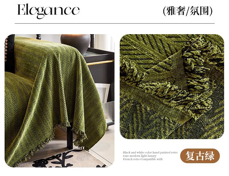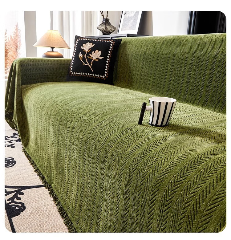 臻昔 北欧简约沙发盖布四季通用防猫抓沙发巾沙发套沙发巾盖毯 锦慕-复古绿 180cm*380cm