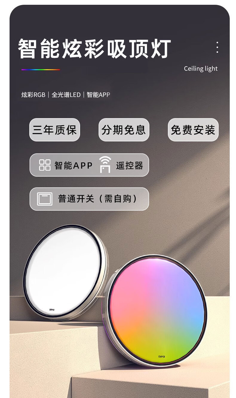 DIM3电竞房氛围主灯全光谱rgb幻炫彩led吸顶灯游戏儿童房卧室智能灯具 【电竞智能款+遥控器】适20平内