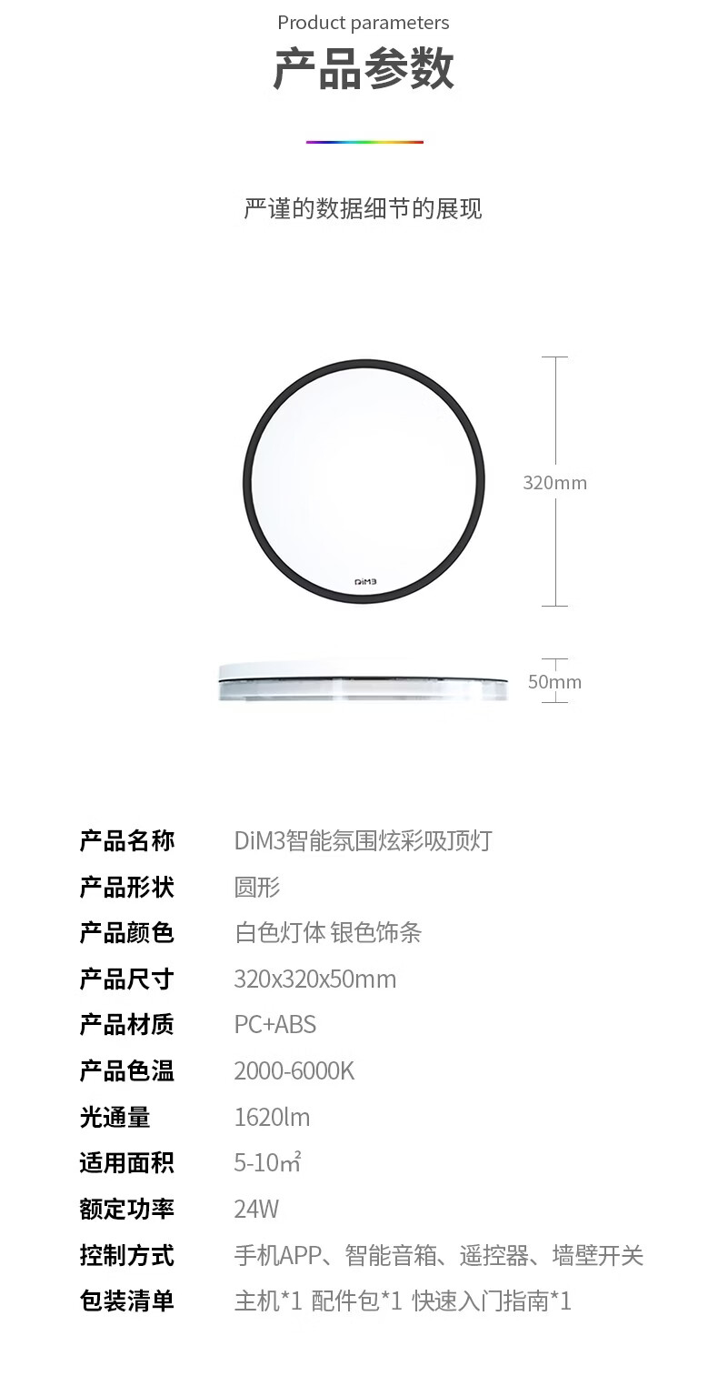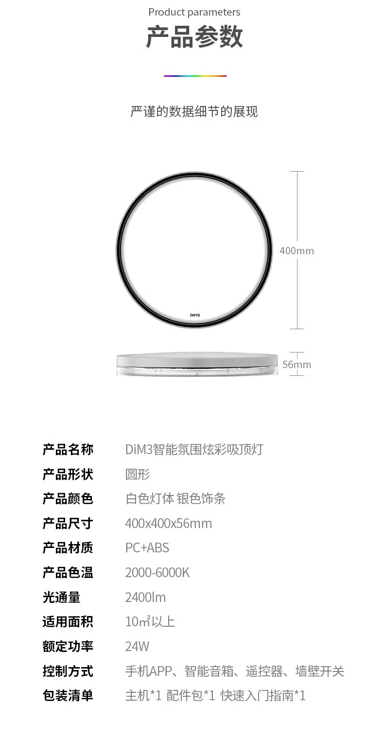水母云(JELLYFISH TUR)简约高亮智能吸顶灯客厅卧室儿童房氛围背光鸿蒙智联语音控制 0.1W 3㎡内适用 0lm 遥控器【只支持2024年1月起的灯】 18m² 内