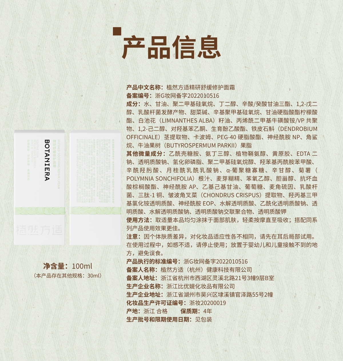植然方适石斛舒缓修护面霜50g褪红屏障褪红补水保湿敏感肌护肤品