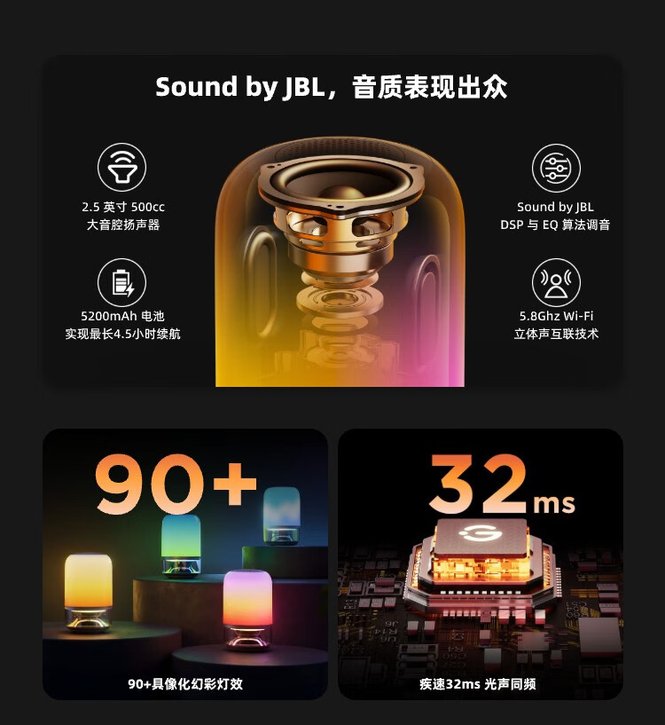 GOVEE LIFE谷纬智能 Sound by JBL幻彩音箱桌面灯 创意拾音音响氛围灯光摆件