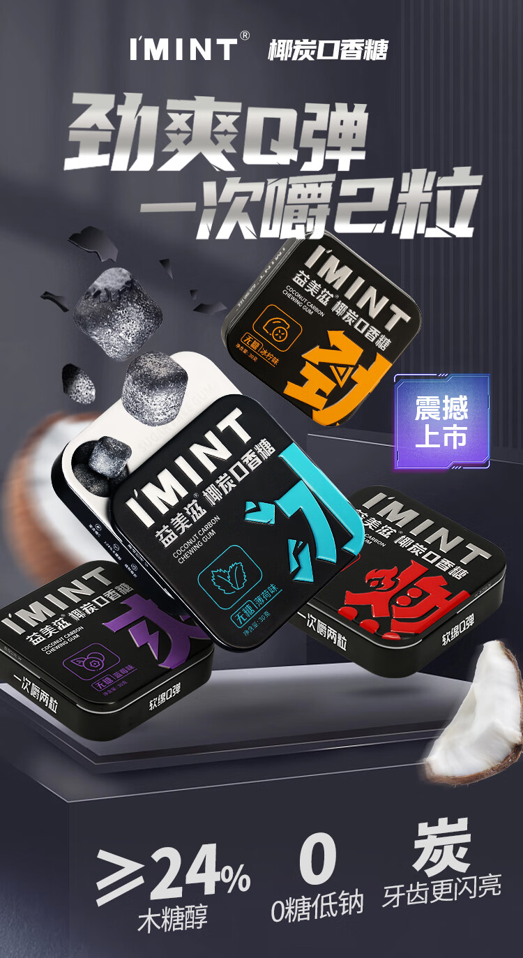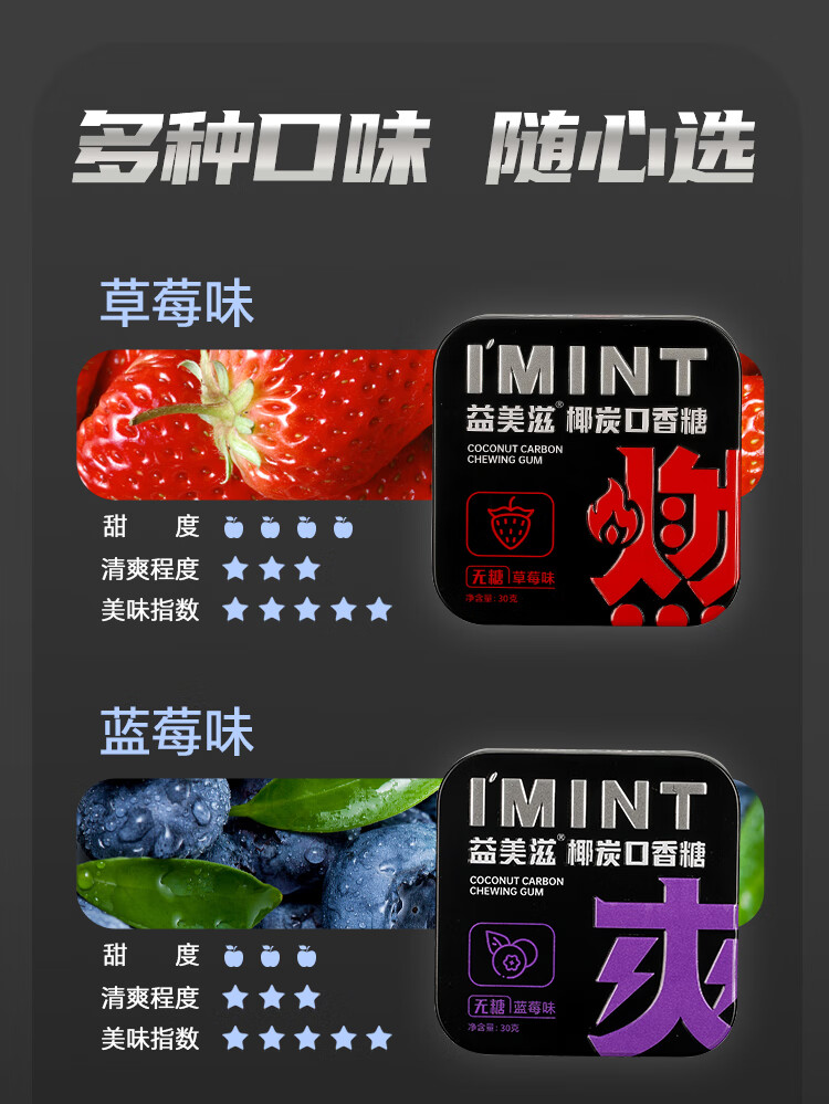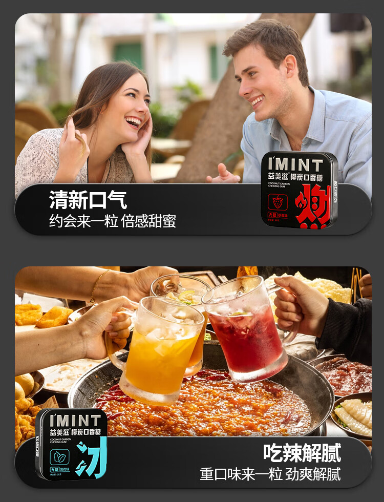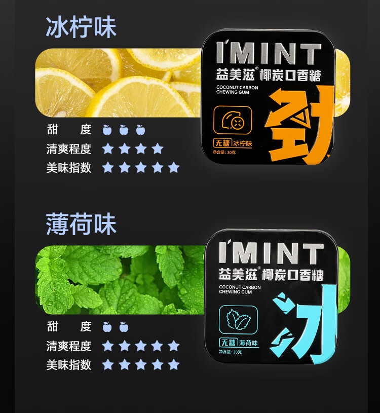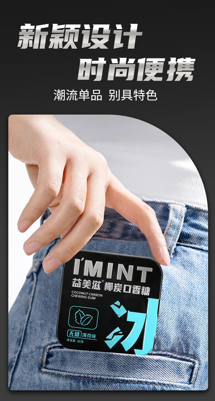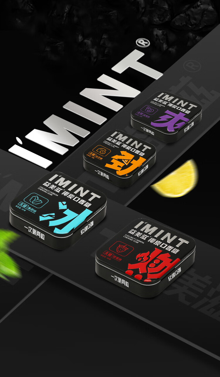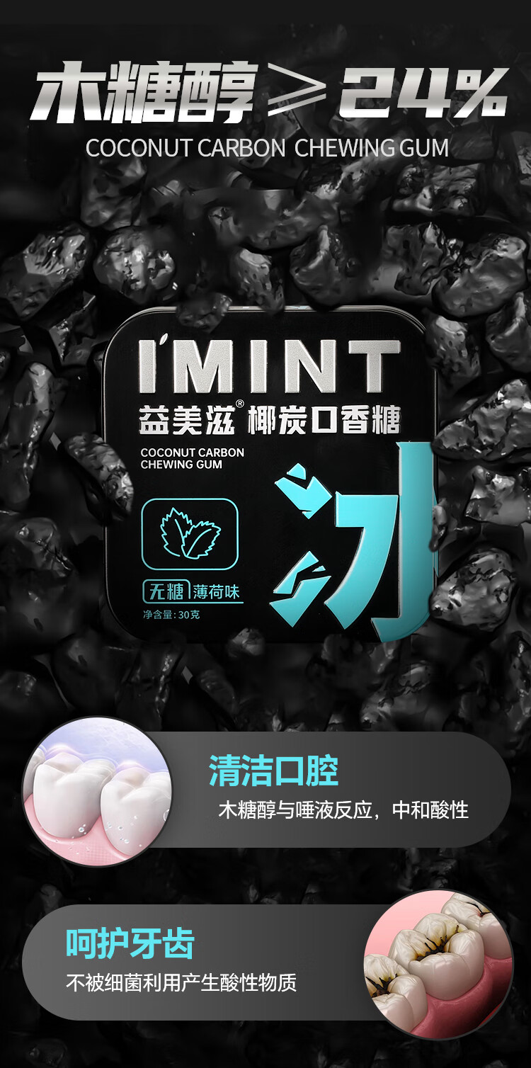 I'MINT 无糖椰碳口香糖 30g*4 清新口气 薄荷糖果零食 益美滋混合口味