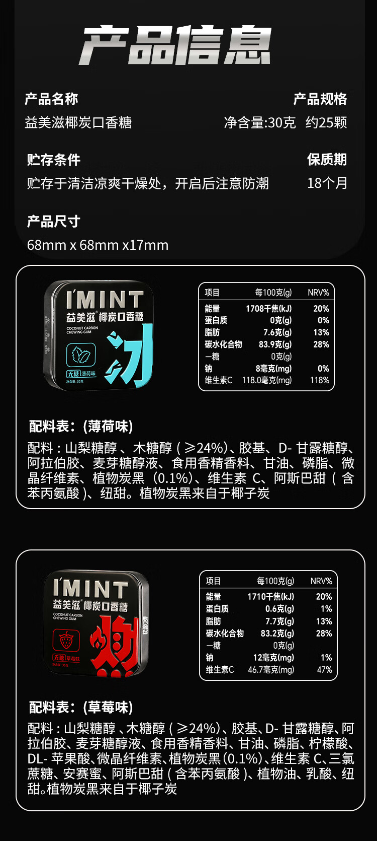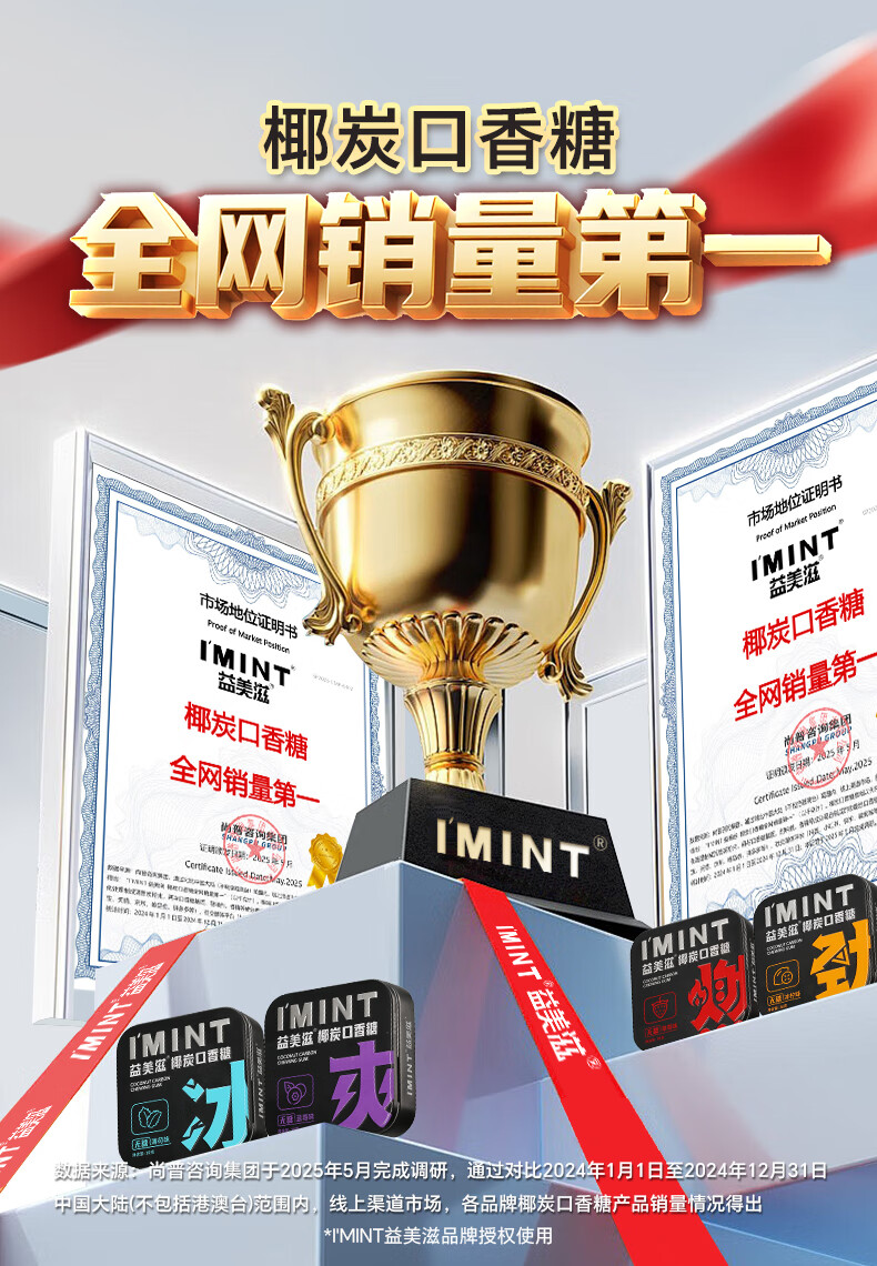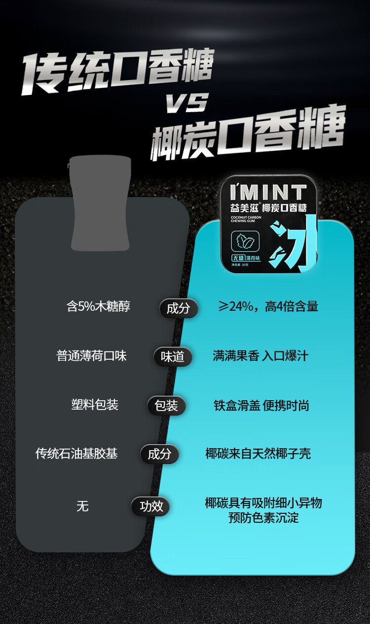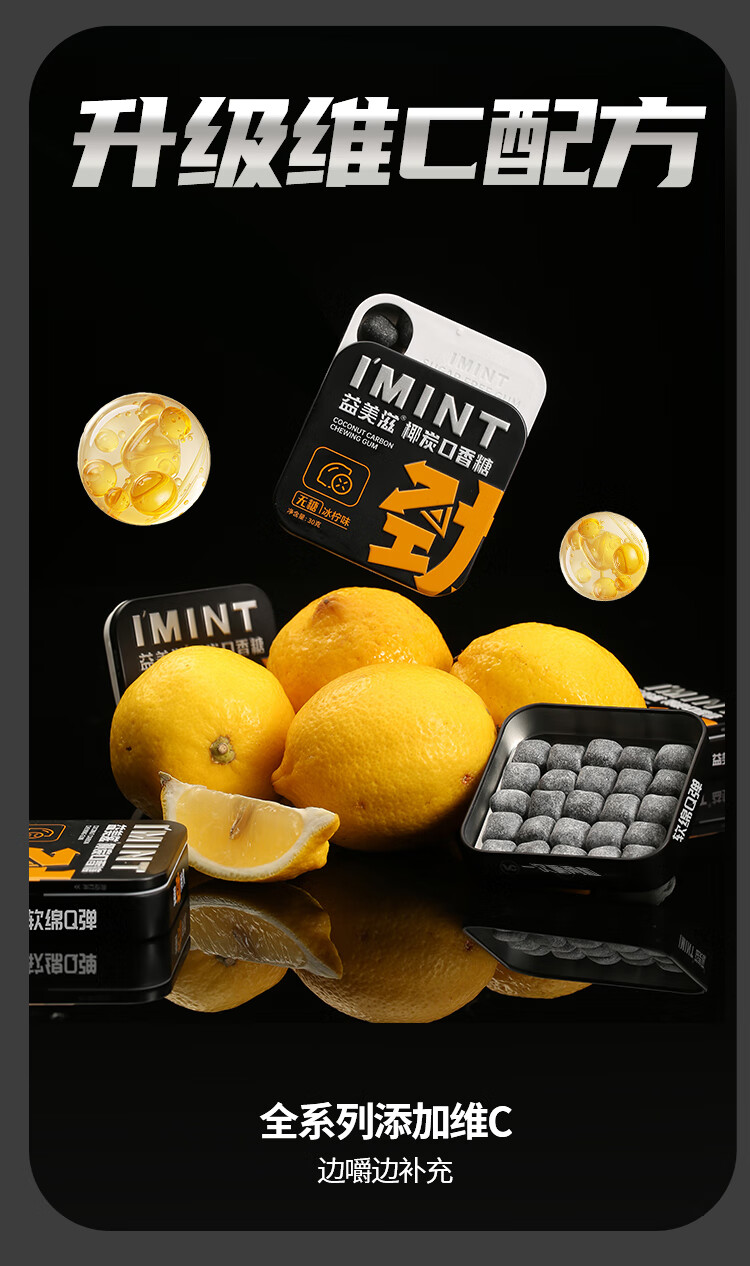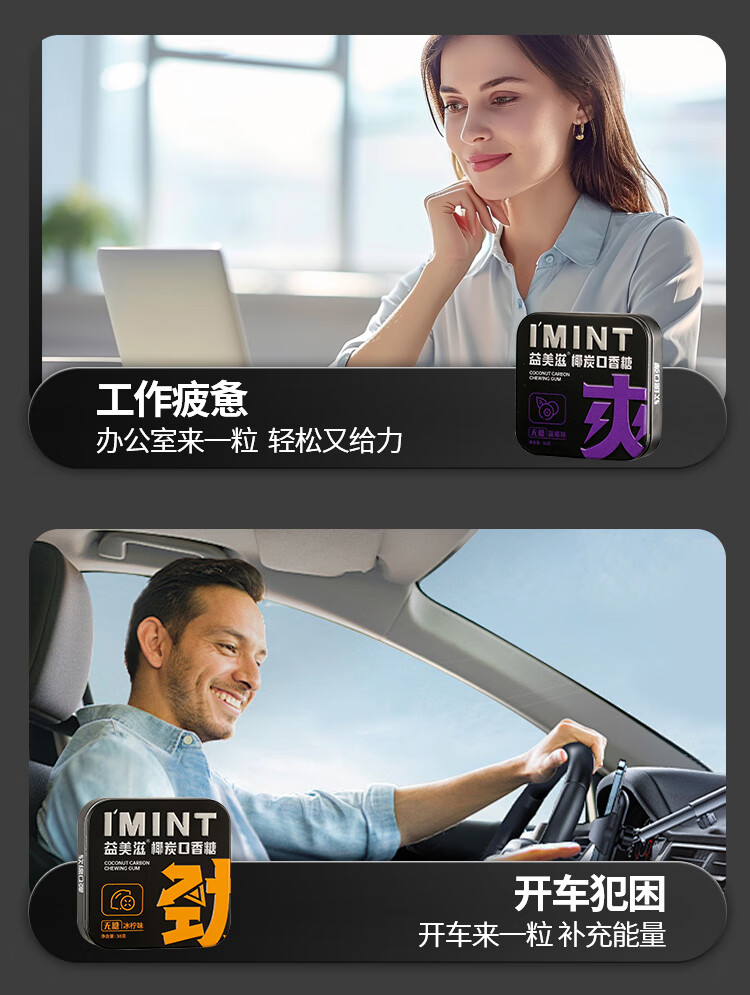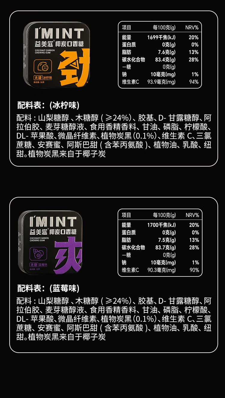 I'MINT 无糖椰碳口香糖 30g*4 清新口气 薄荷糖果零食 益美滋混合口味