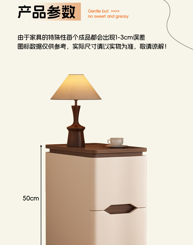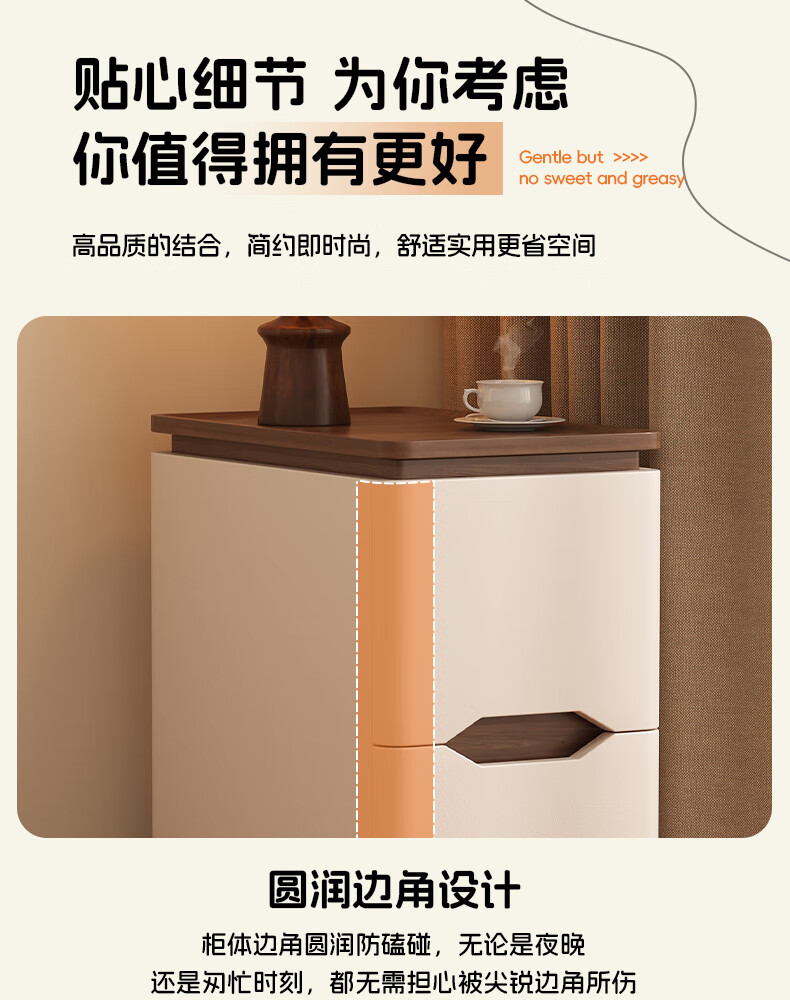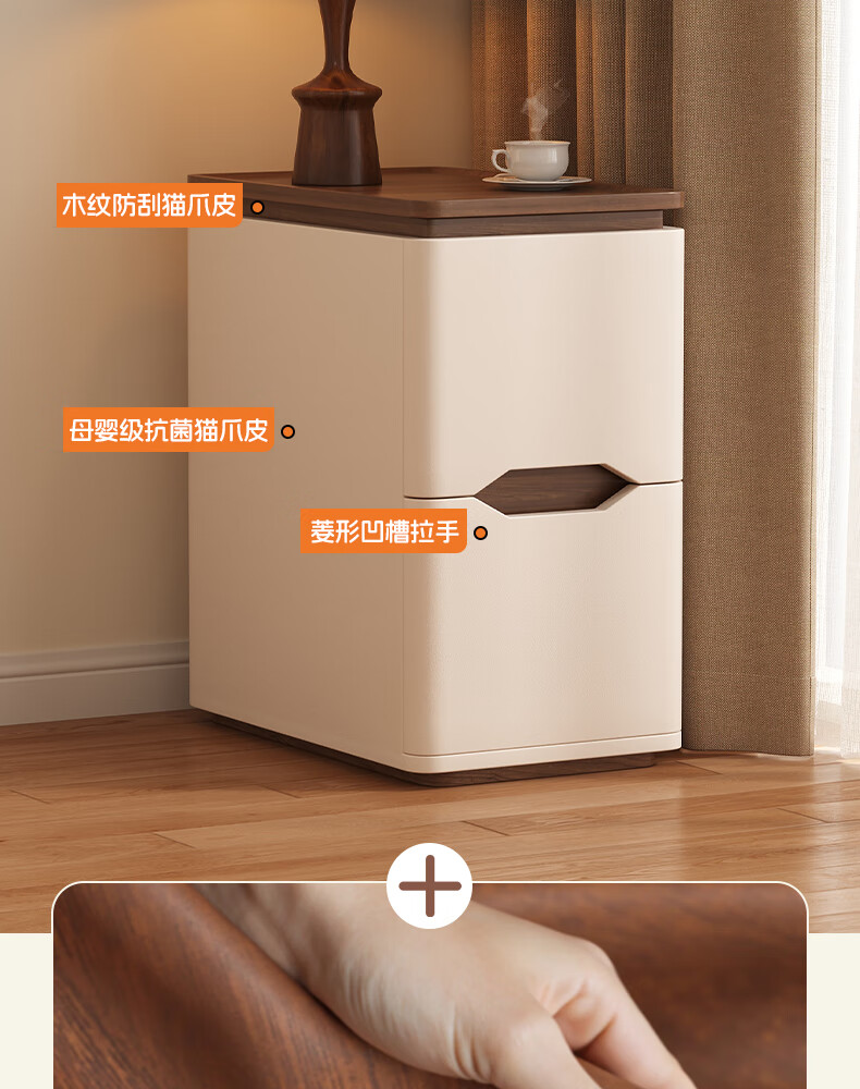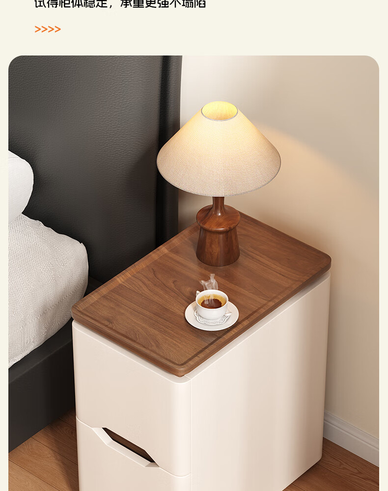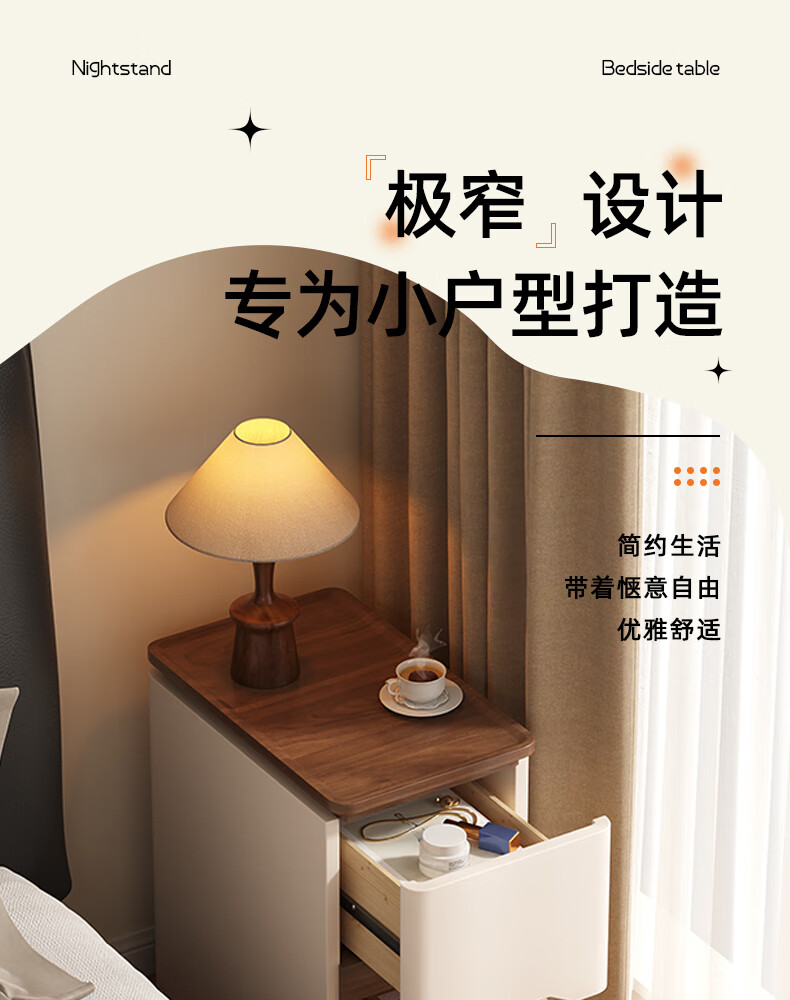 耐禾实木床头柜超窄家用卧室2025爆款小型极窄简约现代免安装收纳柜子 胡桃色台面-米白色【智能锁】 25x40x50cm实木抽屉