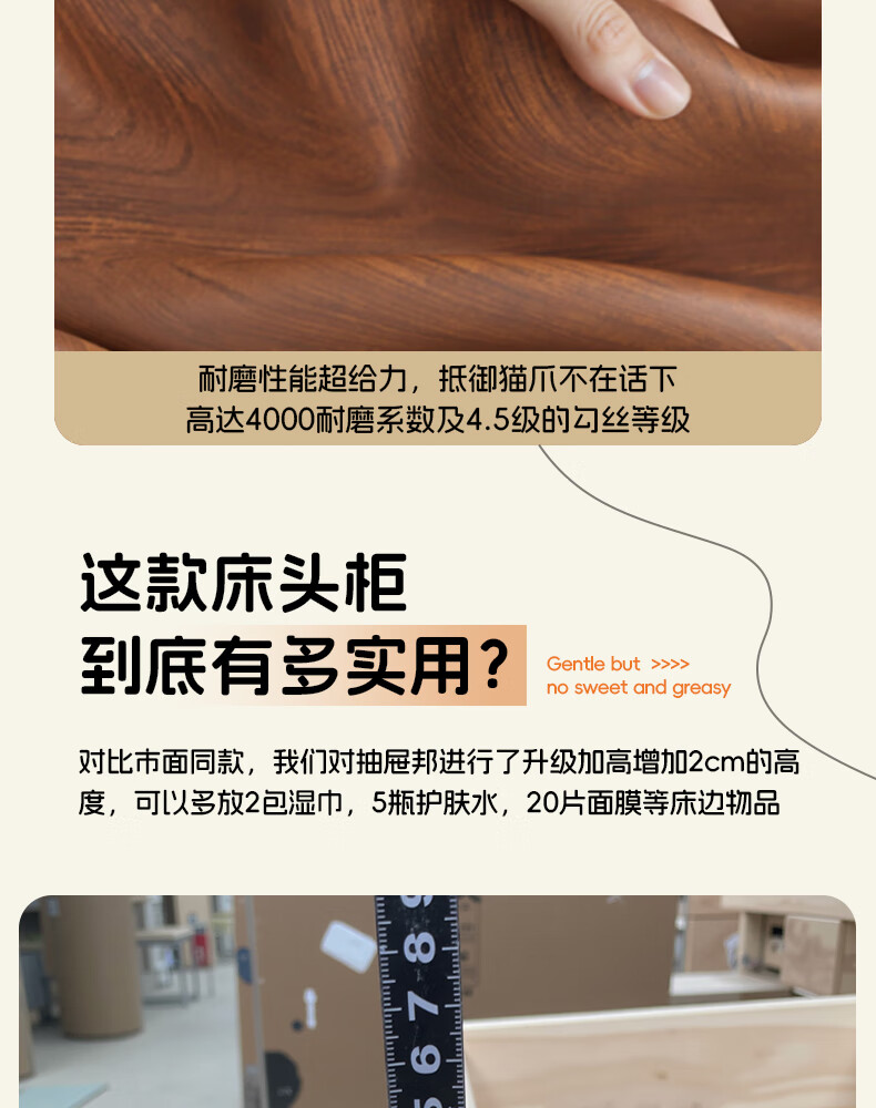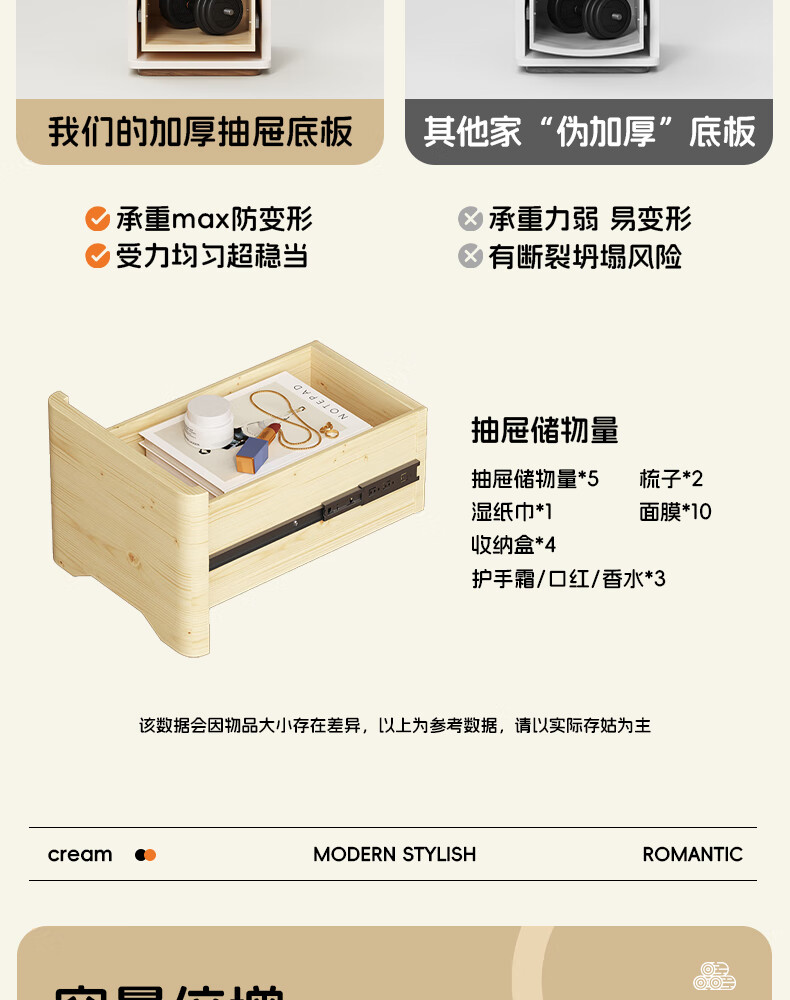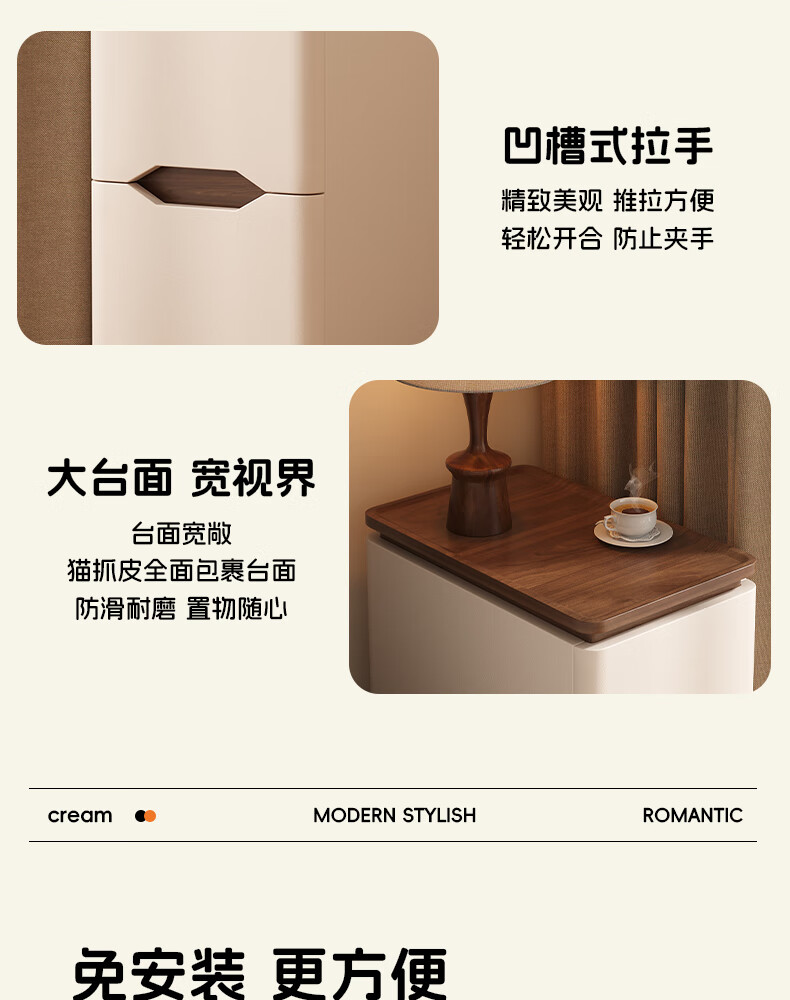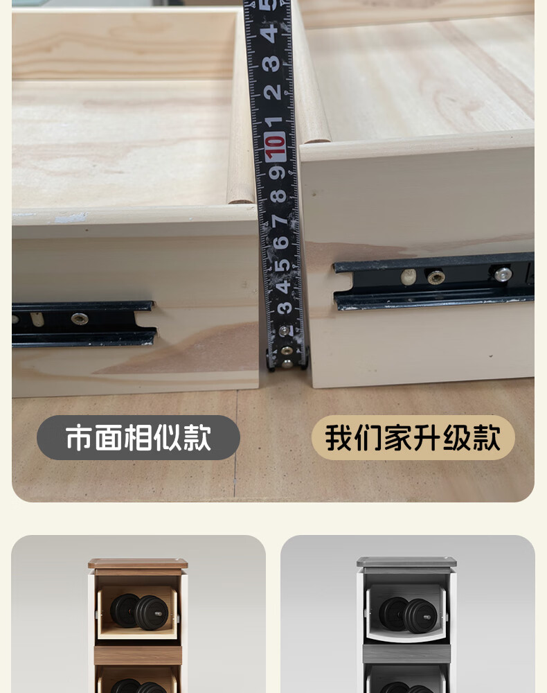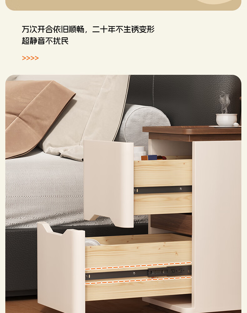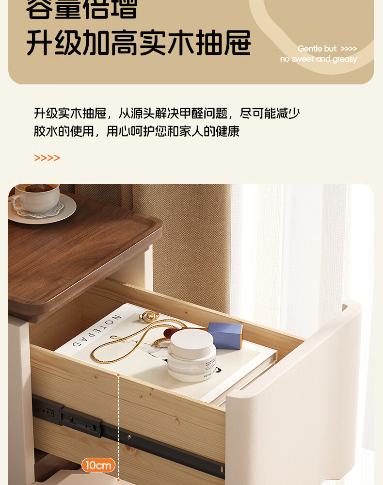 耐禾实木床头柜超窄家用卧室2025爆款小型极窄简约现代免安装收纳柜子 胡桃色台面-米白色【智能锁】 25x40x50cm实木抽屉
