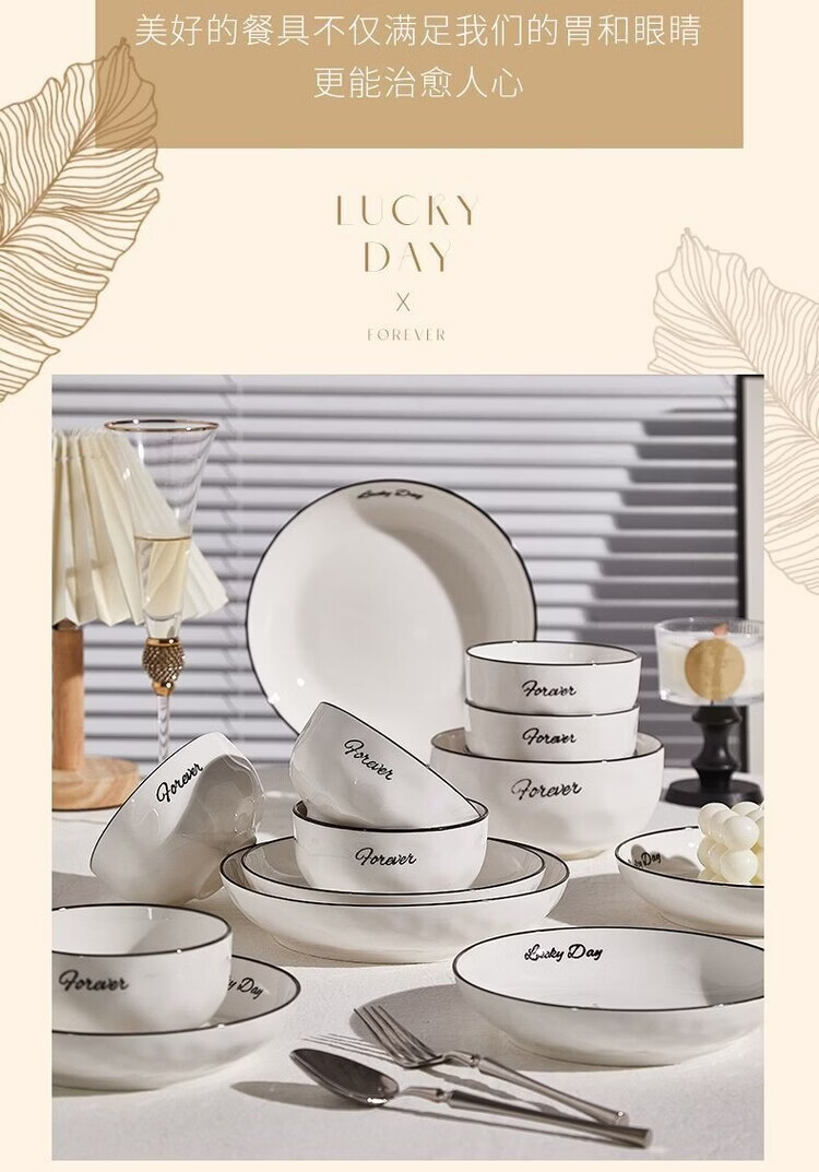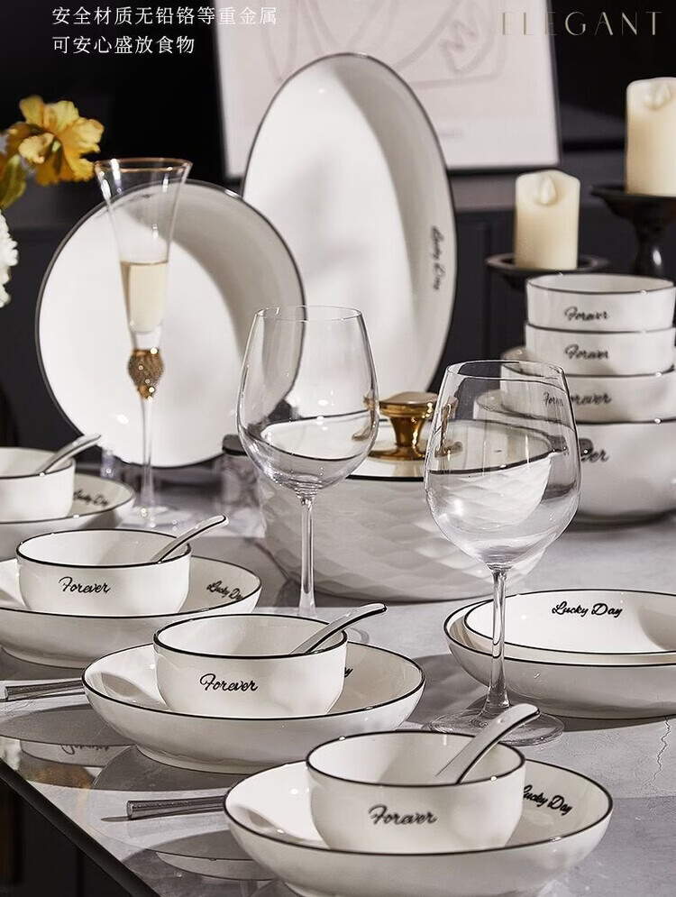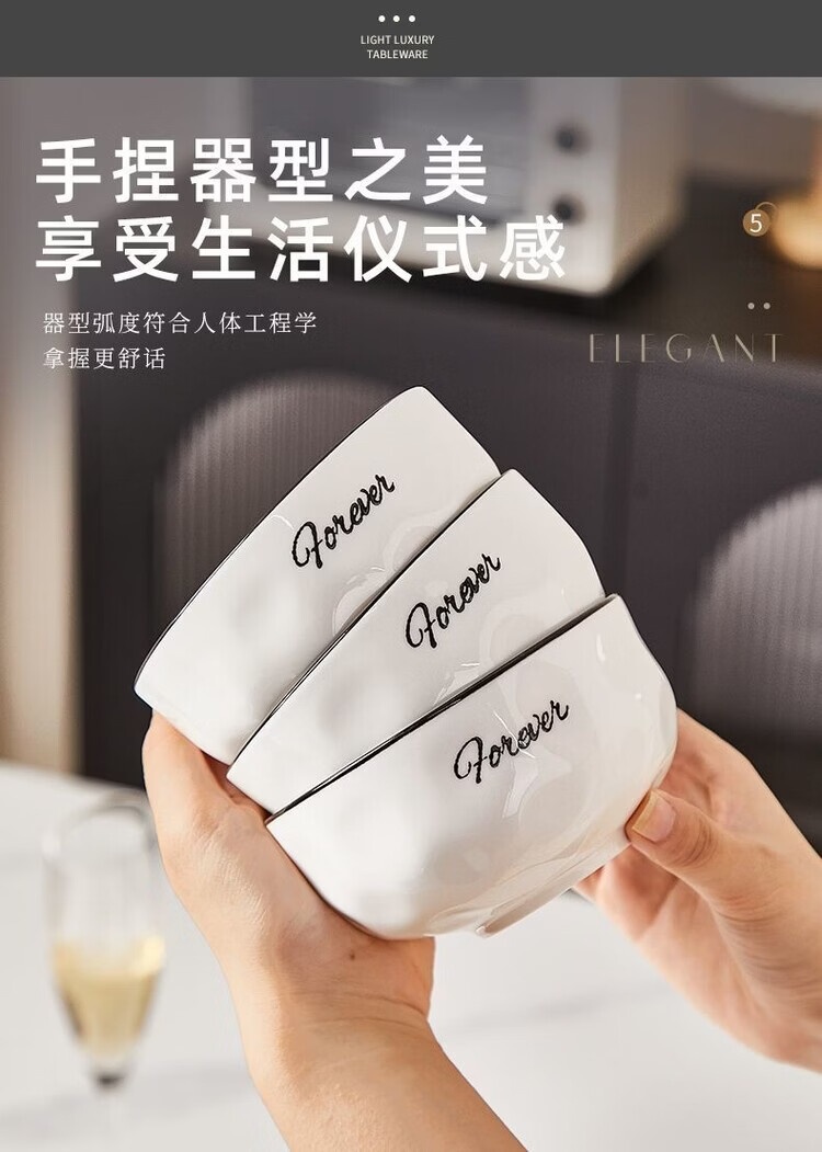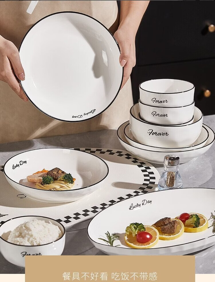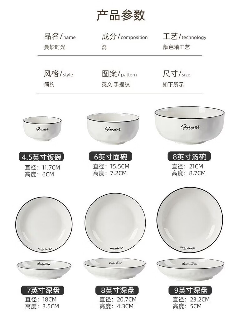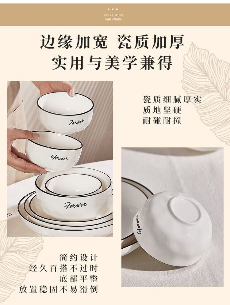 咏夏釉下彩高颜值简约碗碟套装饭碗碗盘盘子菜盘汤碗组合家用陶瓷餐具 釉下彩制瓷 4.5英寸饭碗1个装