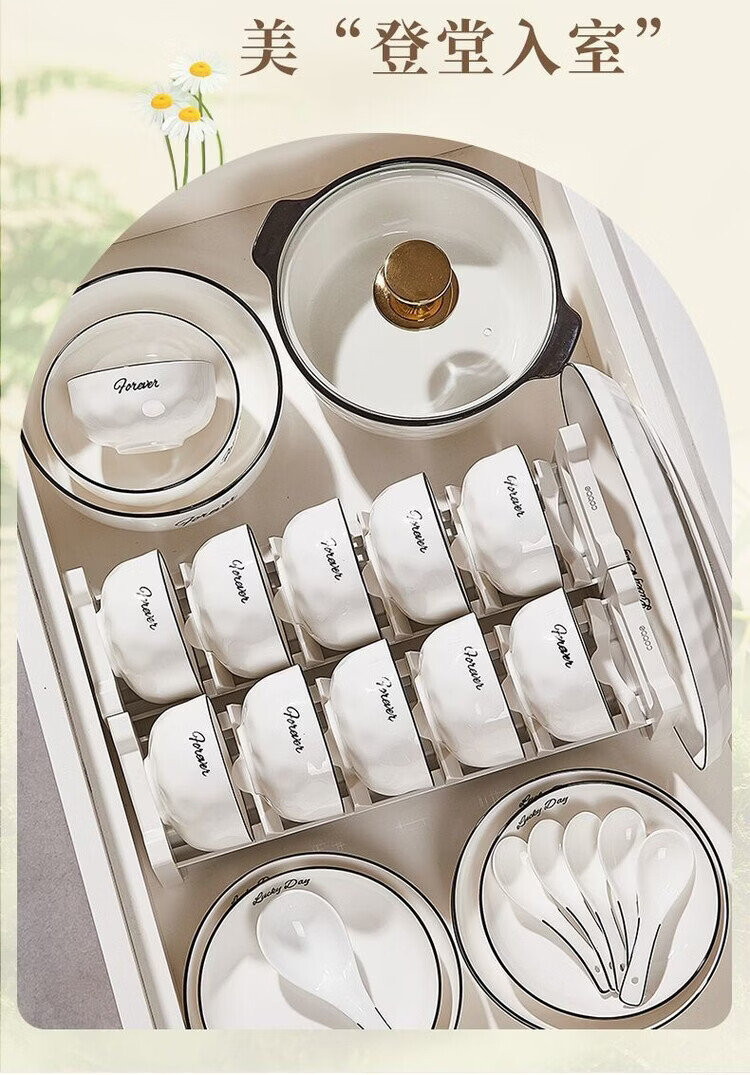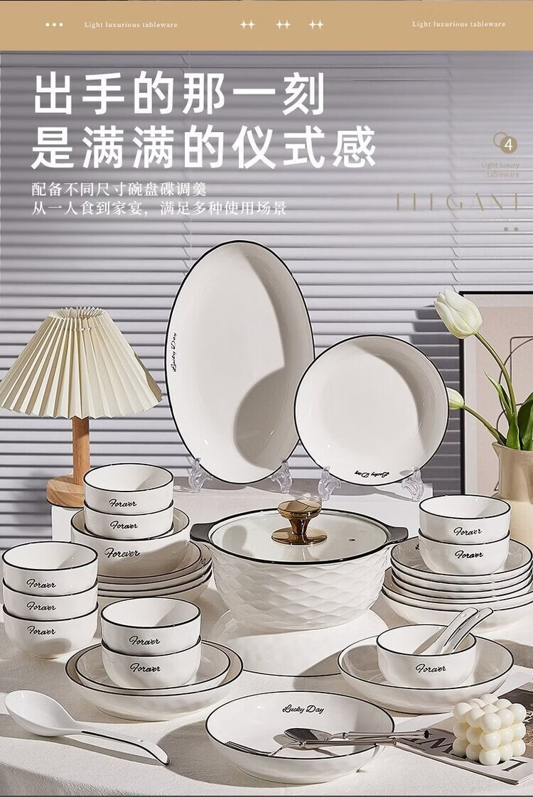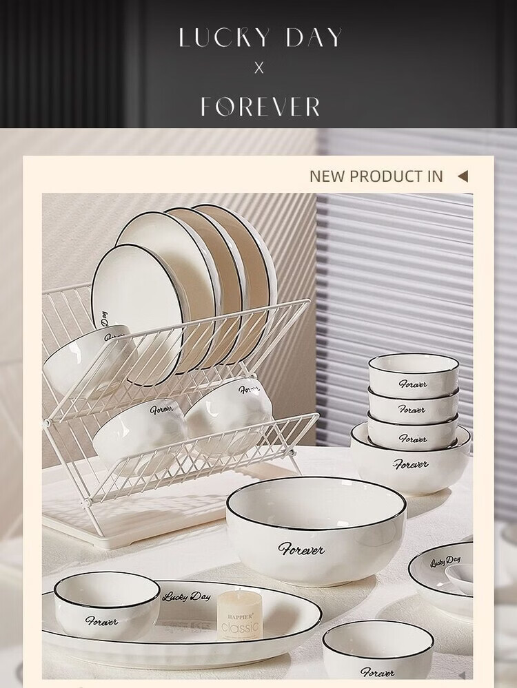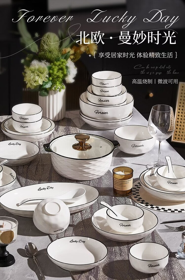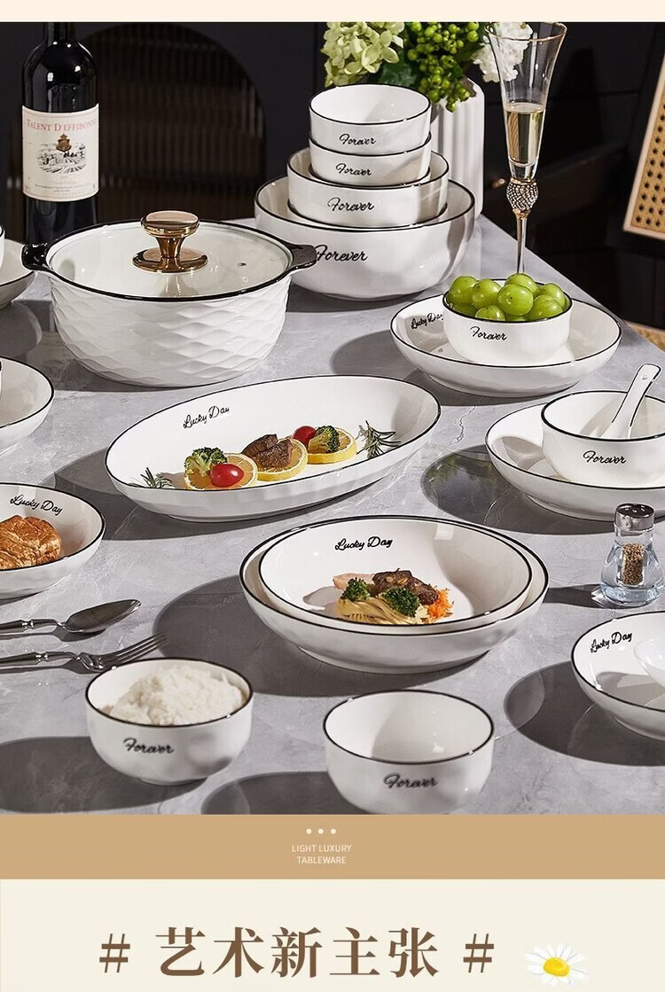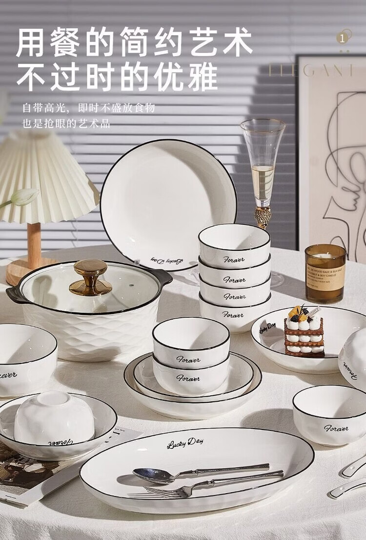 咏夏釉下彩高颜值简约碗碟套装饭碗碗盘盘子菜盘汤碗组合家用陶瓷餐具 釉下彩制瓷 4.5英寸饭碗1个装
