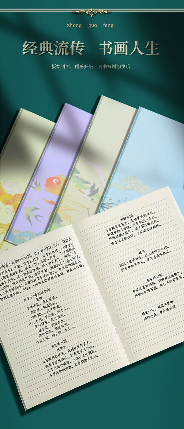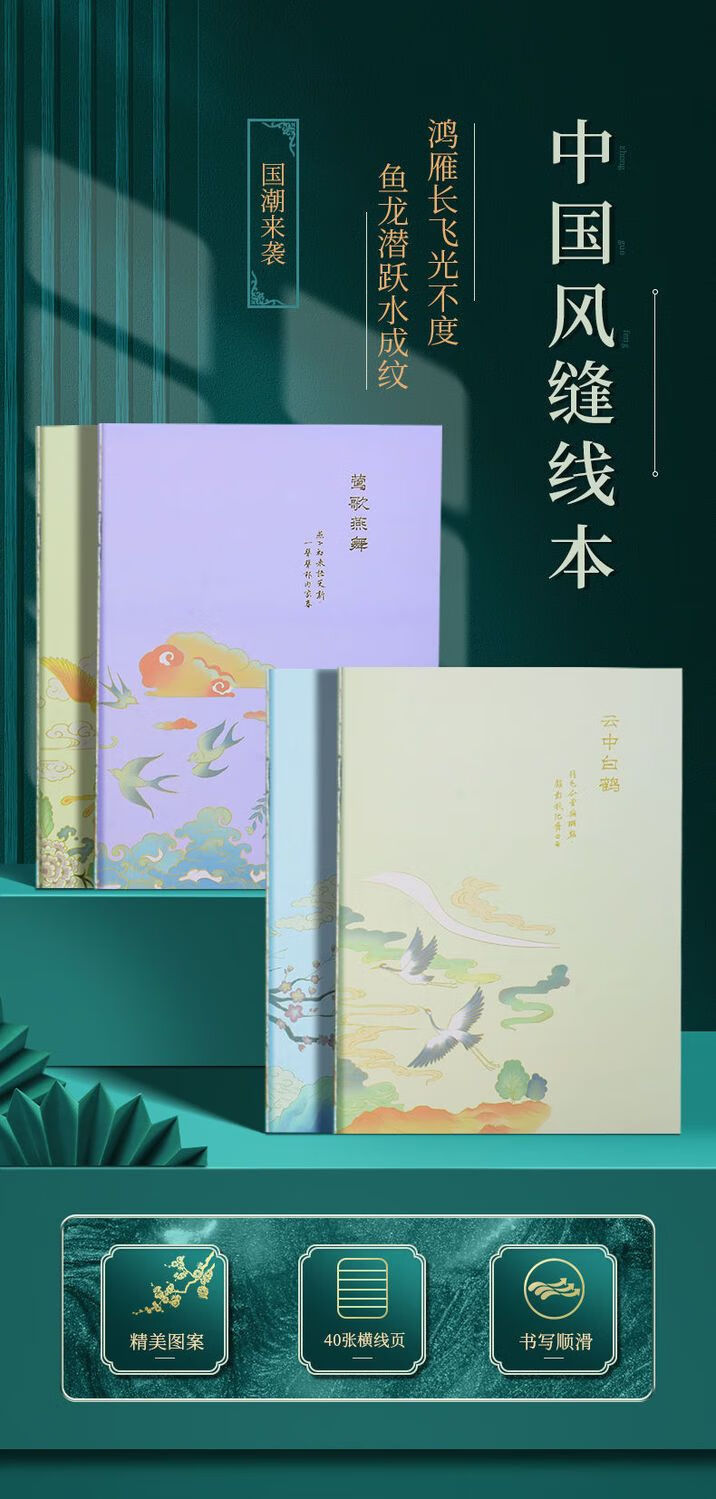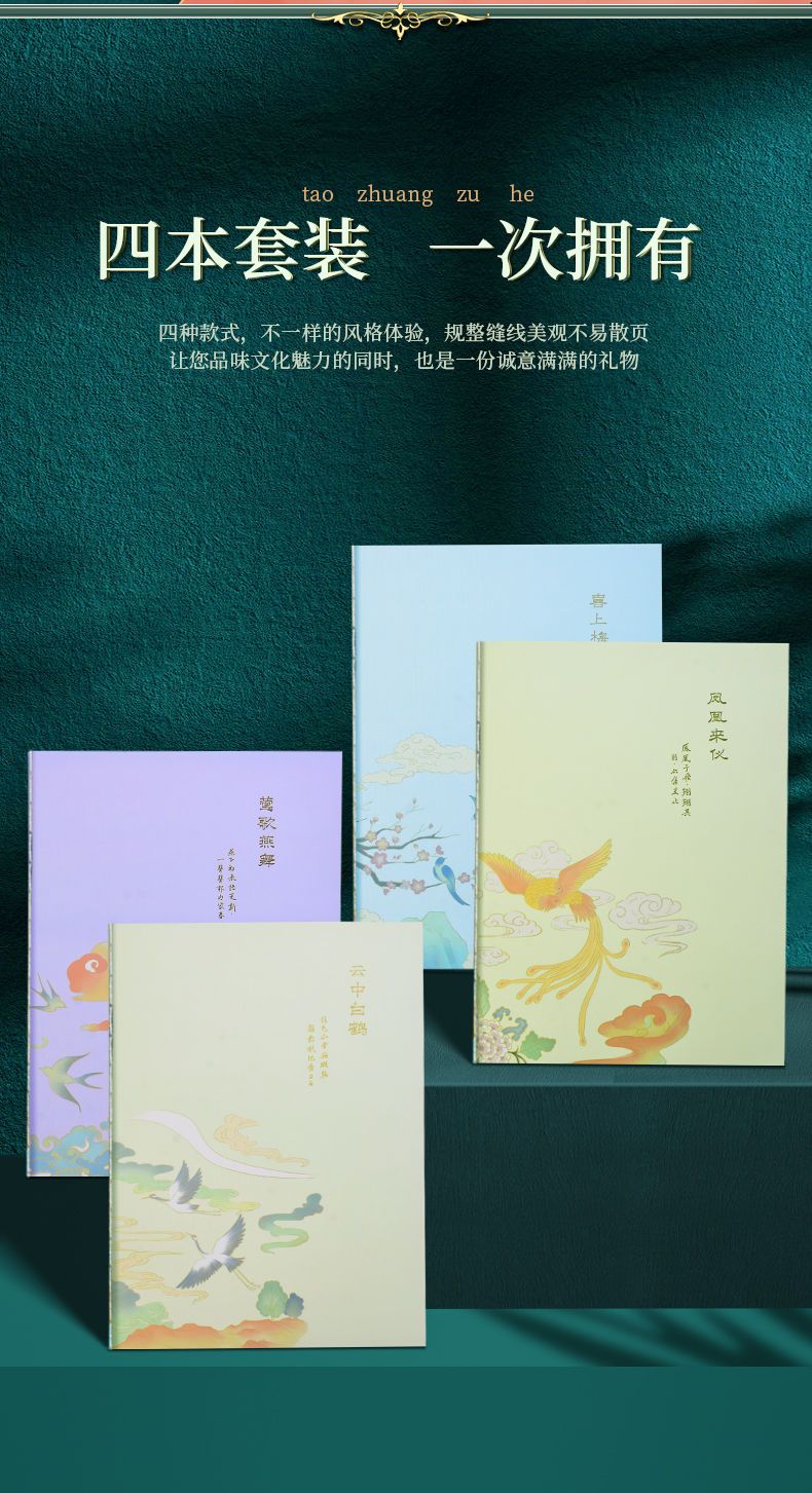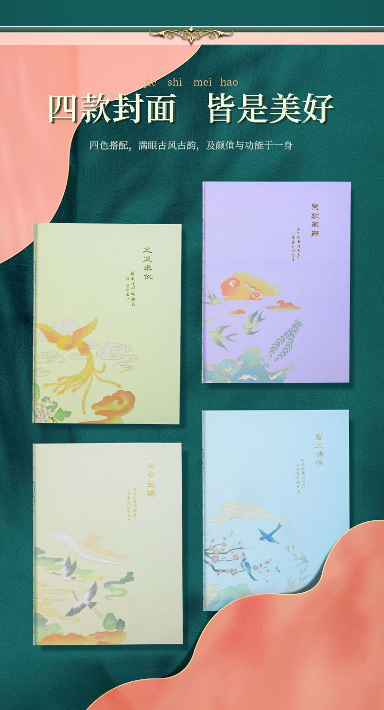 国风系列笔记本本子简约初高中大学生考研软面抄软抄本车线本记事本加厚缝线本 加厚款-A5【吉祥国风】60页/本-1本随机