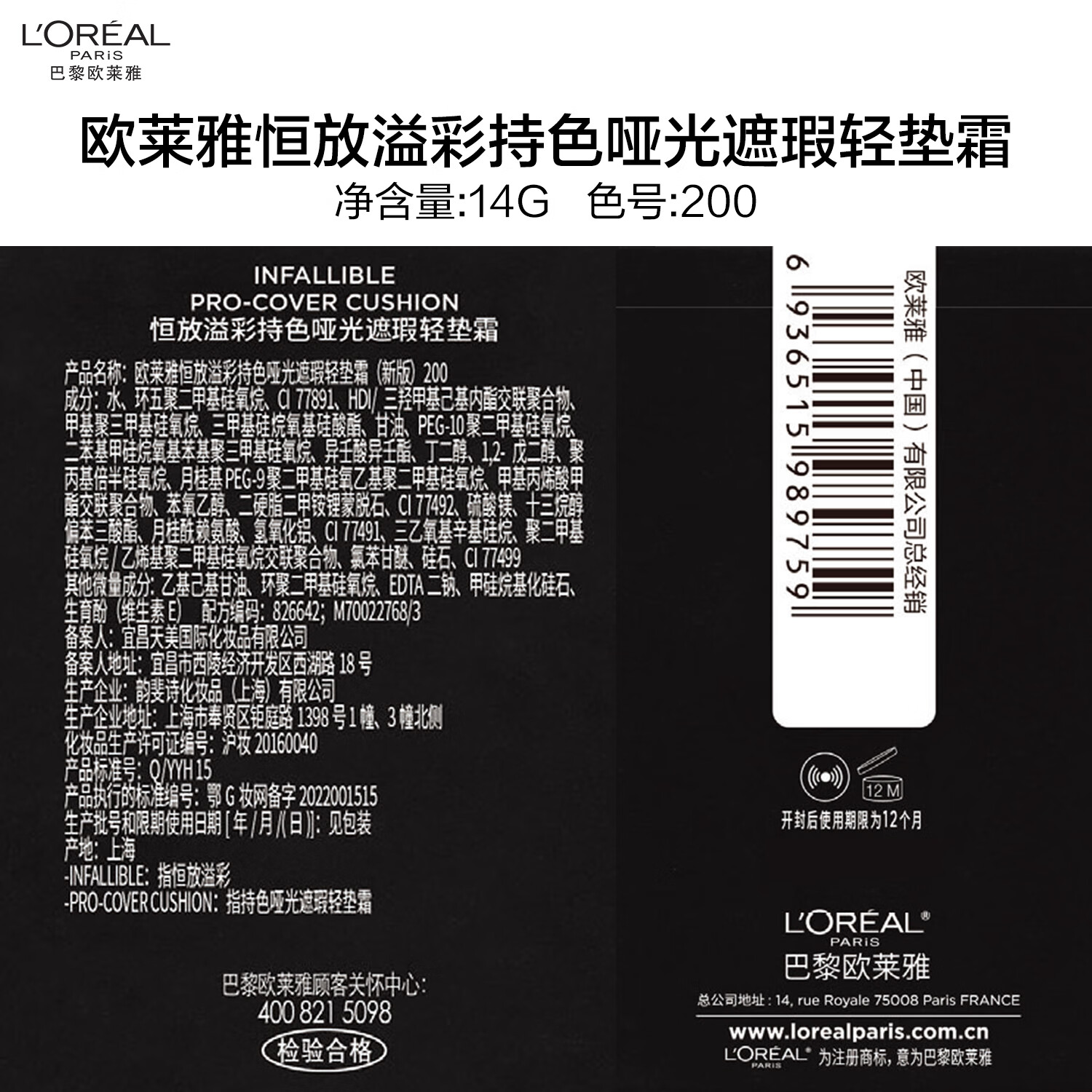 欧莱雅黑胖子气垫替换芯14g #200遮瑕控油送女友圣诞礼物
