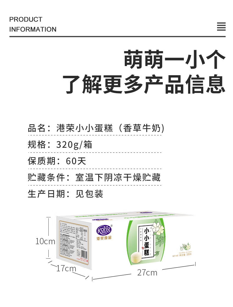 港荣香草牛奶小小蛋糕320g早餐面包吐司西式糕点心纯蛋糕甜品礼品盒物