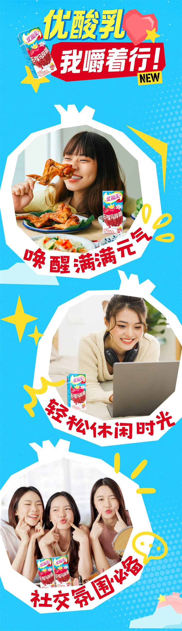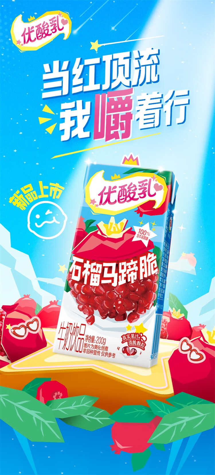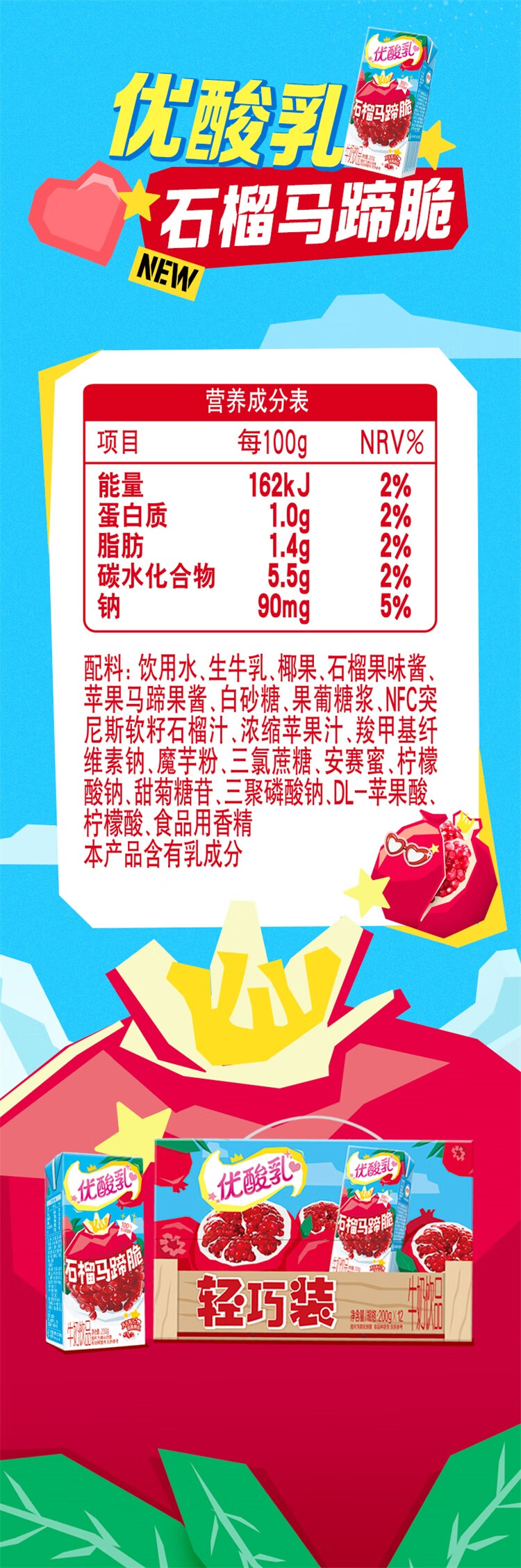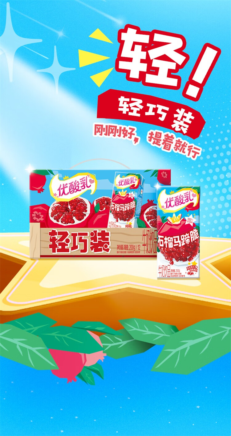 伊利优酸乳 石榴马蹄脆 牛奶饮品 200g*12盒/箱 礼盒装