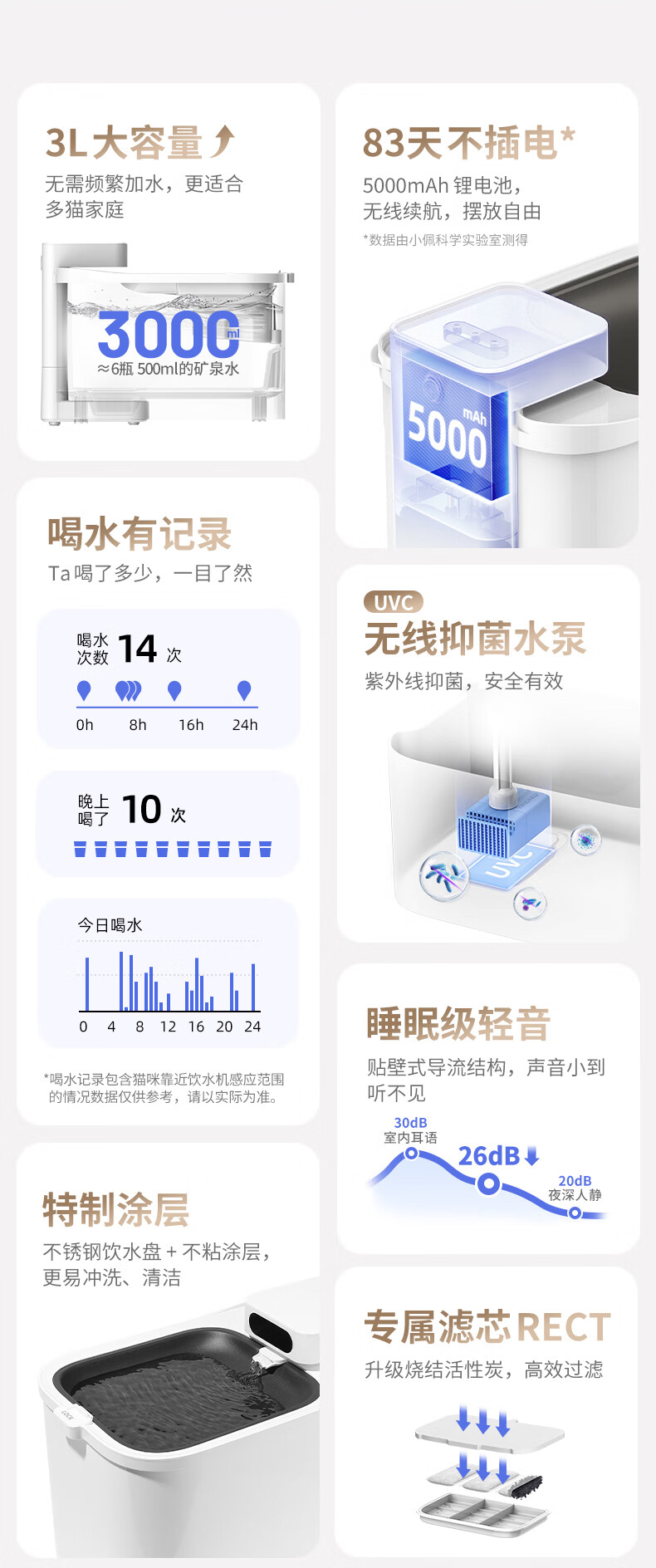 小佩宠物无线饮水机MAX 锂电款猫咪饮水机 宠物喝水器记录 涂层款