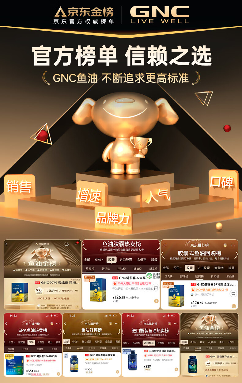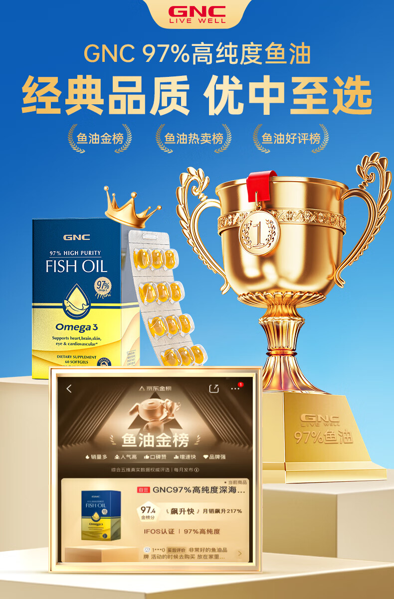 GNC健安喜 97%鱼油深海高纯度EPA鱼油omega-3 成人中老年海外进口 【周期装】97鱼油 60粒*2盒