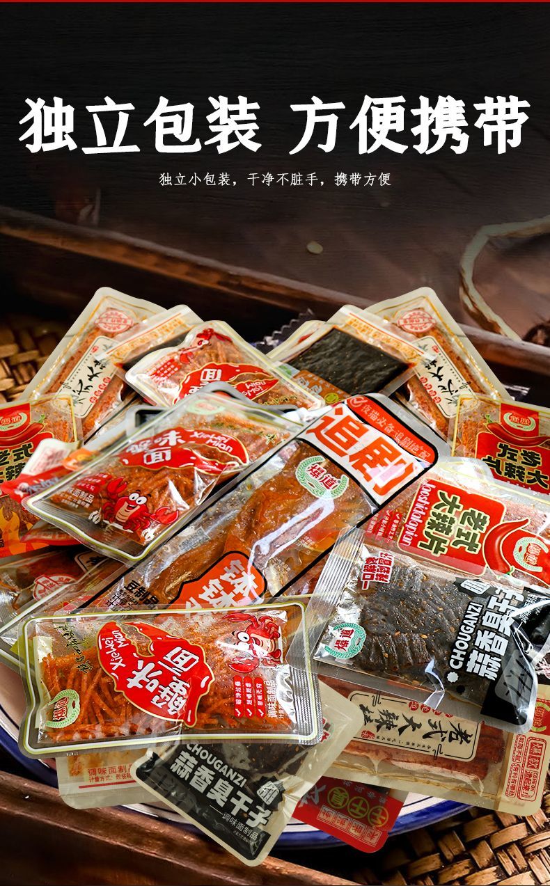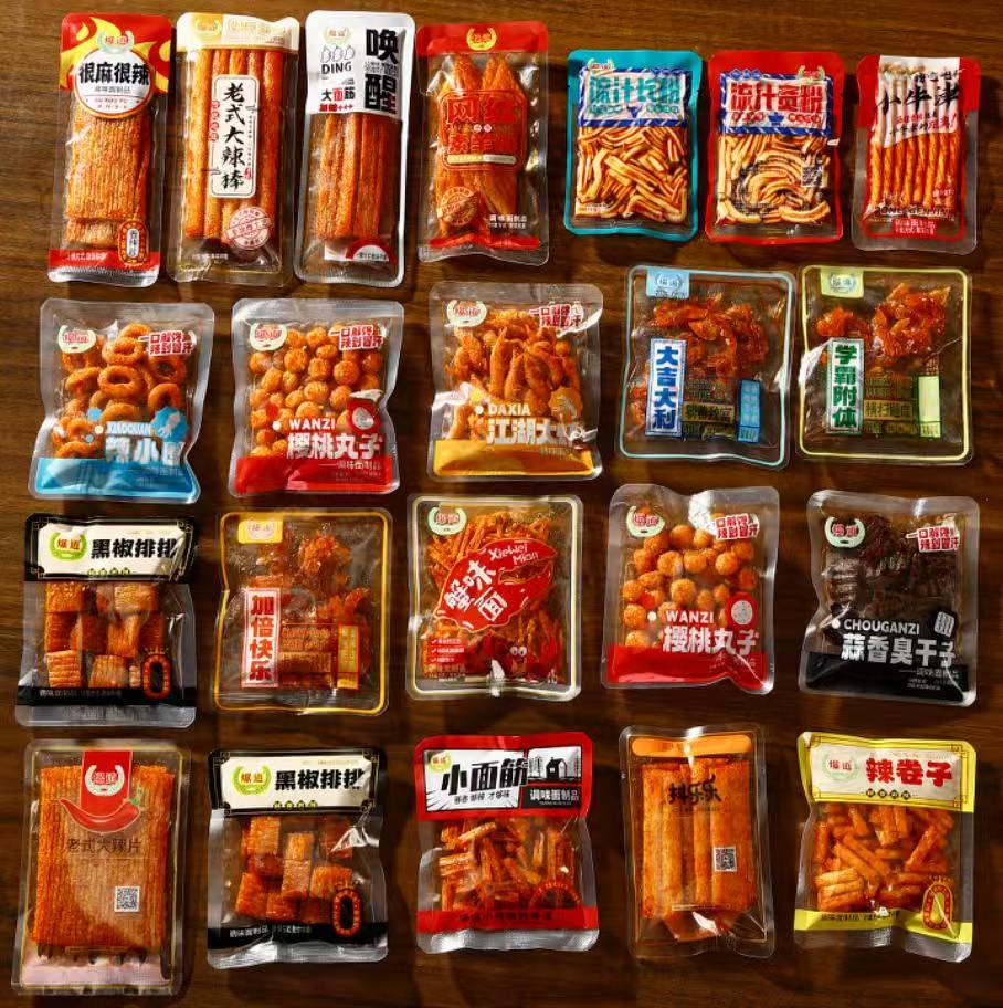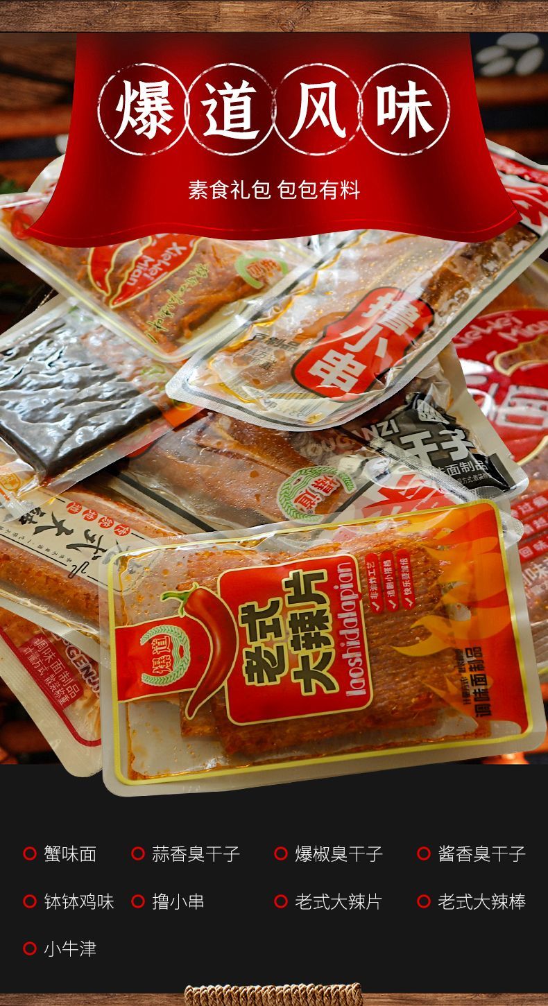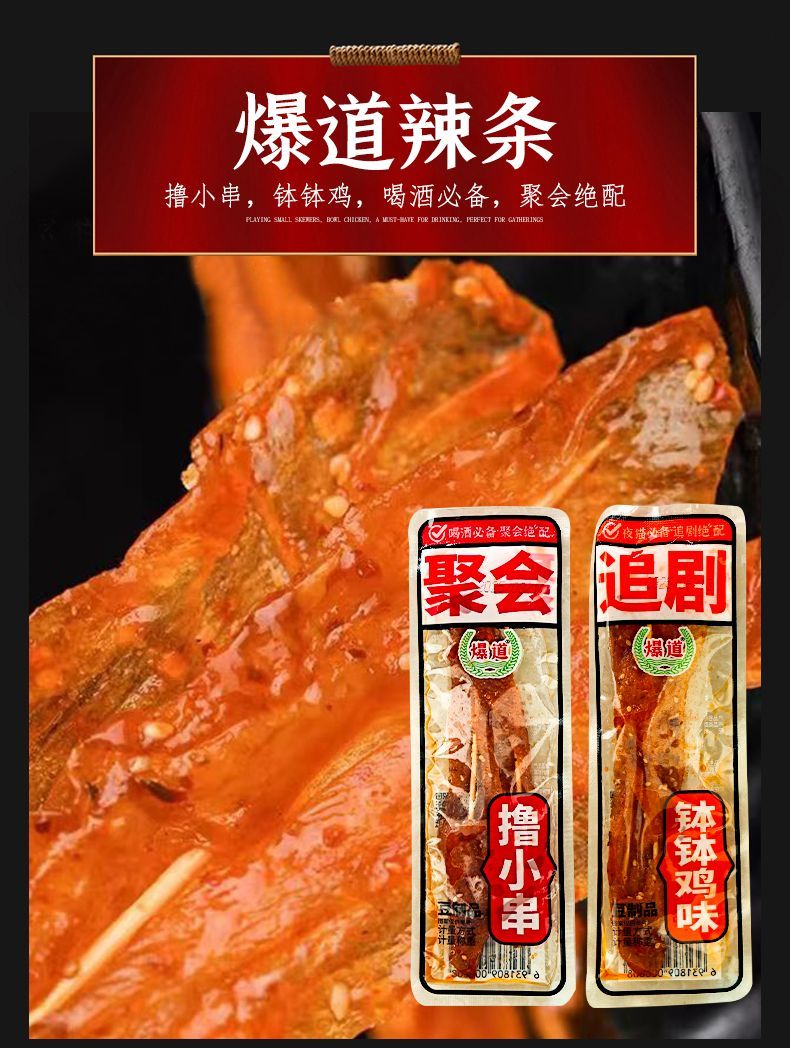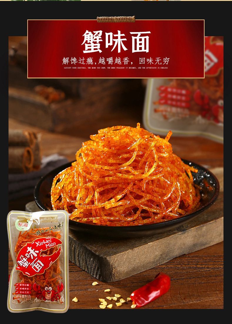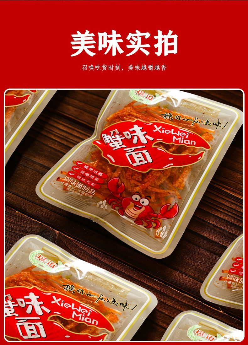 爆道老式很麻很辣零食老式蟹味面小面筋辣条休闲零食混合小包装 1根2根1斤