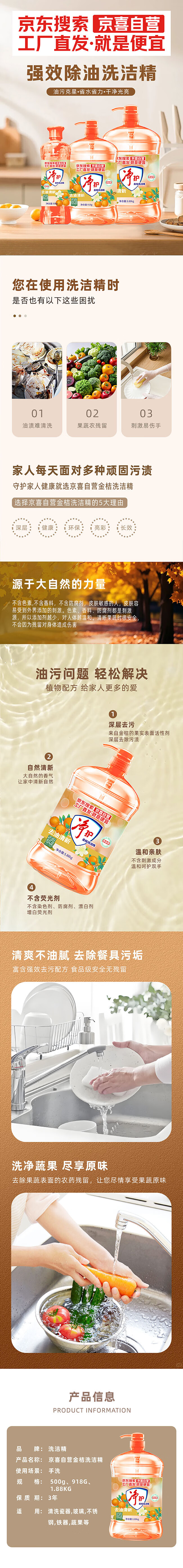金桔洗洁精去油污不伤手清洁剂家用厨房餐具洗涤用品 金桔洗洁精500g*1瓶