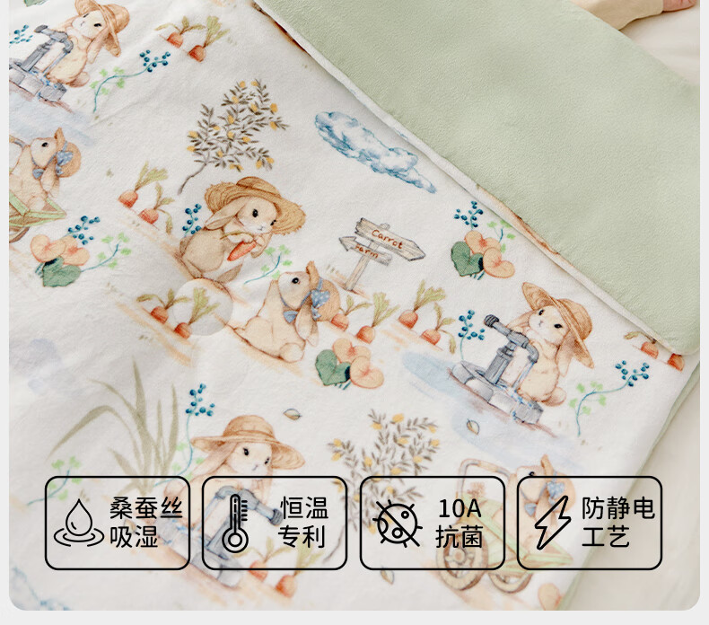 欧孕(OUYUN)被子儿童桑蚕丝被秋冬季加厚恒温宝宝幼儿园四季通用被子 花影萌兔丨柔软桑蚕丝【春秋舒适/温度18°C-28 150x120cm
