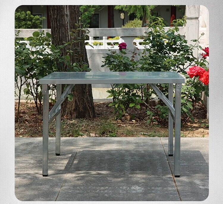 欣慕雅便携折叠桌宿舍出租屋户外露营夜市摆摊烧烤家用吃饭桌子长方形 户外露营烧烤便携折叠桌-镀锌银色桌面 4腿长60*宽40-高55厘米+调节地脚