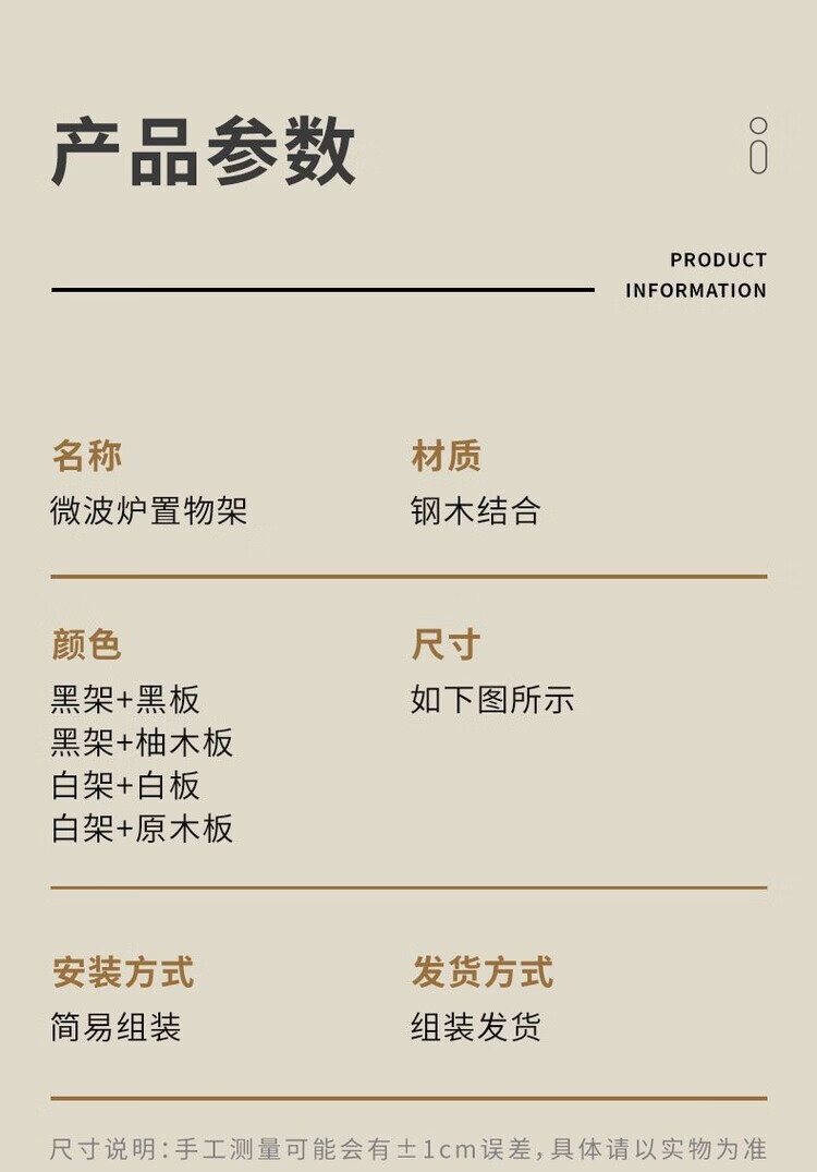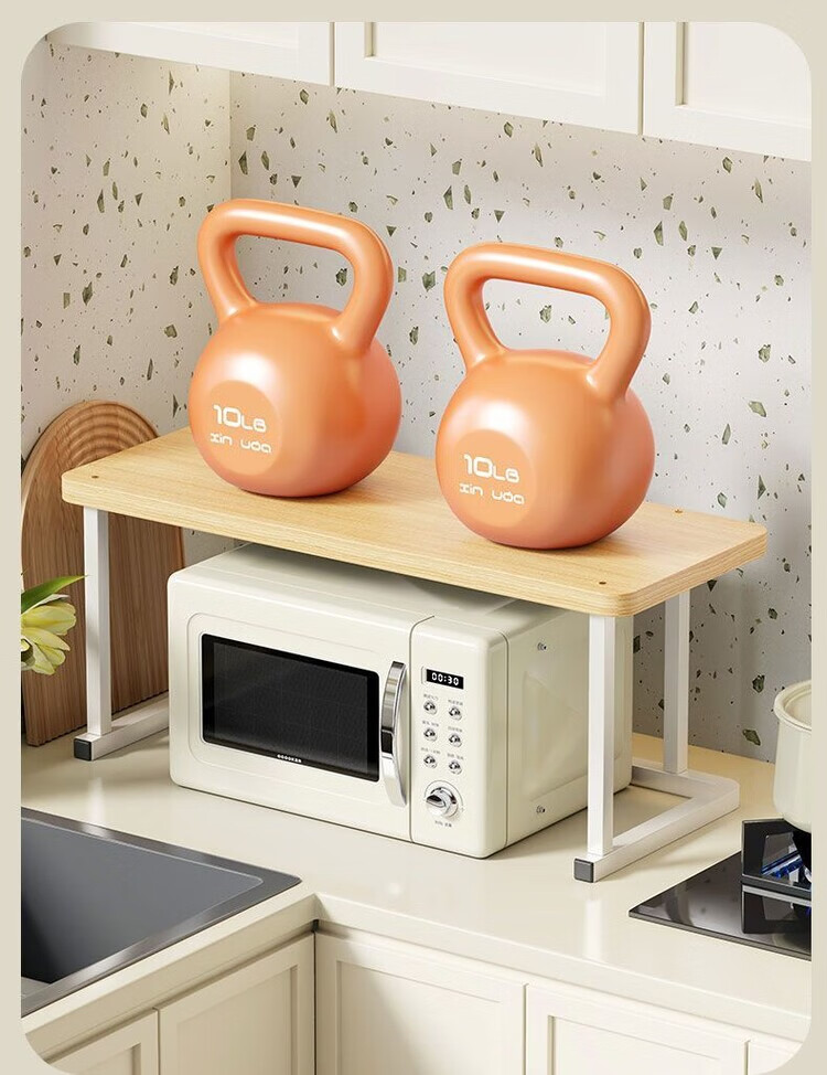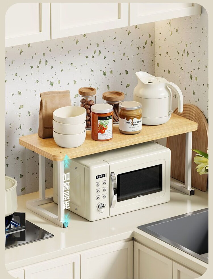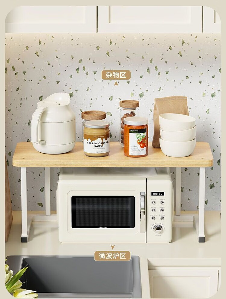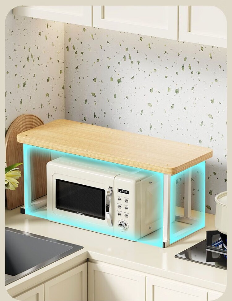 花沐禧微波炉置物架多功能家用台面调味料电饭锅支架专用空气炸锅收纳架 黑架+网格30*24*7.5