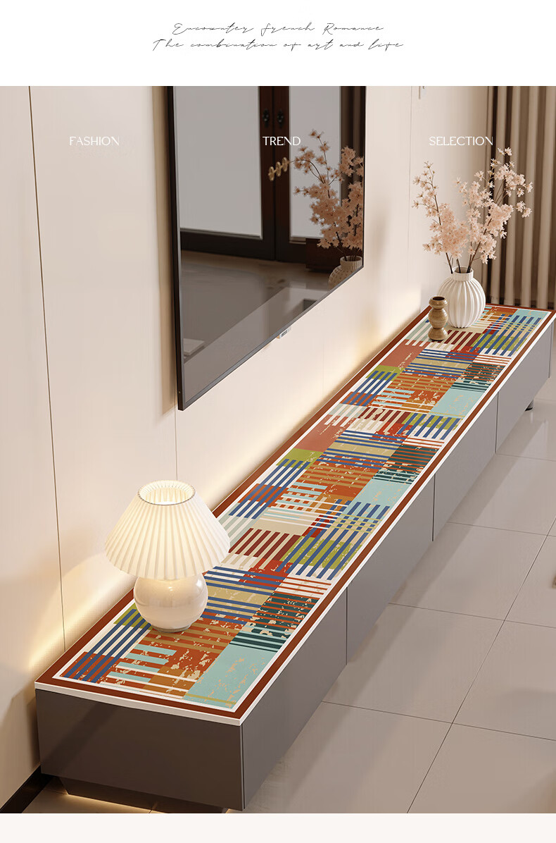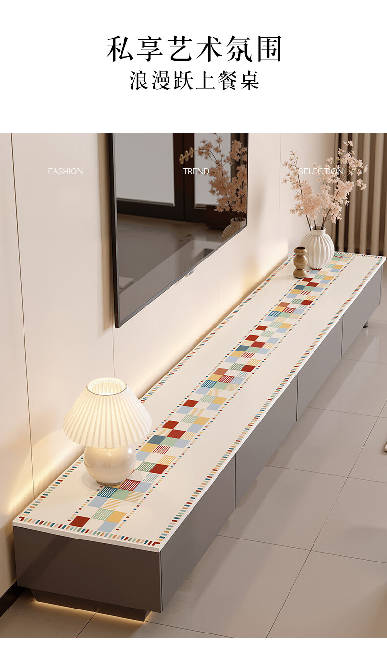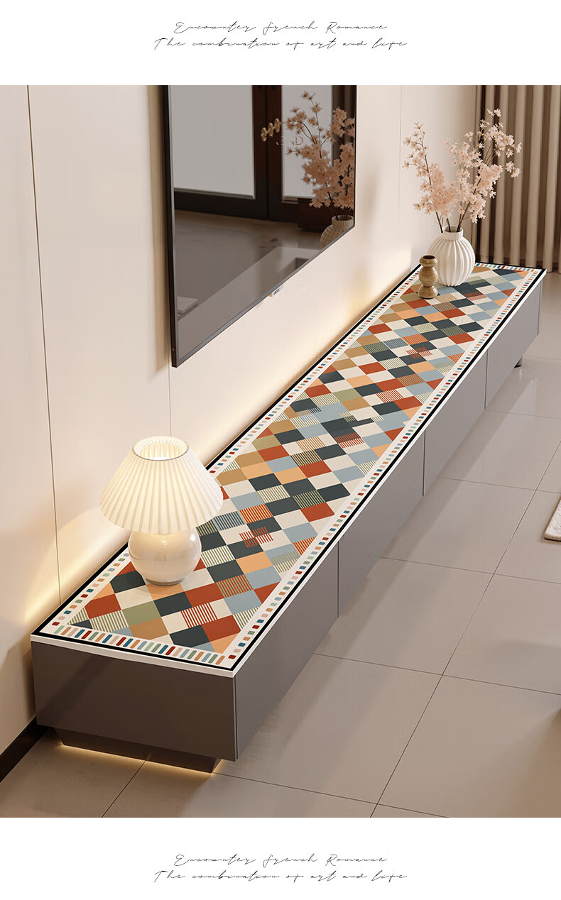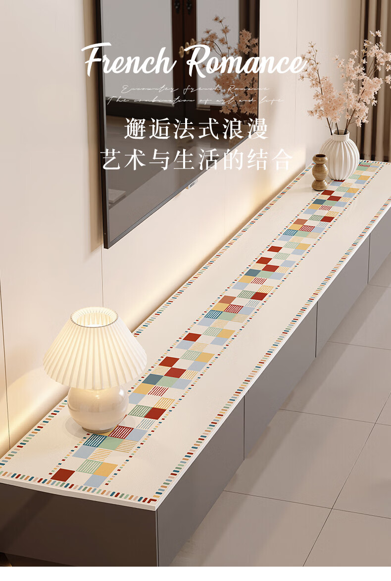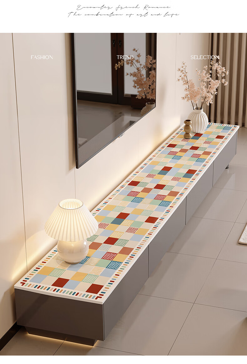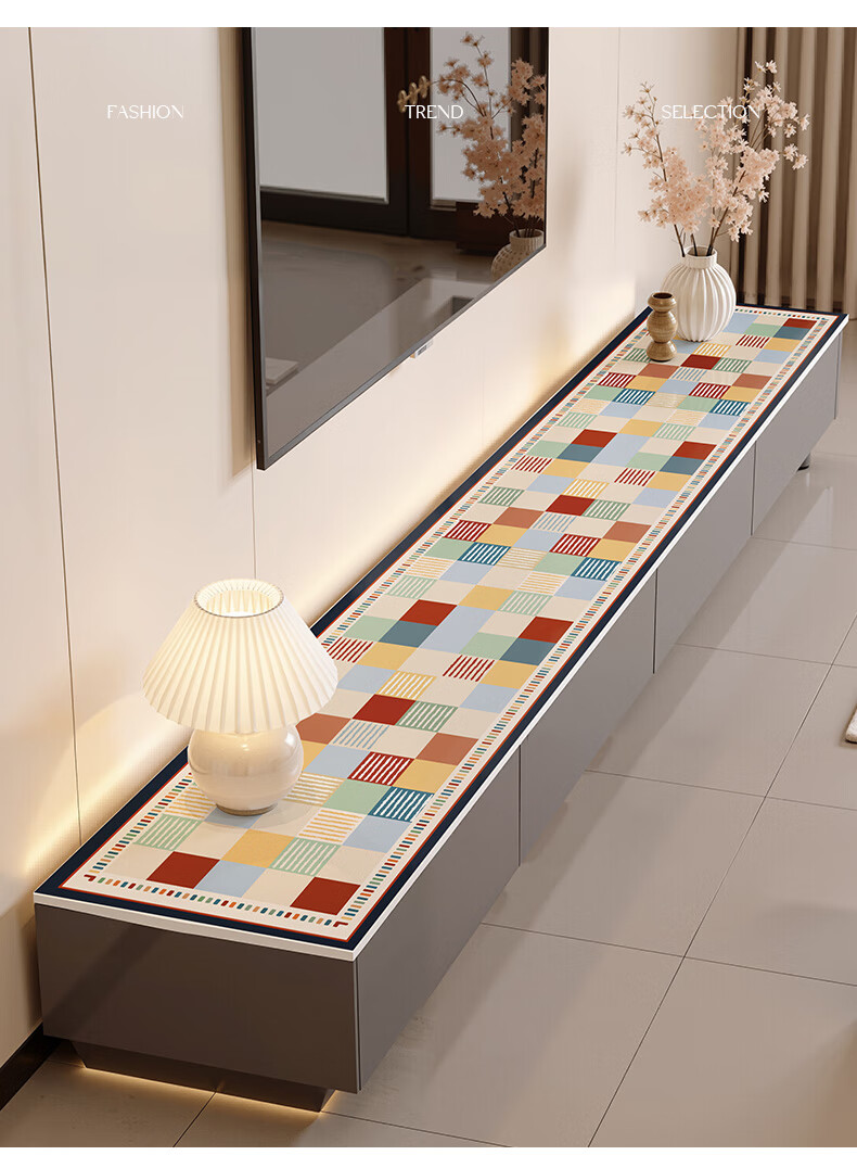 小苏家电视柜桌垫2025新款轻奢高级感免洗桌布斗柜鞋柜餐边柜台面保护垫 彩虹糖格(一体成型) 35×230cm