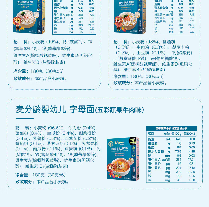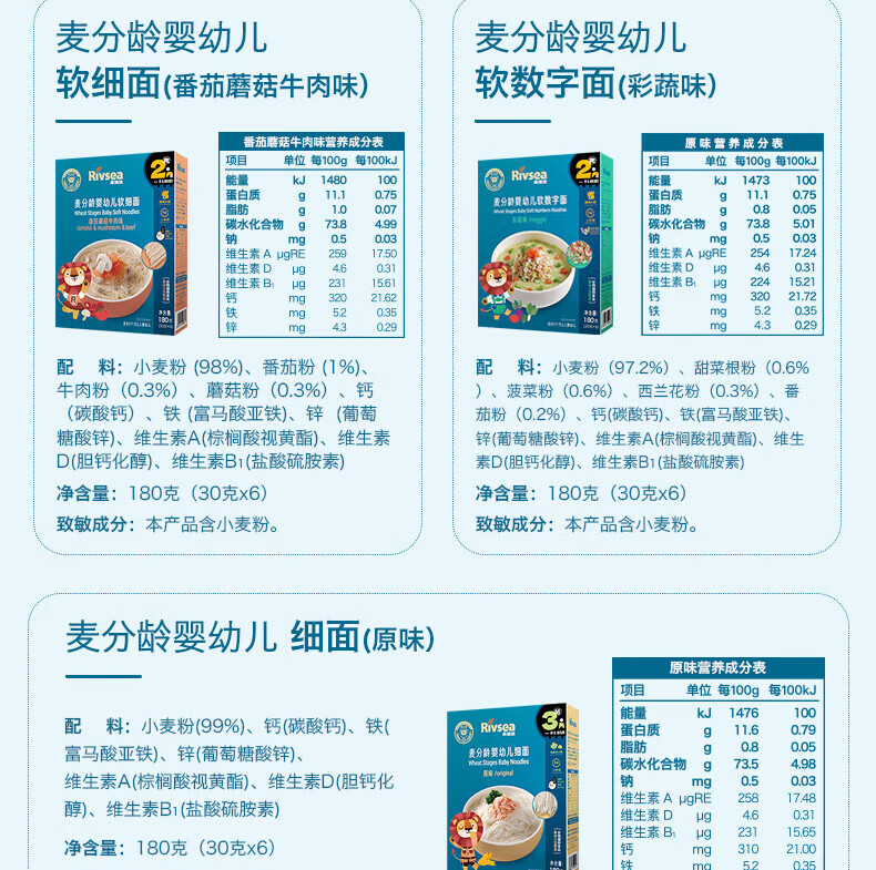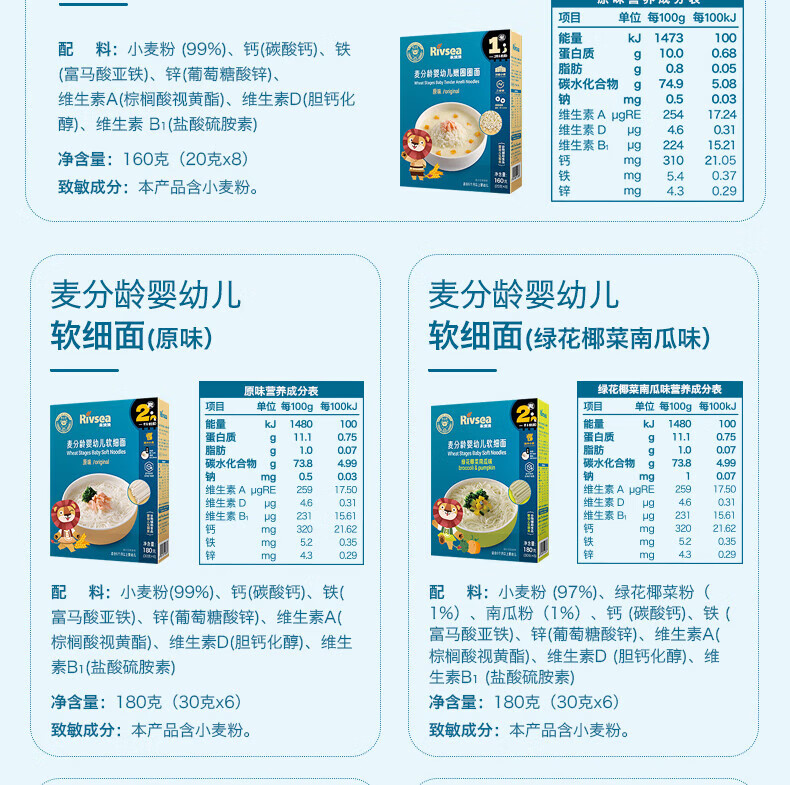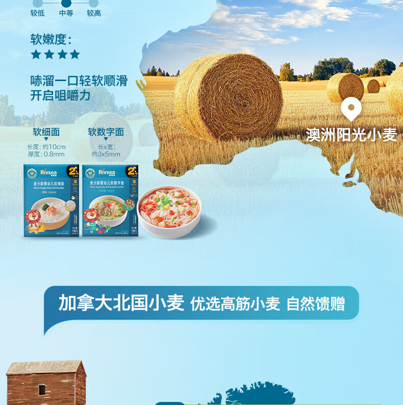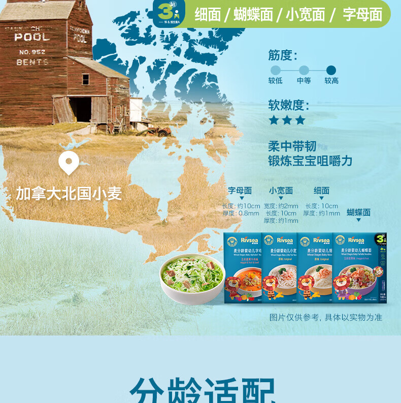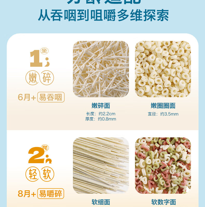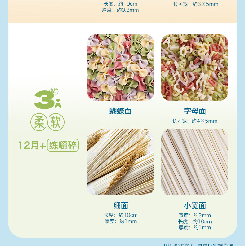 禾泱泱婴幼儿面条营养辅食面条 无添加食用盐白砂糖 6个月以上儿童面条 3阶加拿大小麦加锌小宽面原味180g