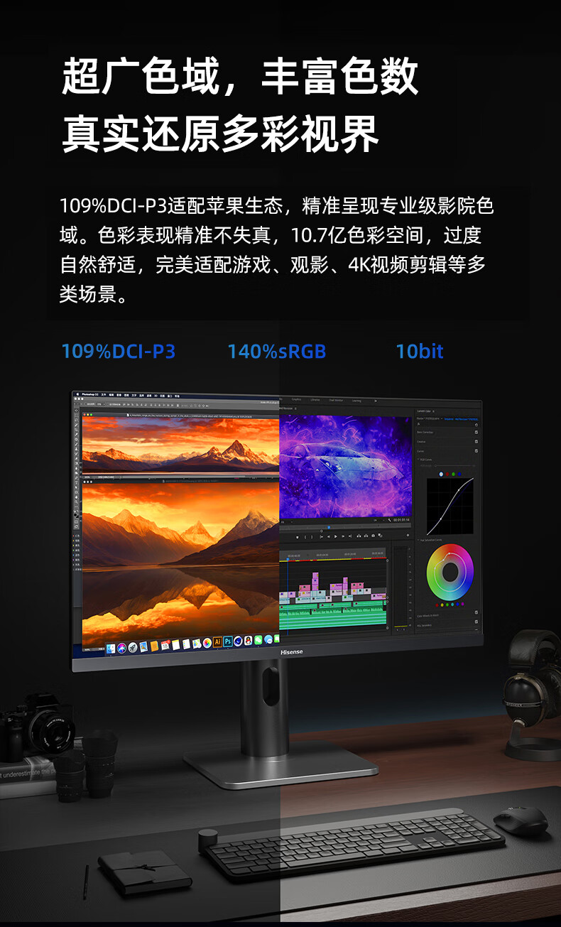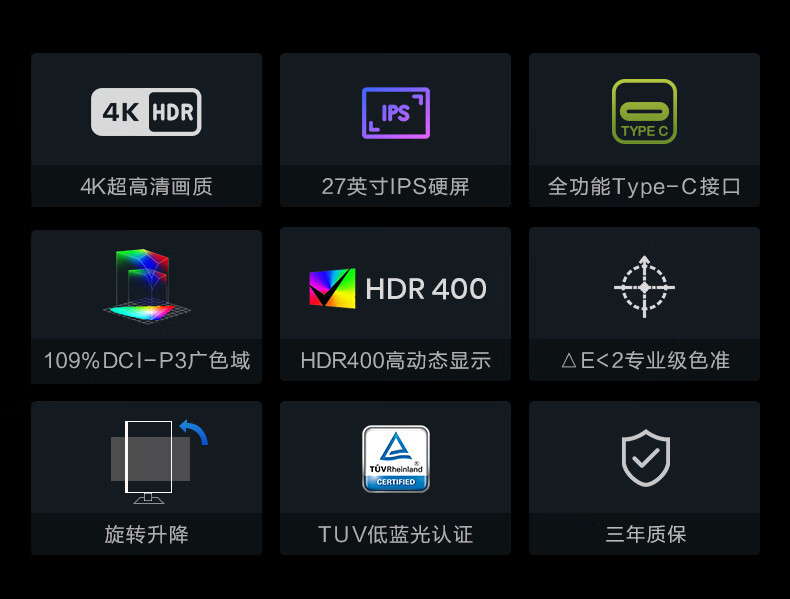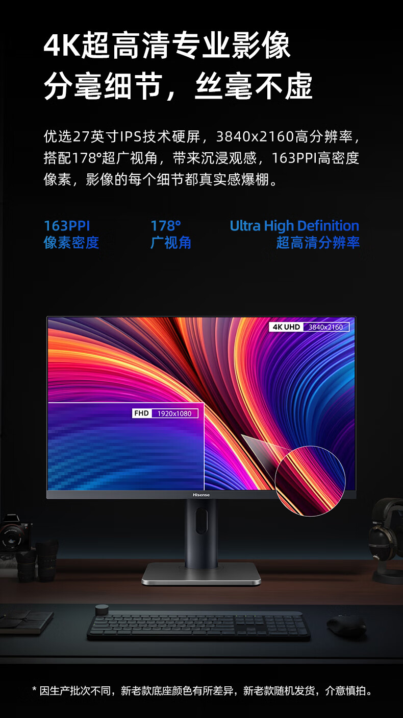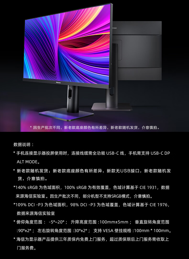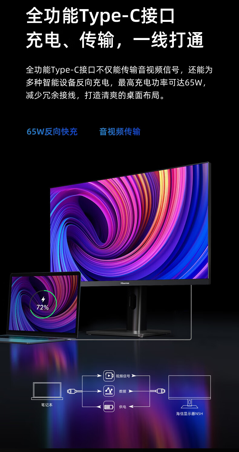 海信27英寸 4K超清 广色域 HDR400 Type-C 适配Mac 旋转升降 IPS 办公设计 电脑显示屏 显示器 27N5H