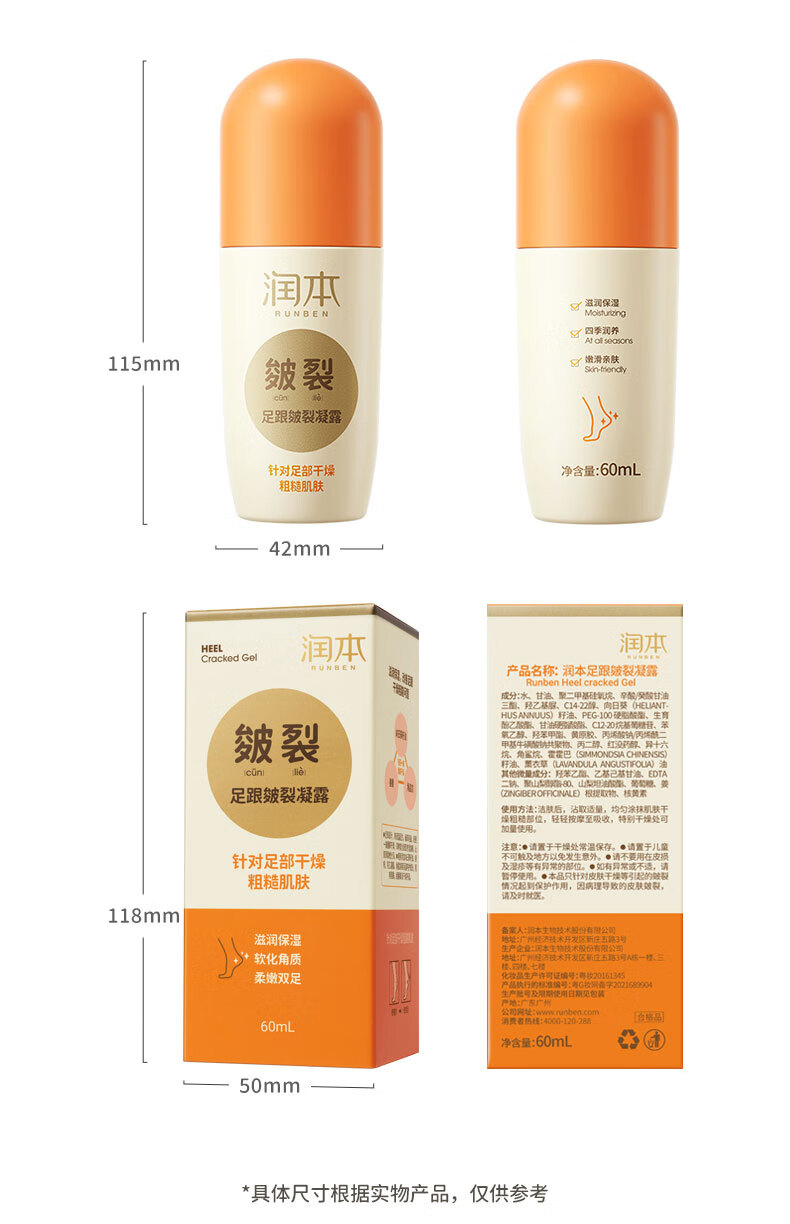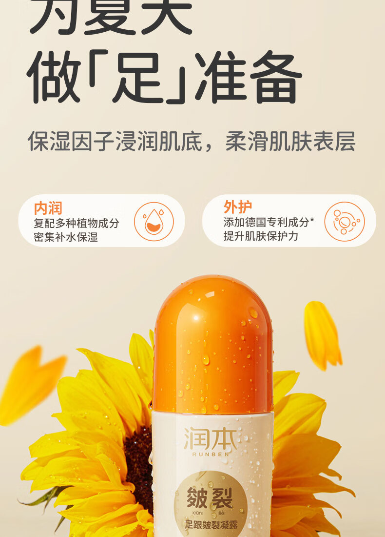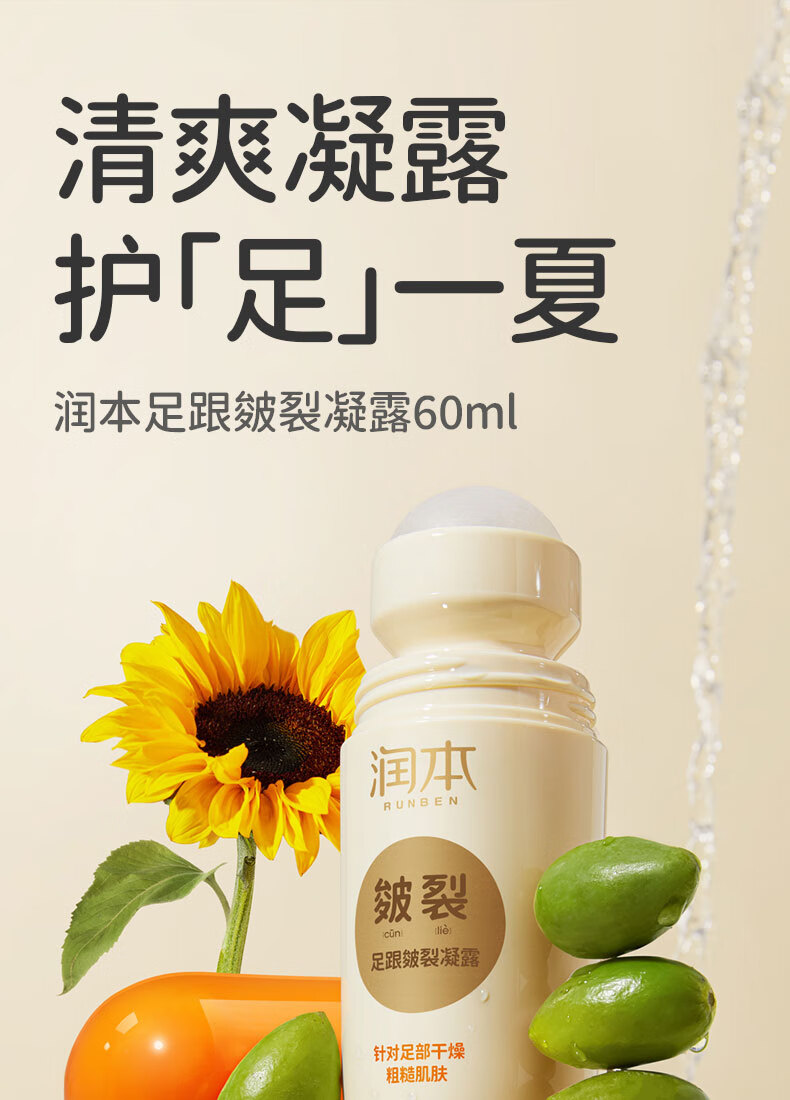 润本(RUNBEN)皲裂膏皴裂膏保湿滋润防冻防裂护手足霜滋润肌肤夏季嫩足皴裂凝露 【清爽型】足跟皴裂凝露60ml