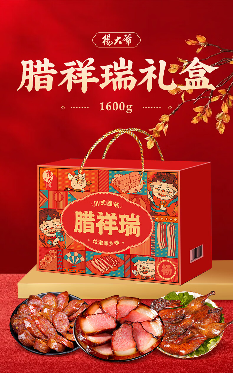 杨大爷腊祥瑞礼盒1600g烟熏腊香肠腊肉年货节礼物礼盒送礼商务团购 腊祥瑞礼盒1600g【内配有腊肉/腊肠/腊鸭】